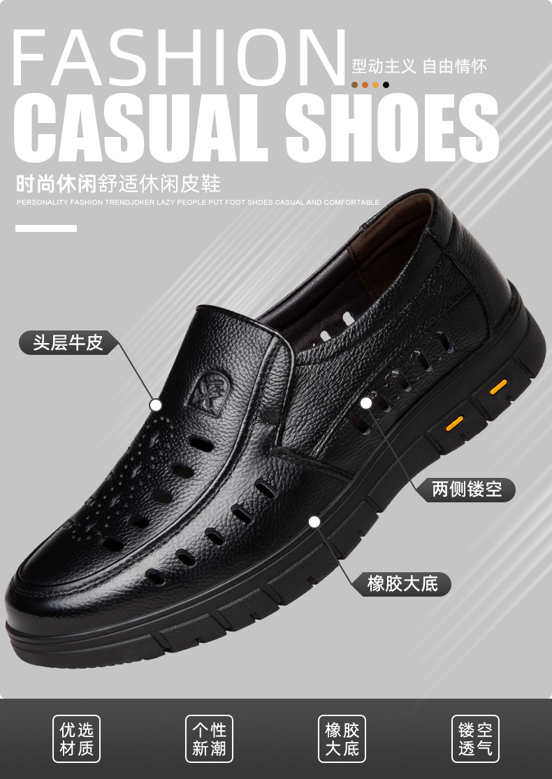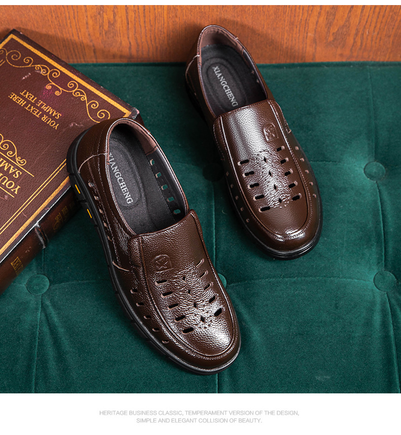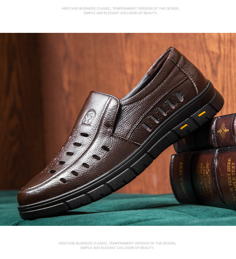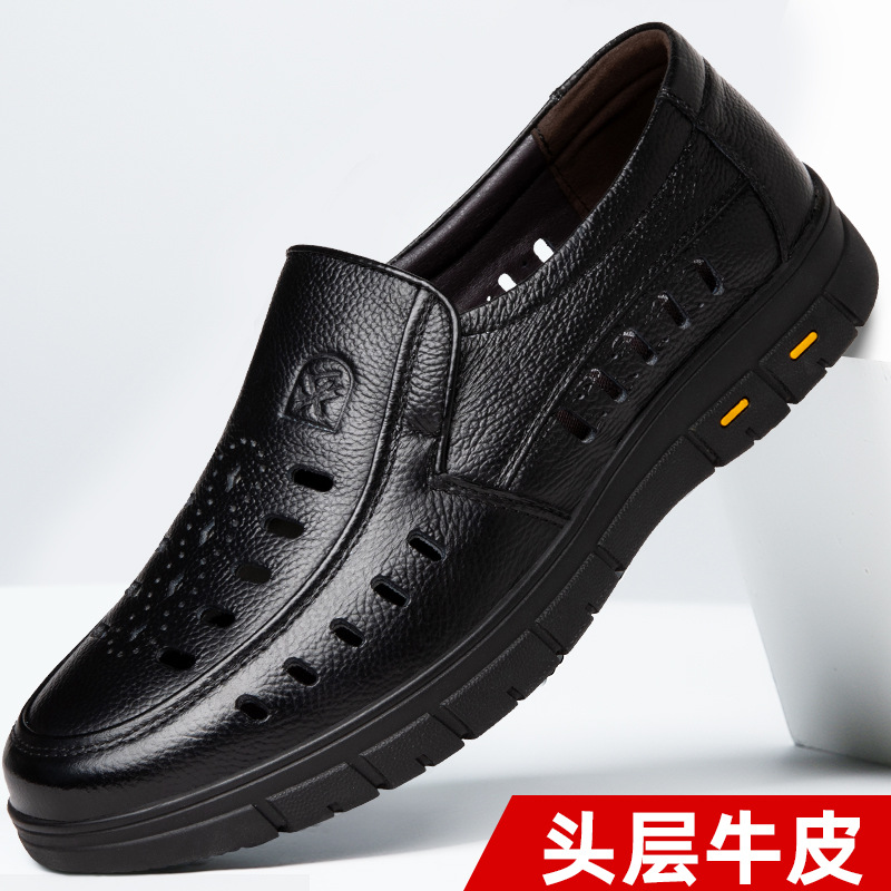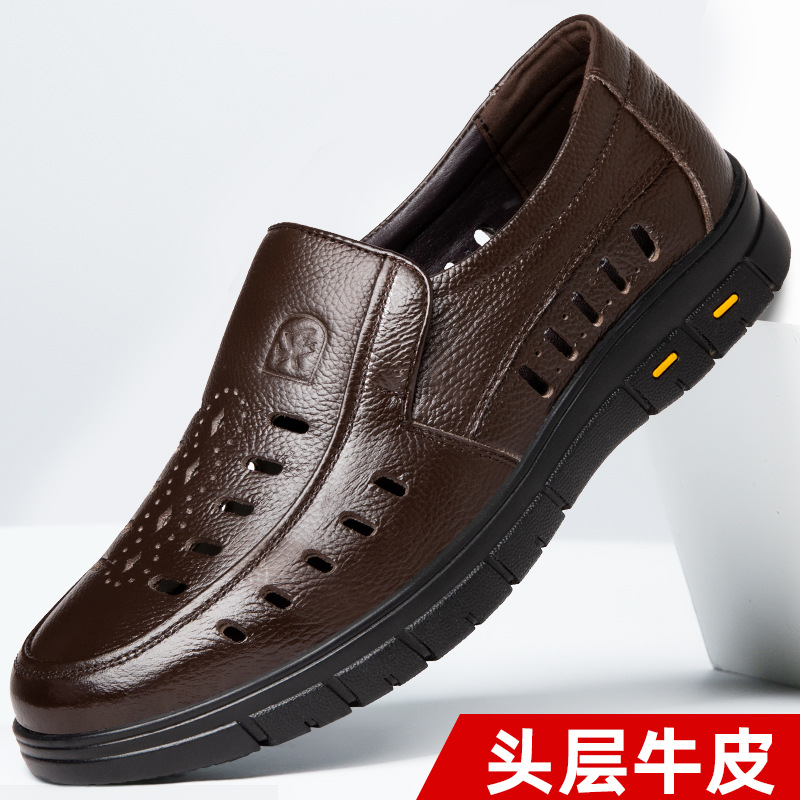가죽 샌들의 첫 번째 레이어 남성의 새로운 여름 통기성 구멍 가죽 신발 중년 및 노인 캐주얼 부드러운 바닥 미끄럼 방지 아빠 신발