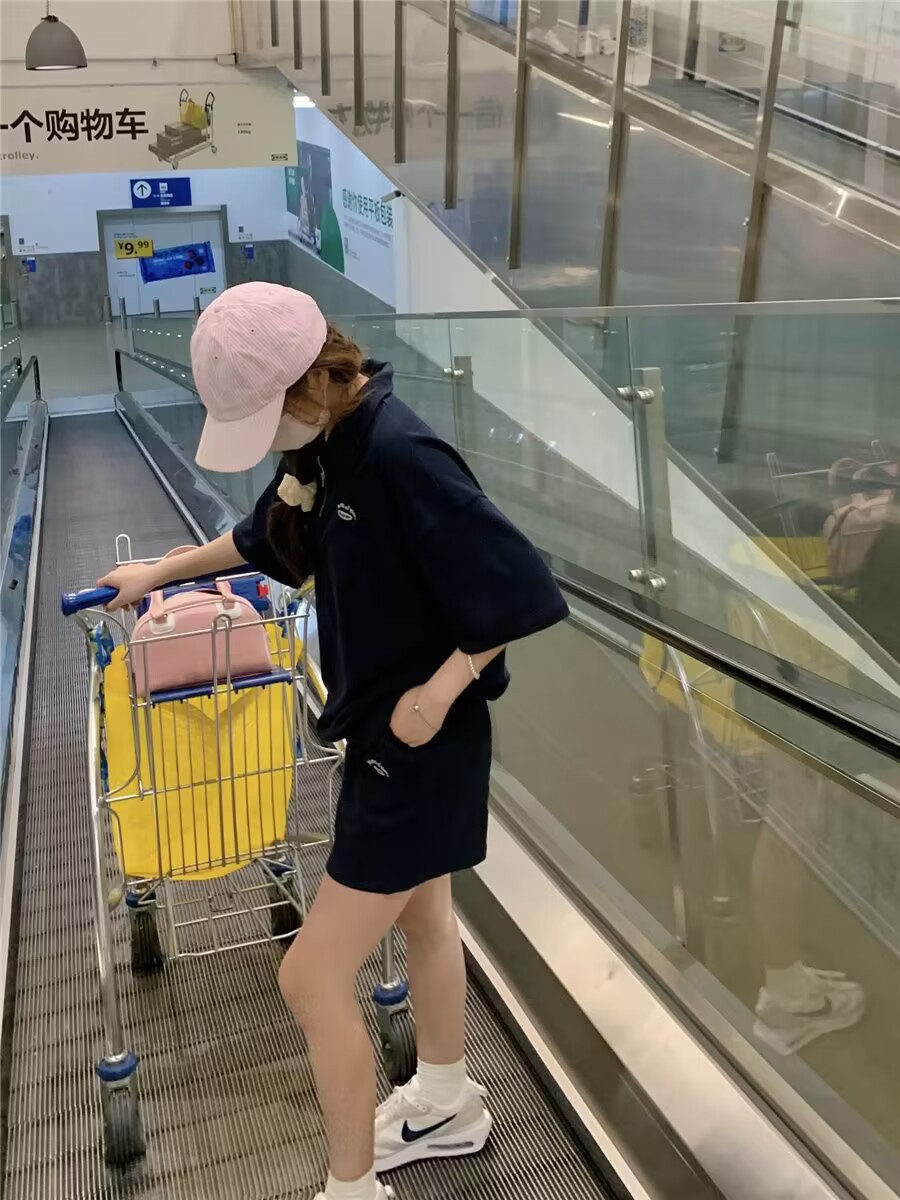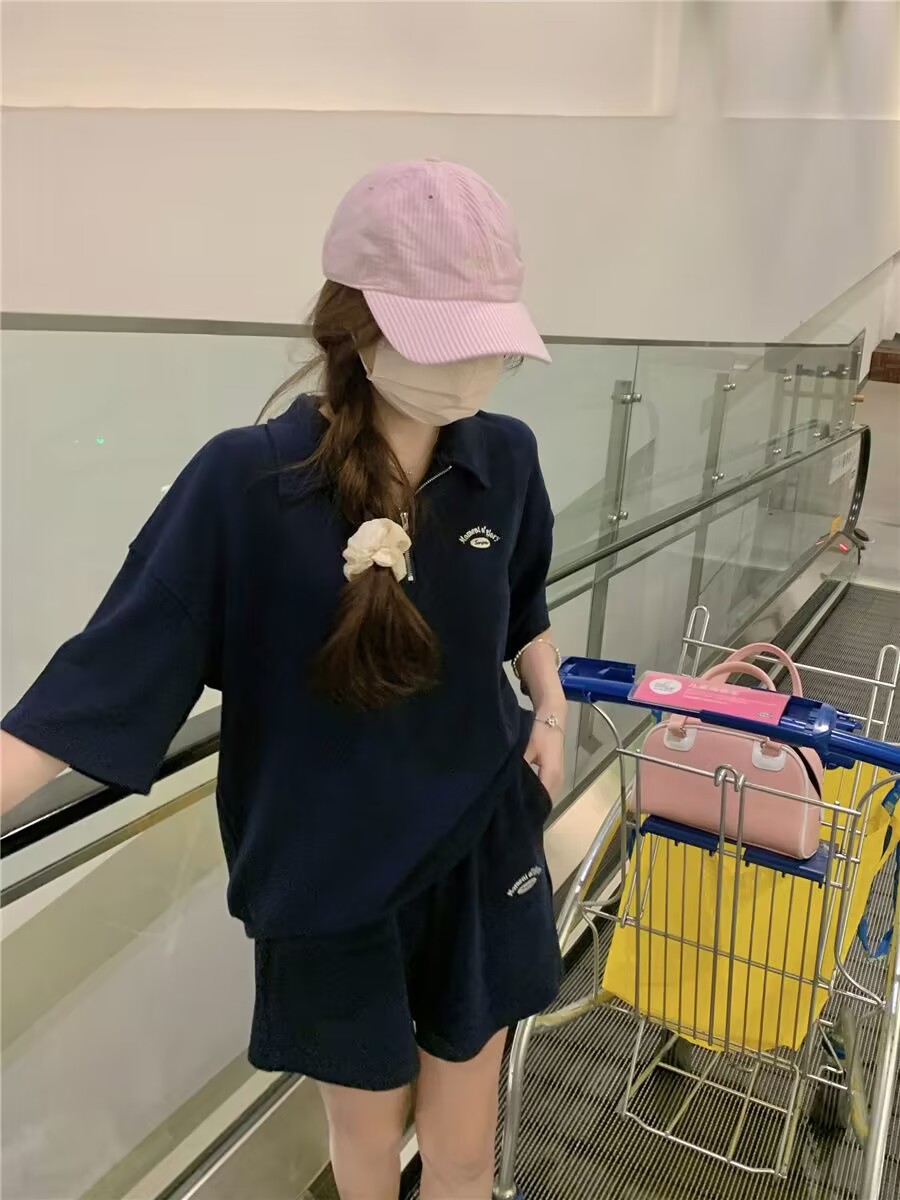 인기있는 패션 캐주얼 스포츠 정장 여성 2024 여름 한국식 느슨한 학생 반팔 반바지 투피스 세트 달리기스토어 가기