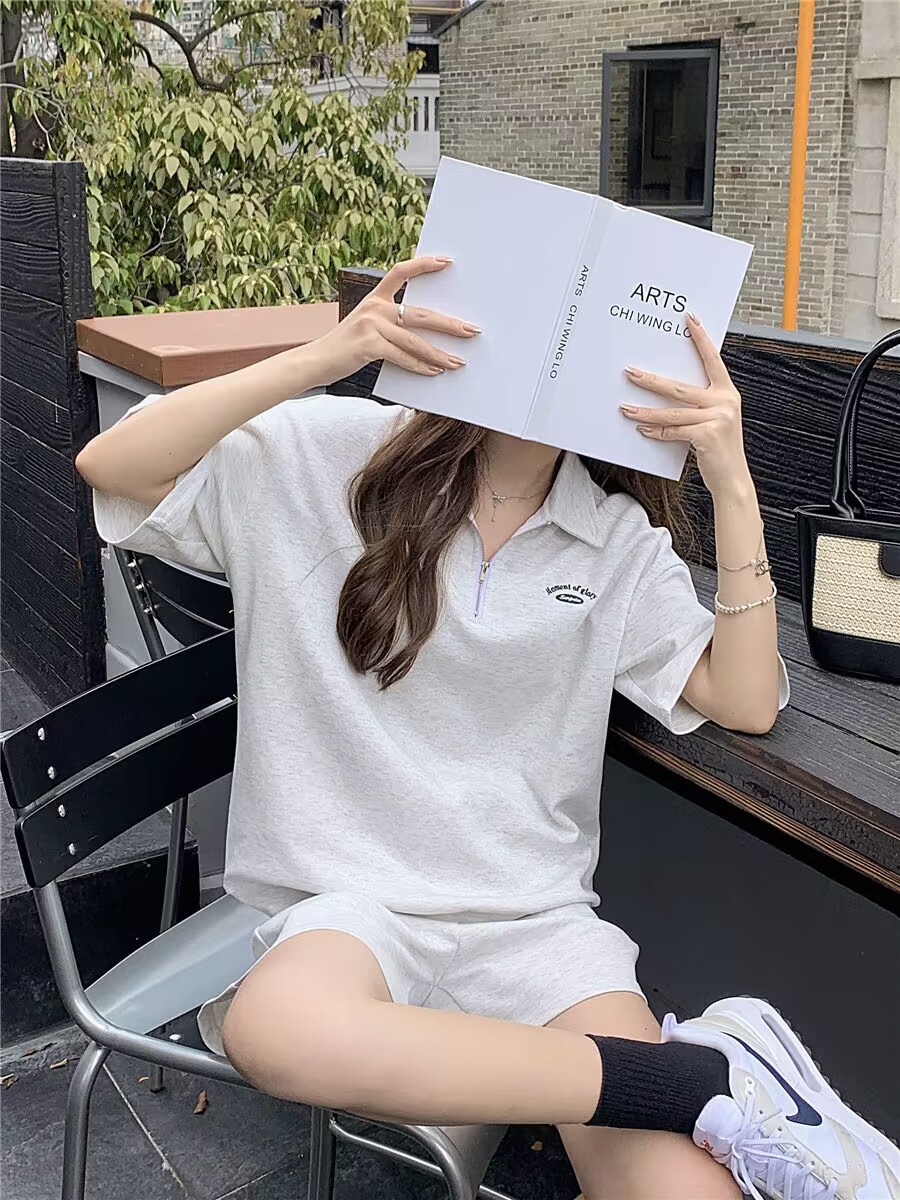 인기있는 패션 캐주얼 스포츠 정장 여성 2024 여름 한국식 느슨한 학생 반팔 반바지 투피스 세트 달리기