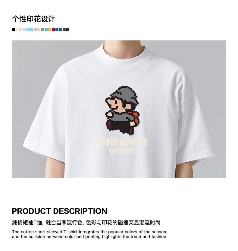 230g 여름 남성 티셔츠 헐렁한면 남성 프린트 짧은 소매 도매 캐주얼 코튼 하프 슬리브 남성용 탑