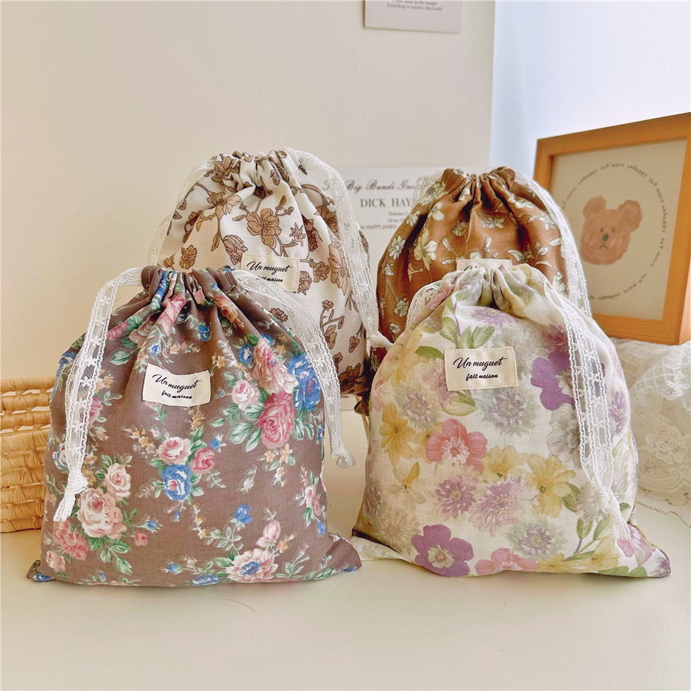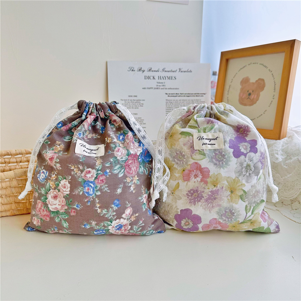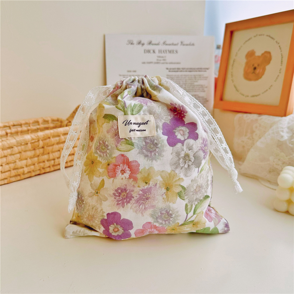 더블 코튼 빗질 코튼 drawstring 포켓 레이스 drawstring 작은 꽃 저장 가방 면화 가방 제조 업체 도매스토어 가기