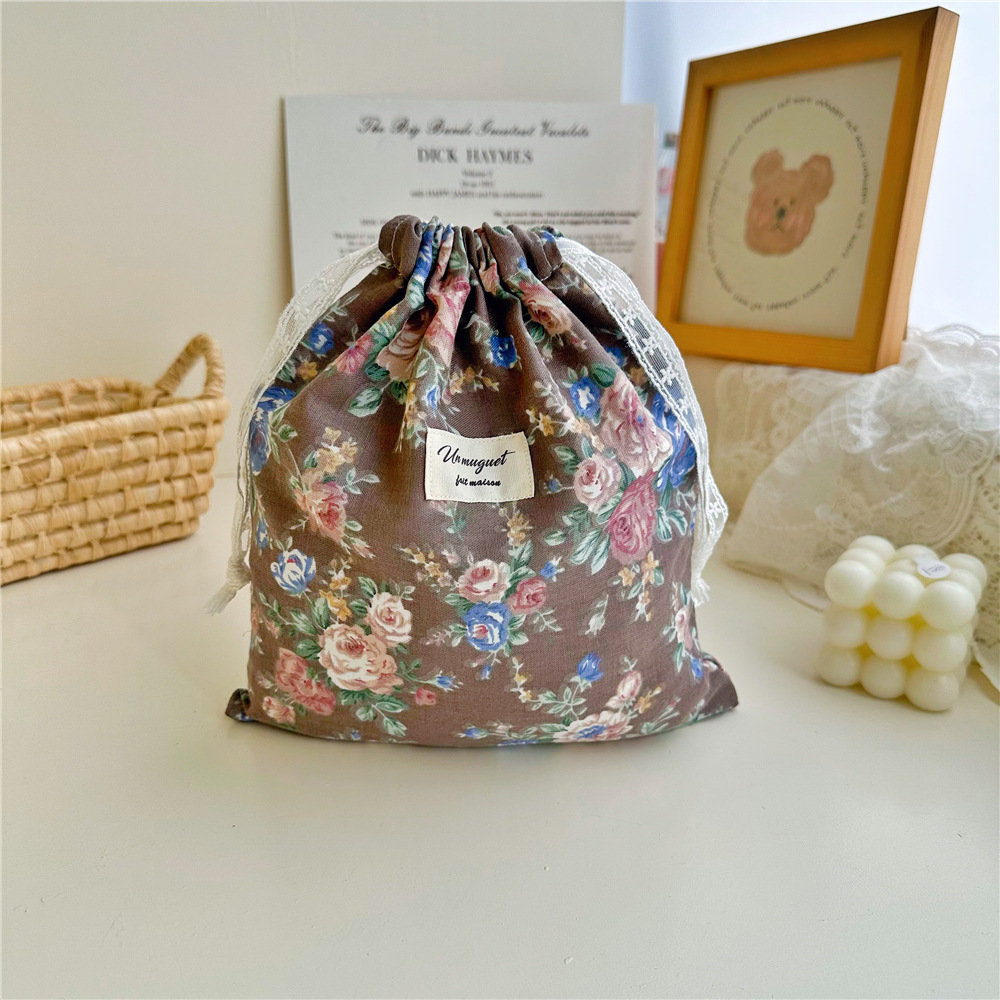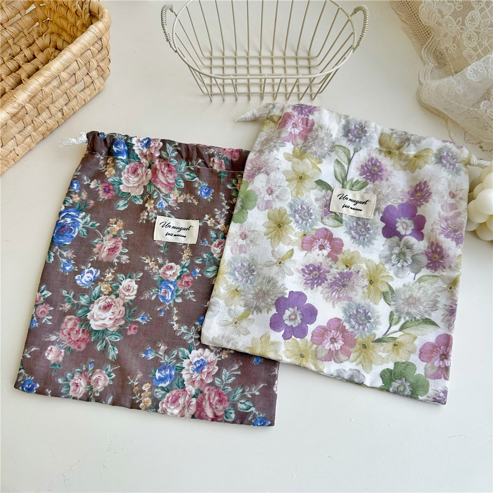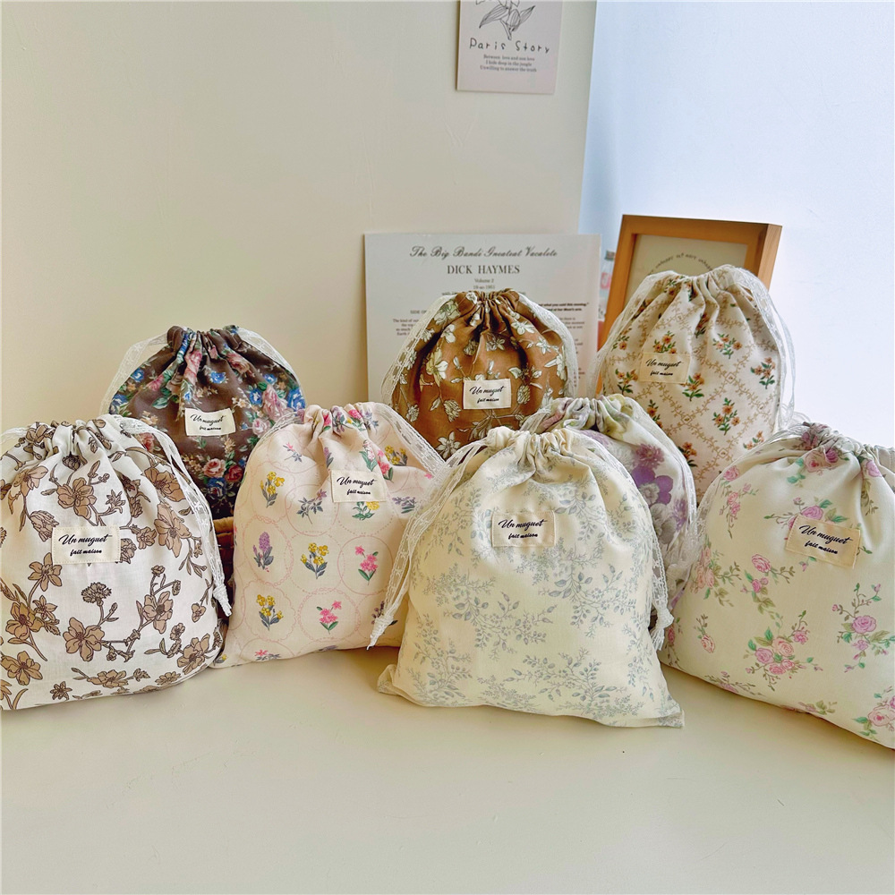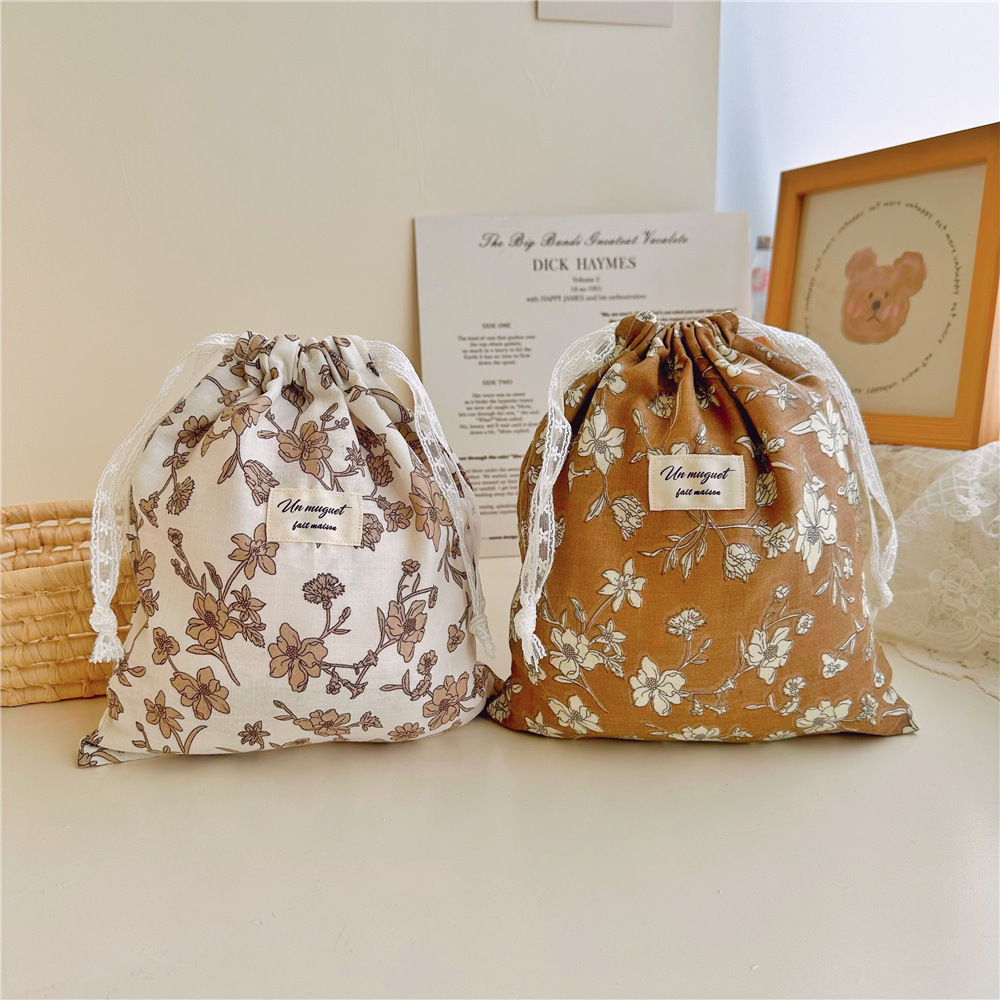 더블 코튼 빗질 코튼 drawstring 포켓 레이스 drawstring 작은 꽃 저장 가방 면화 가방 제조 업체 도매스토어 가기
