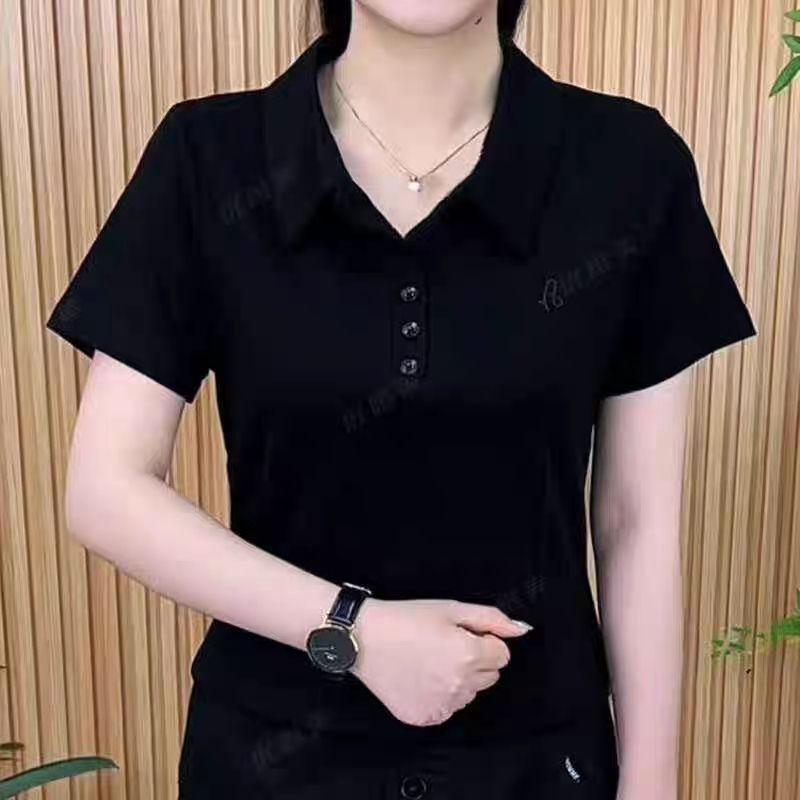 여름 새로운 디자인 간단한 대기 폴로 칼라 반팔 여성 하이 엔드 솔리드 컬러 올 매치 슬리밍 여성용 티셔츠 트렌디스토어 가기