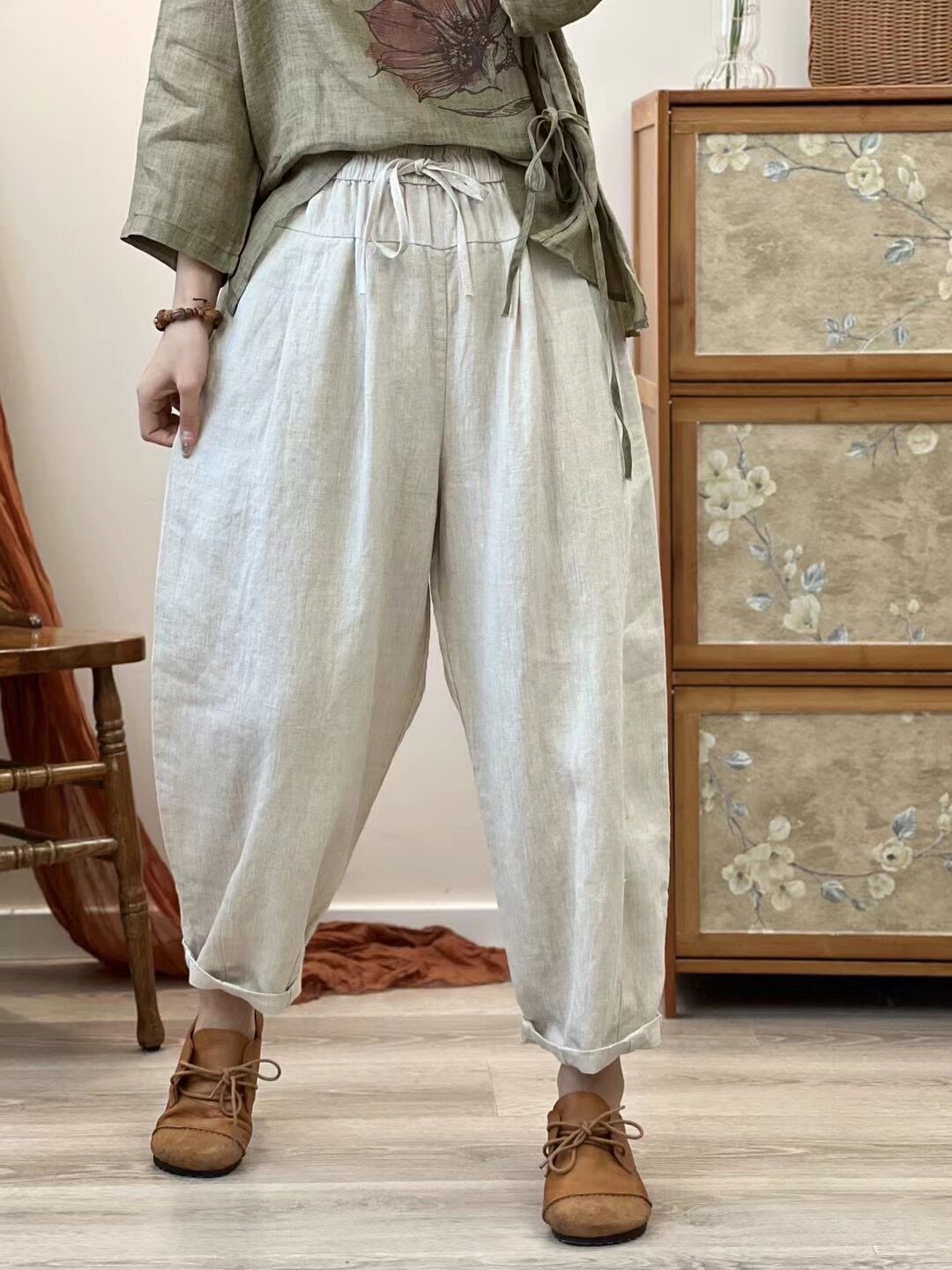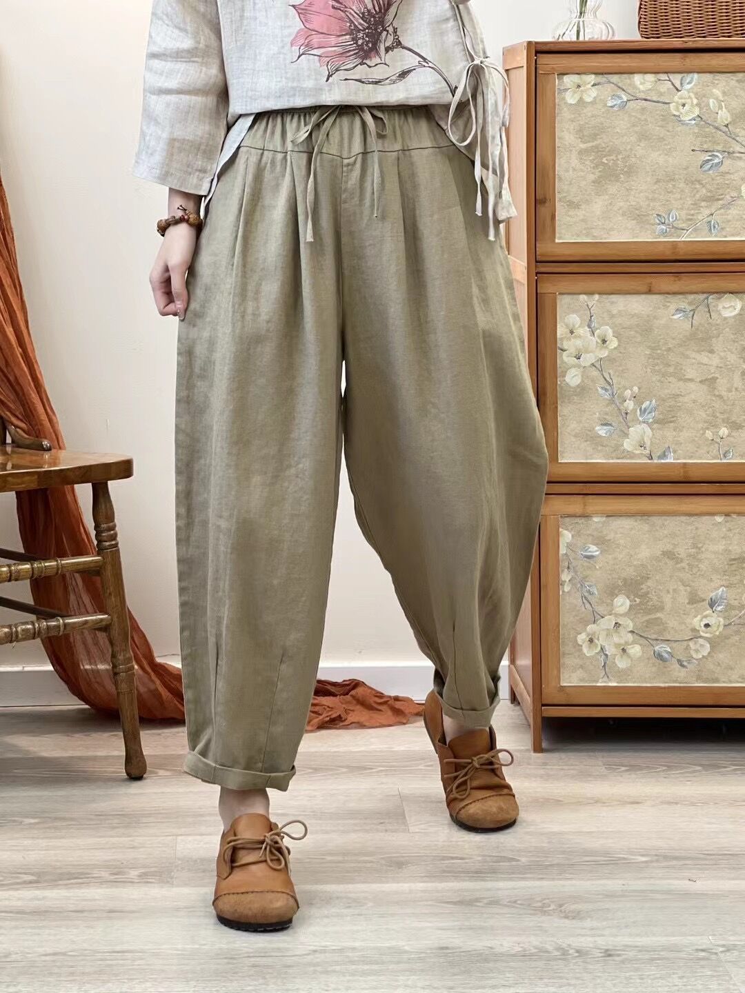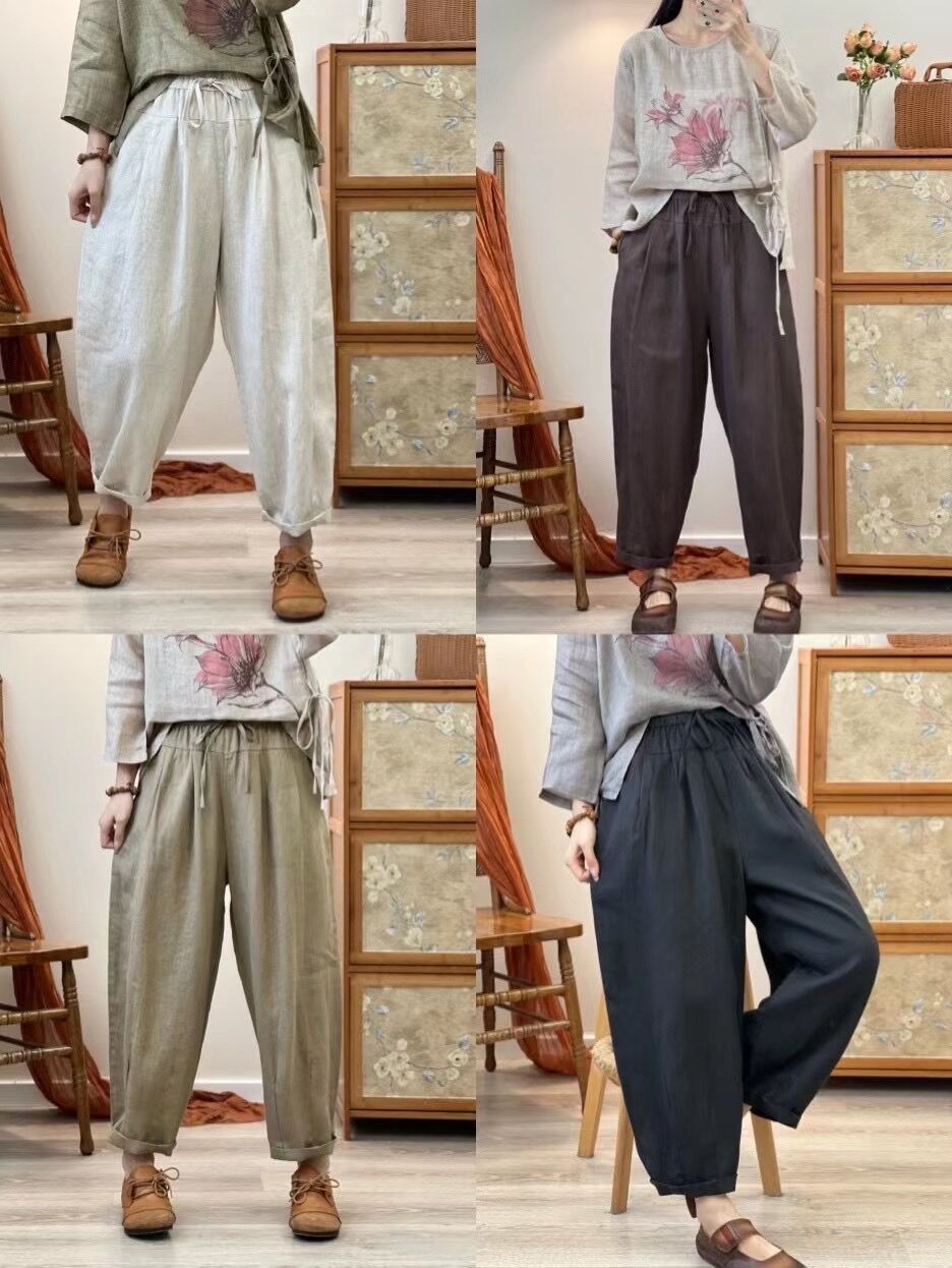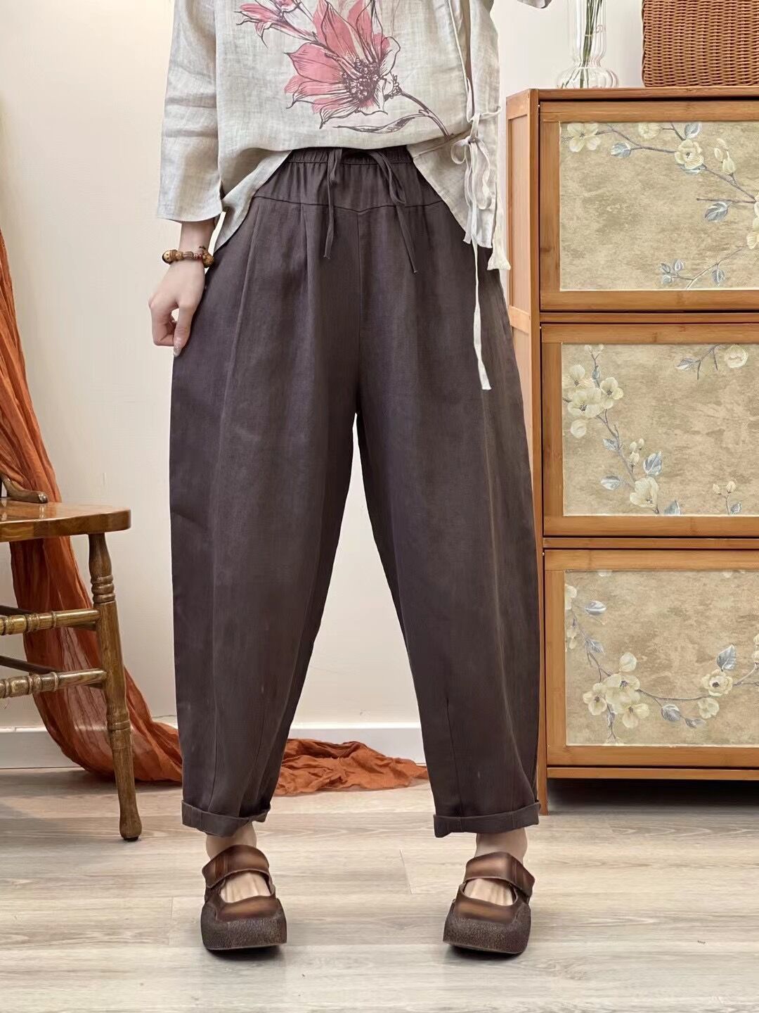 2024 년 가을 새로운 도착 캐주얼 바지 예술적 느슨한 슬림 핏 할란 바지 여성용 간단한 올 매치 솔리드 컬러 바지