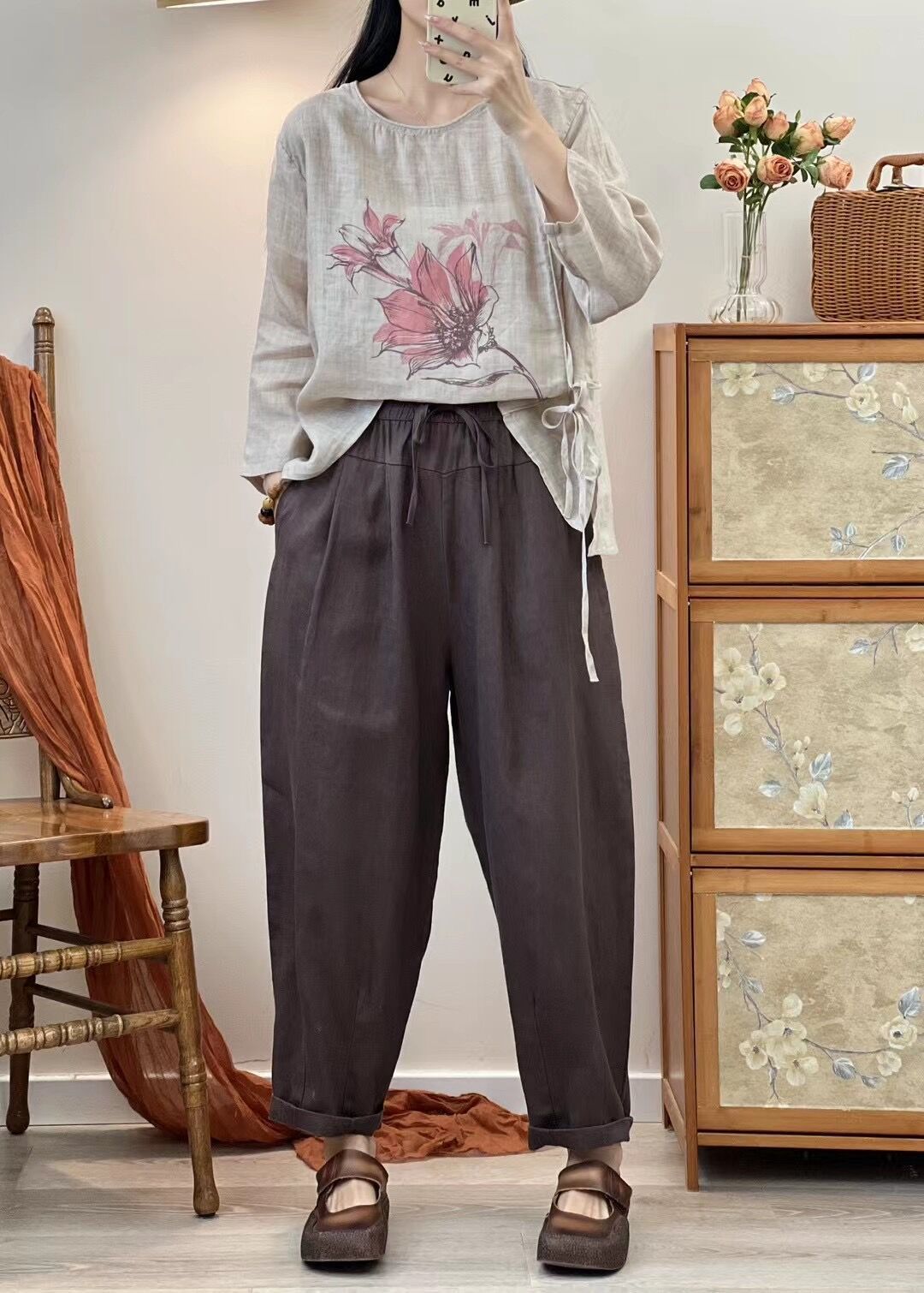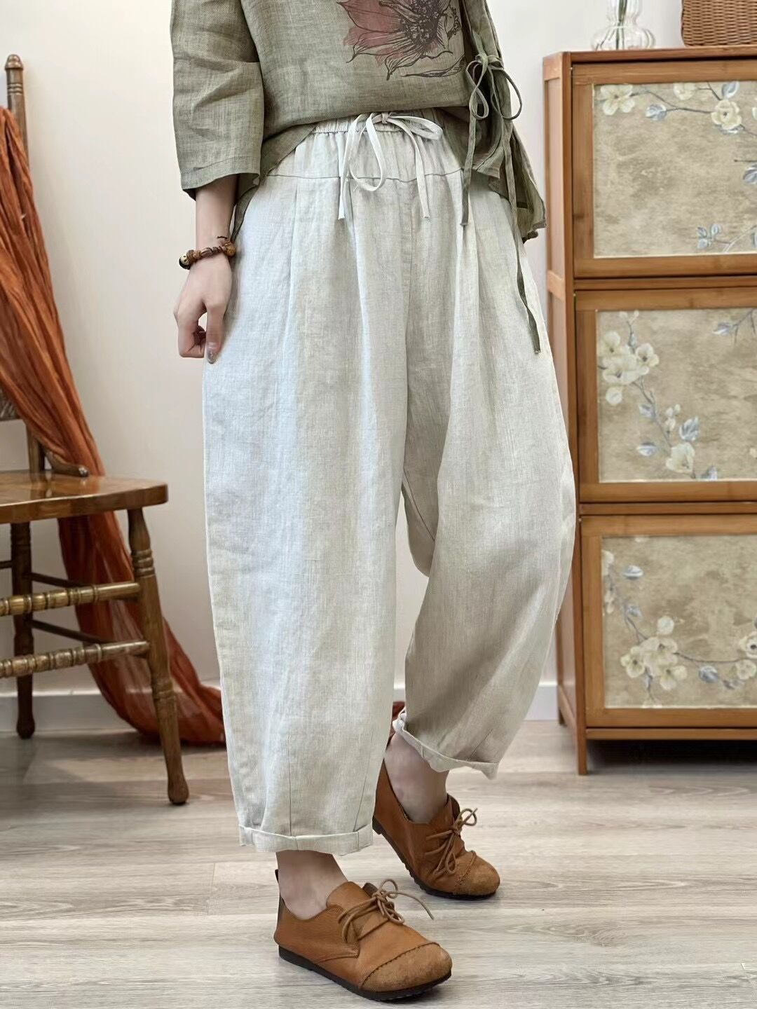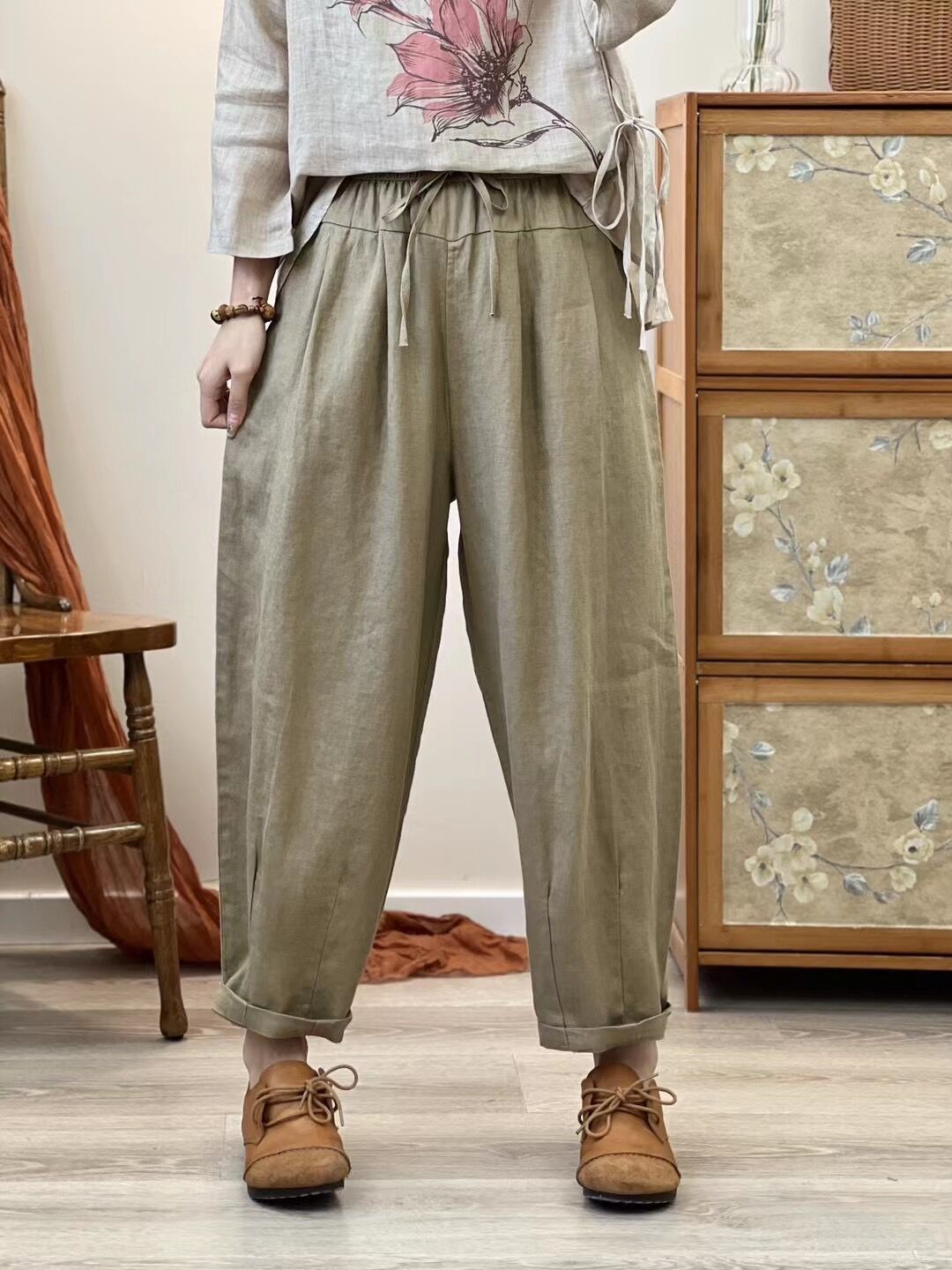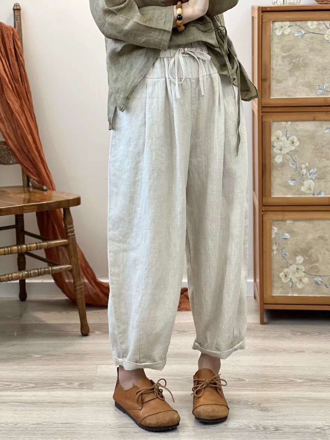 2024 년 가을 새로운 도착 캐주얼 바지 예술적 느슨한 슬림 핏 할란 바지 여성용 간단한 올 매치 솔리드 컬러 바지