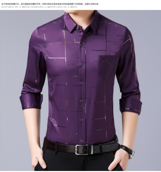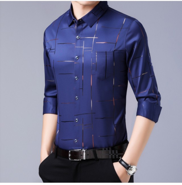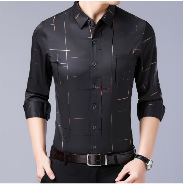 남자 느슨한 긴팔 셔츠 비 다림질 옷깃 아빠의 최고 셔츠 올매치 탄성 피부 친화적 인 캐주얼 비 필링