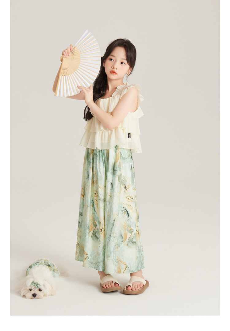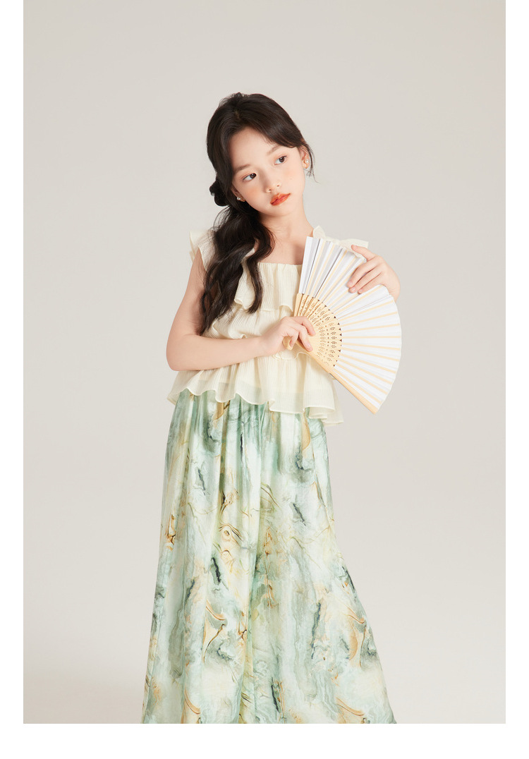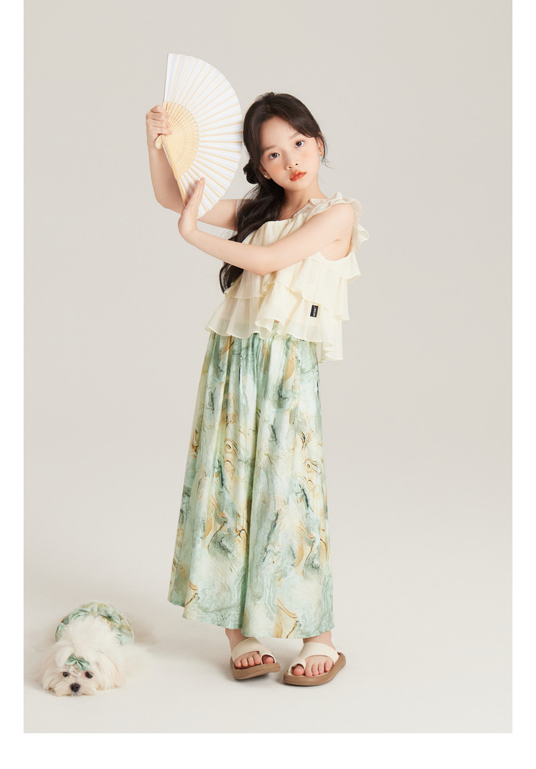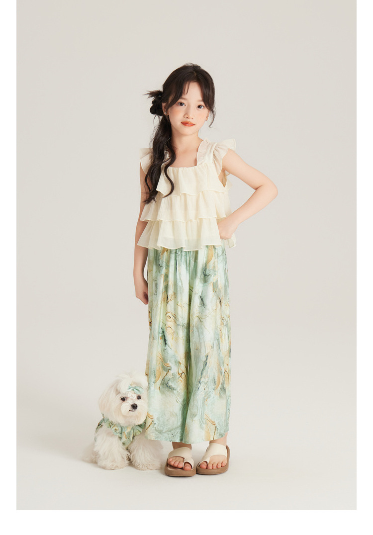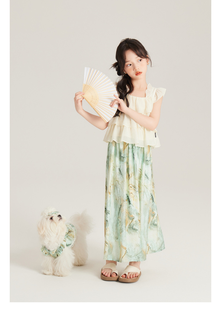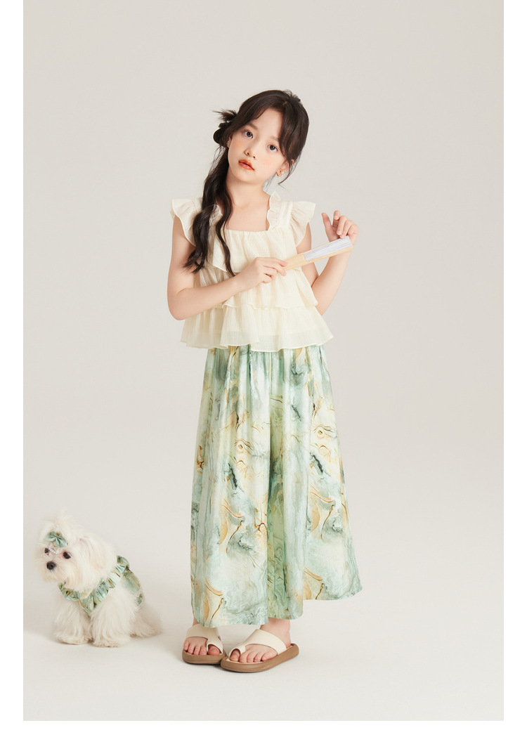 Amybaby 여자 세트 2024 여름 새 목 우아한 꽃 원피스 슬링 탑 바지