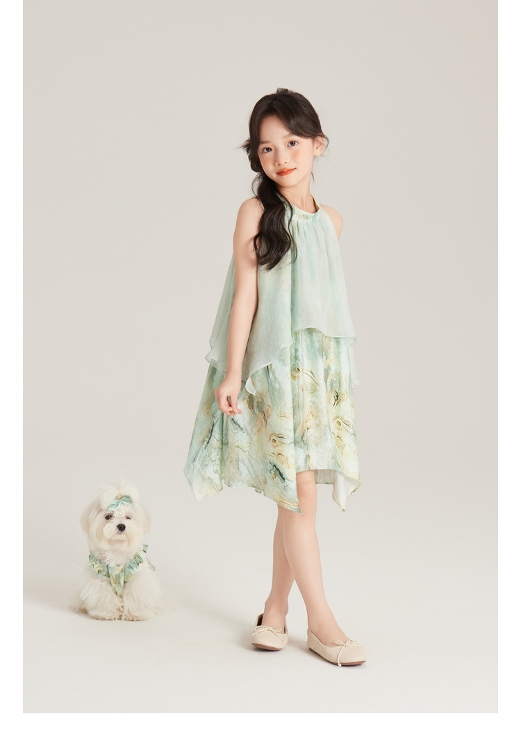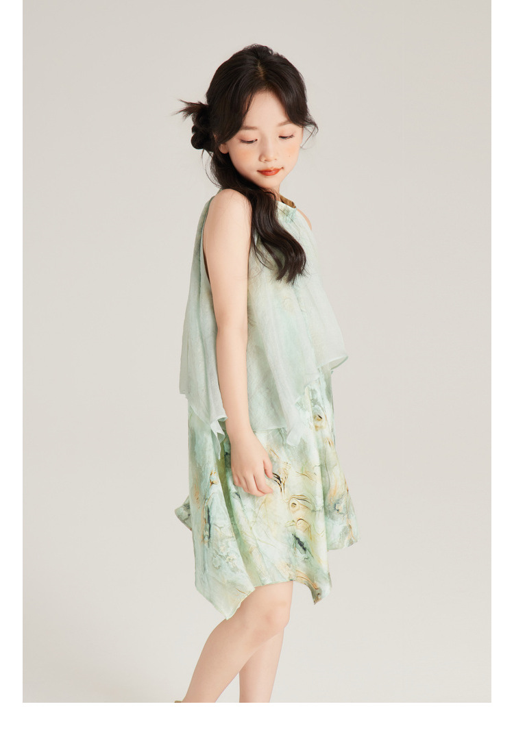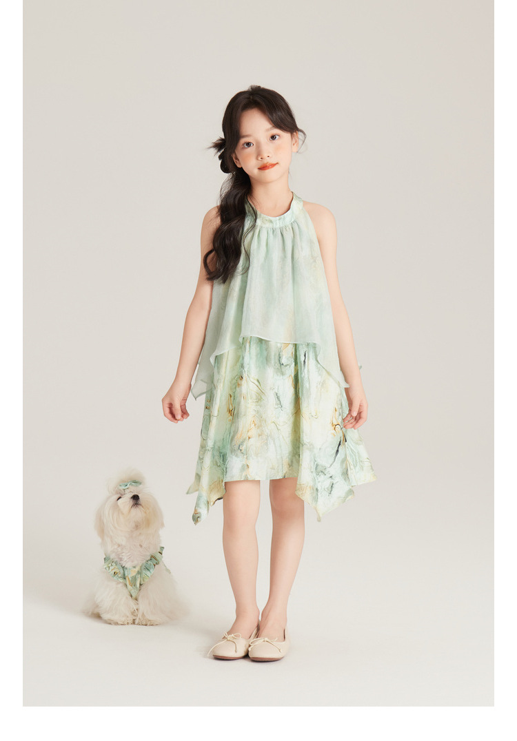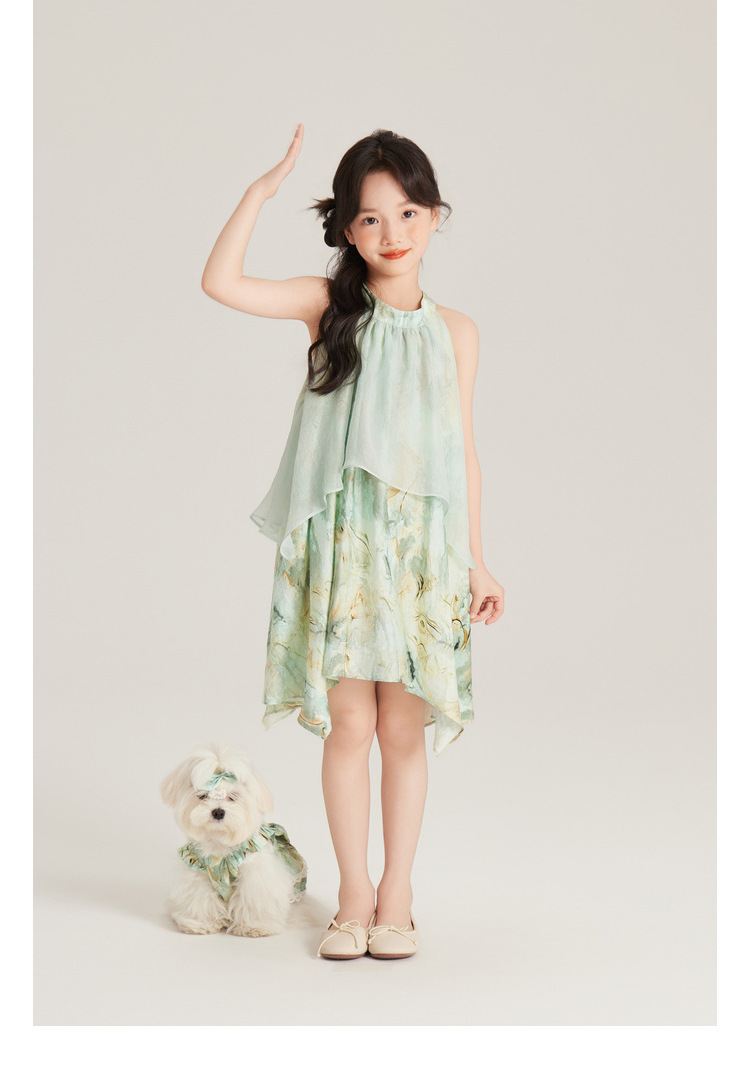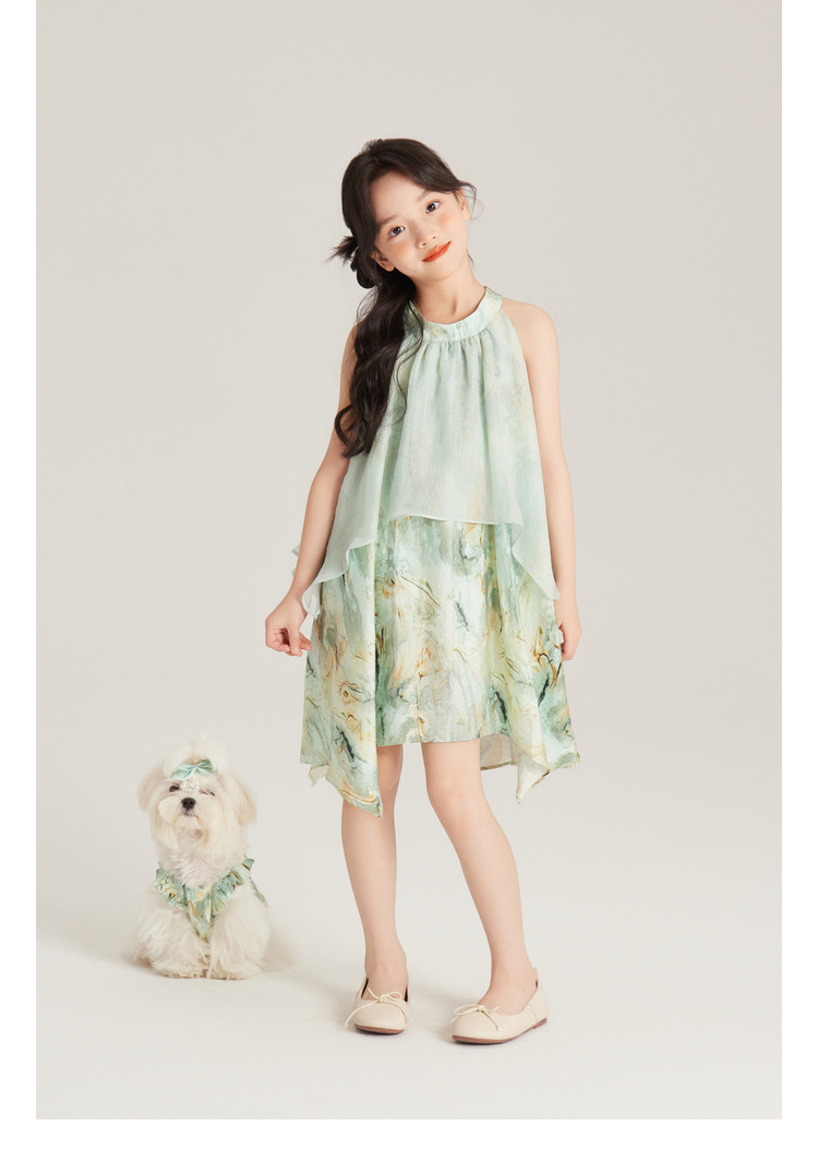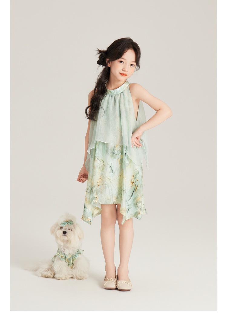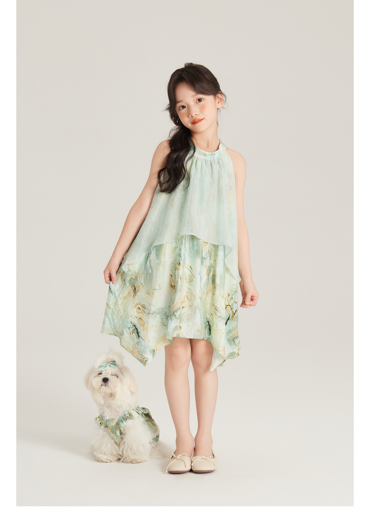 Amybaby 여자 세트 2024 여름 새 목 우아한 꽃 원피스 슬링 탑 바지