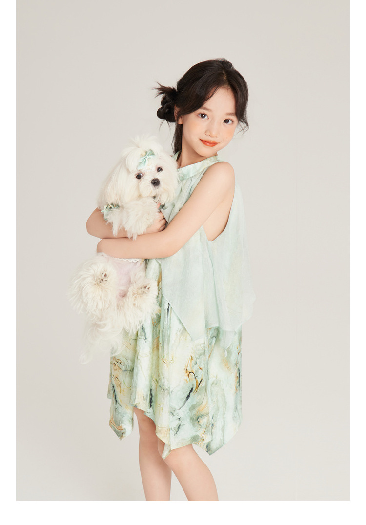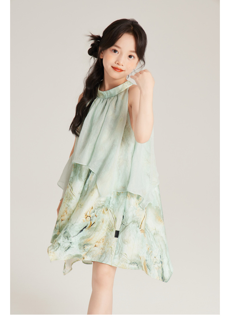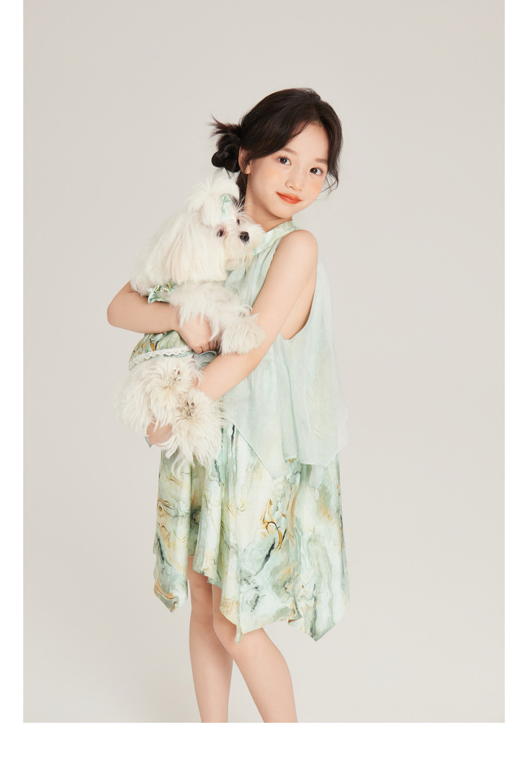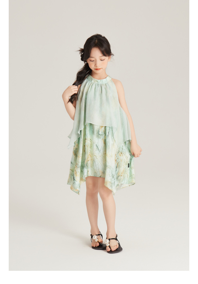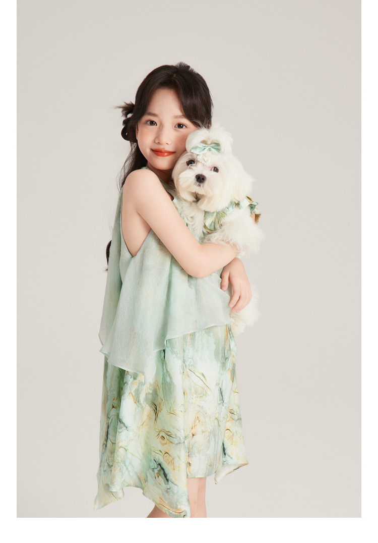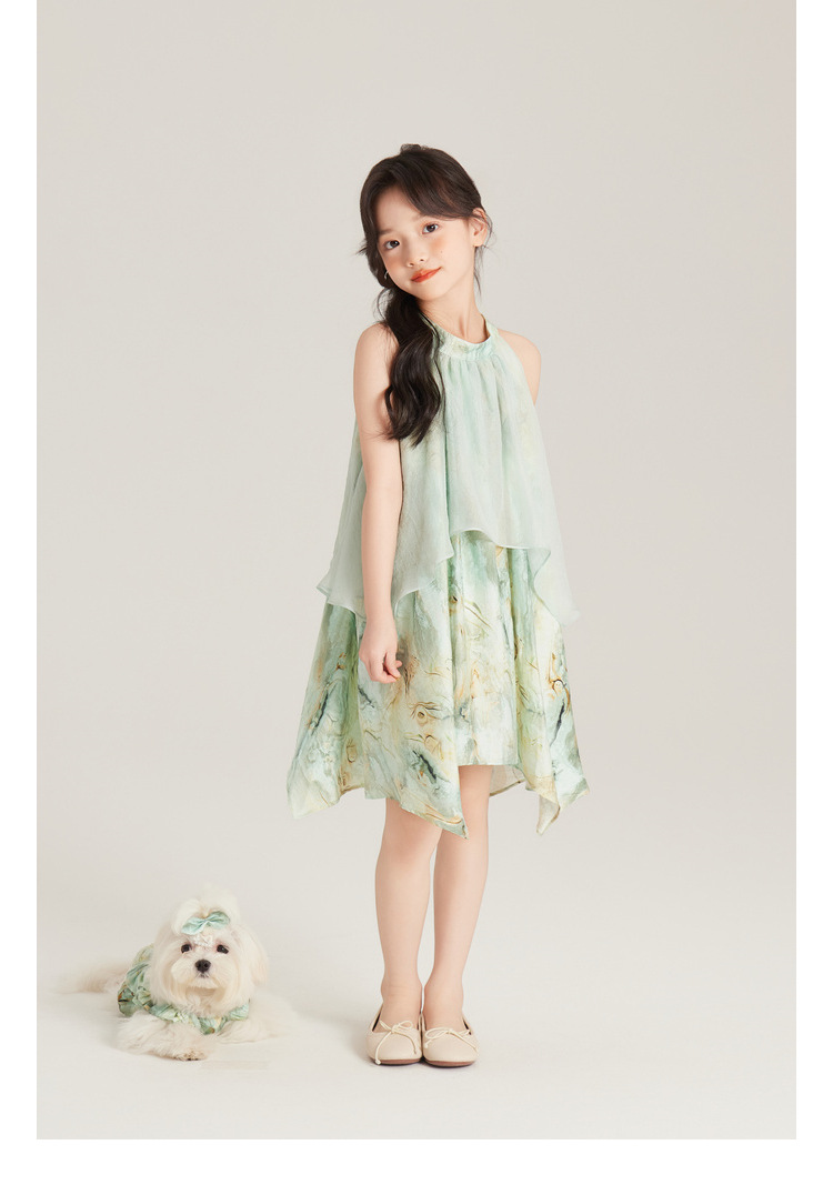 Amybaby 여자 세트 2024 여름 새 목 우아한 꽃 원피스 슬링 탑 바지