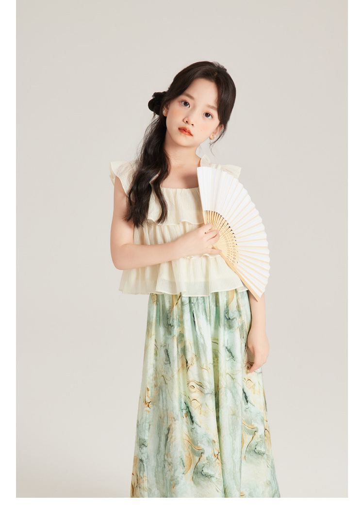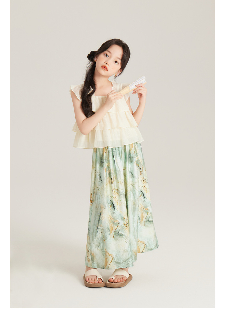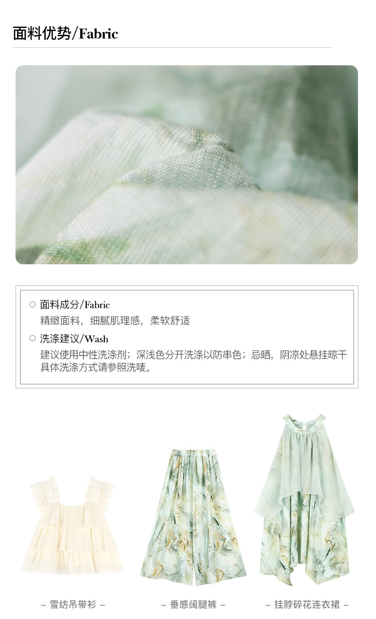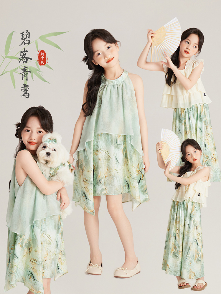Amybaby 여자 세트 2024 여름 새 목 우아한 꽃 원피스 슬링 탑 바지스토어 가기