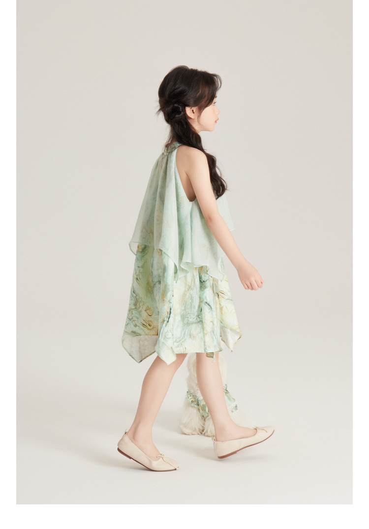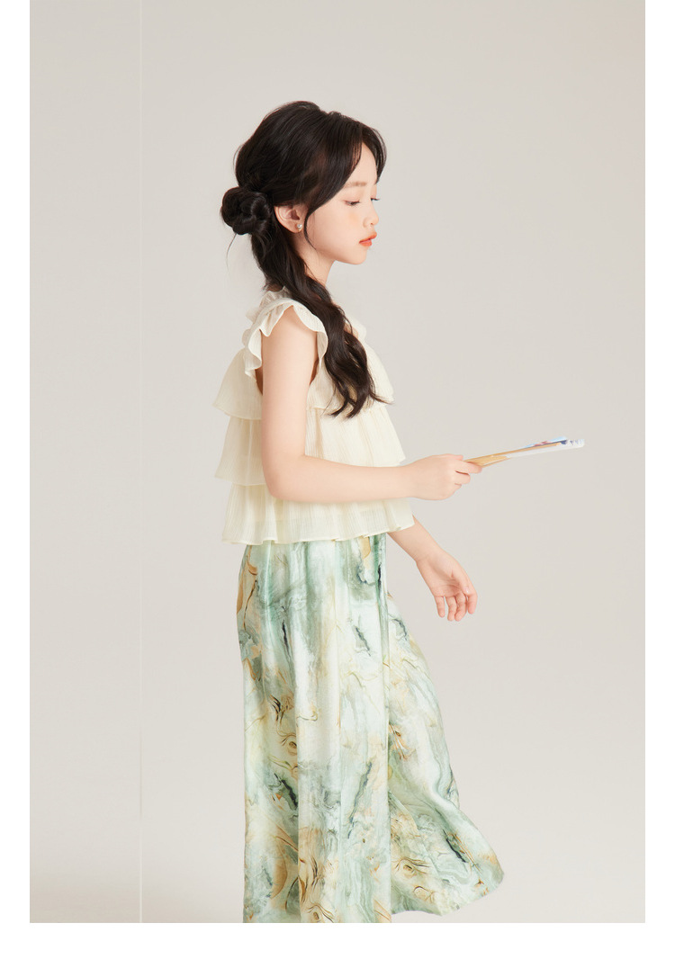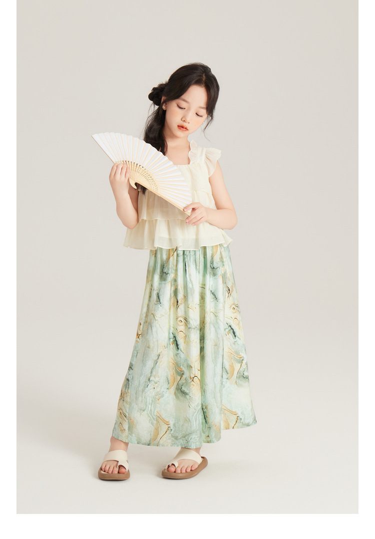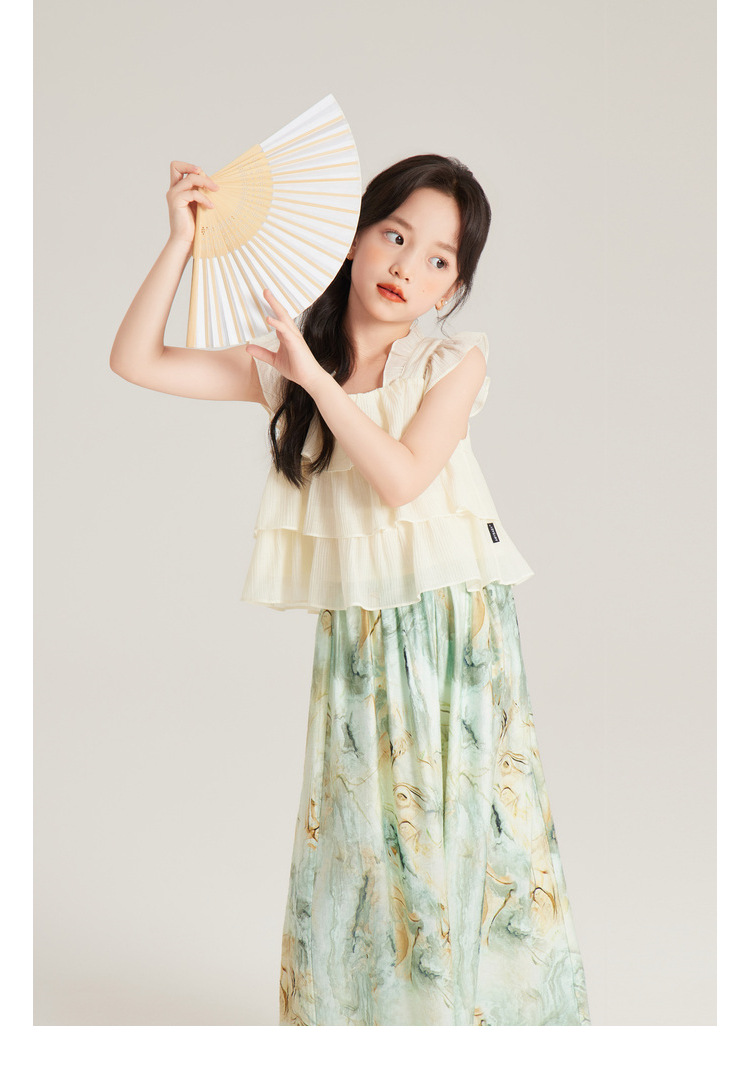 Amybaby 여자 세트 2024 여름 새 목 우아한 꽃 원피스 슬링 탑 바지스토어 가기