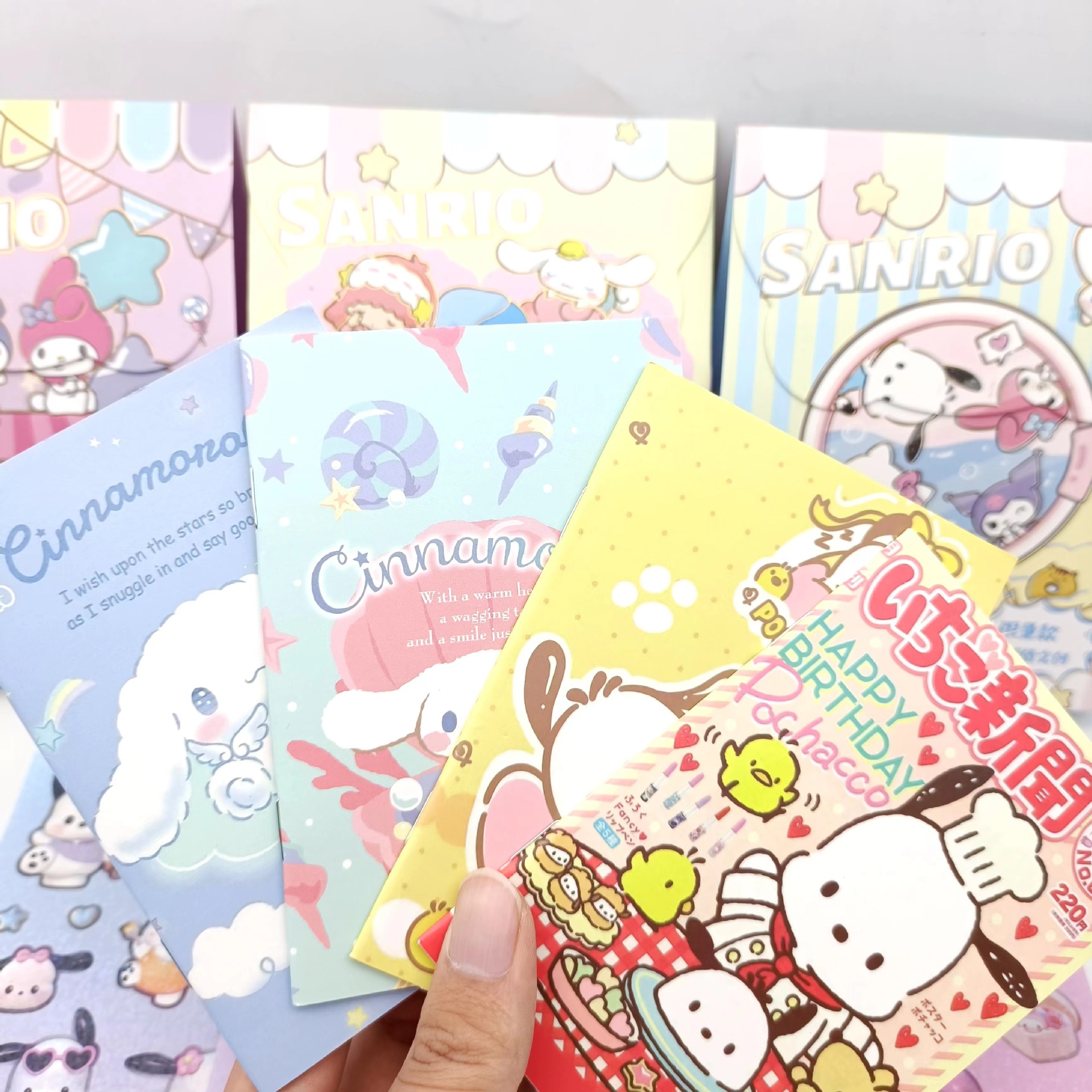 만화 높은 가치의 산리오 큰 블라인드 가방 학생들은 많은 핸드 헬드 원장 스티커 젤 펜 세트 놀라움을 좋아합니다.스토어 가기