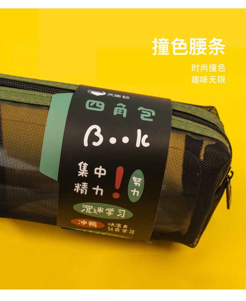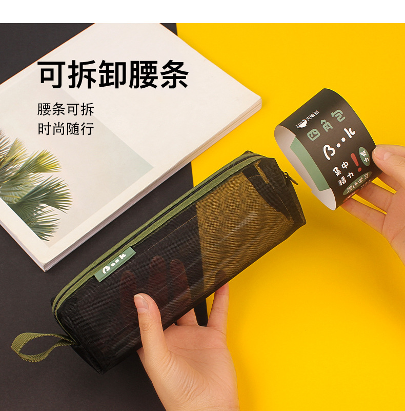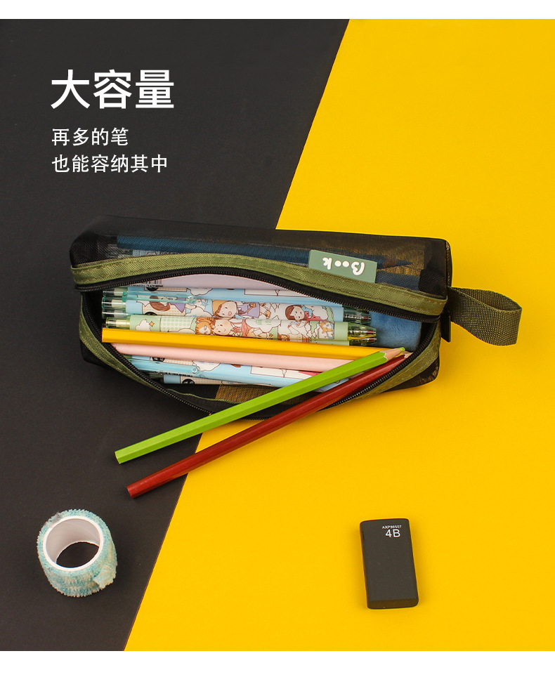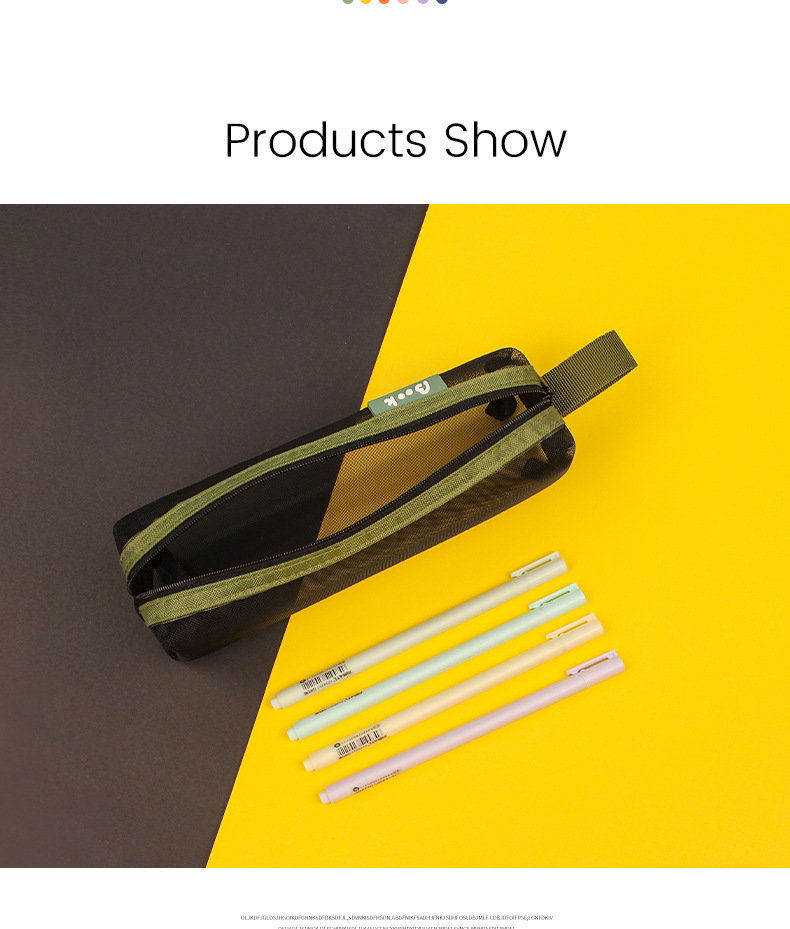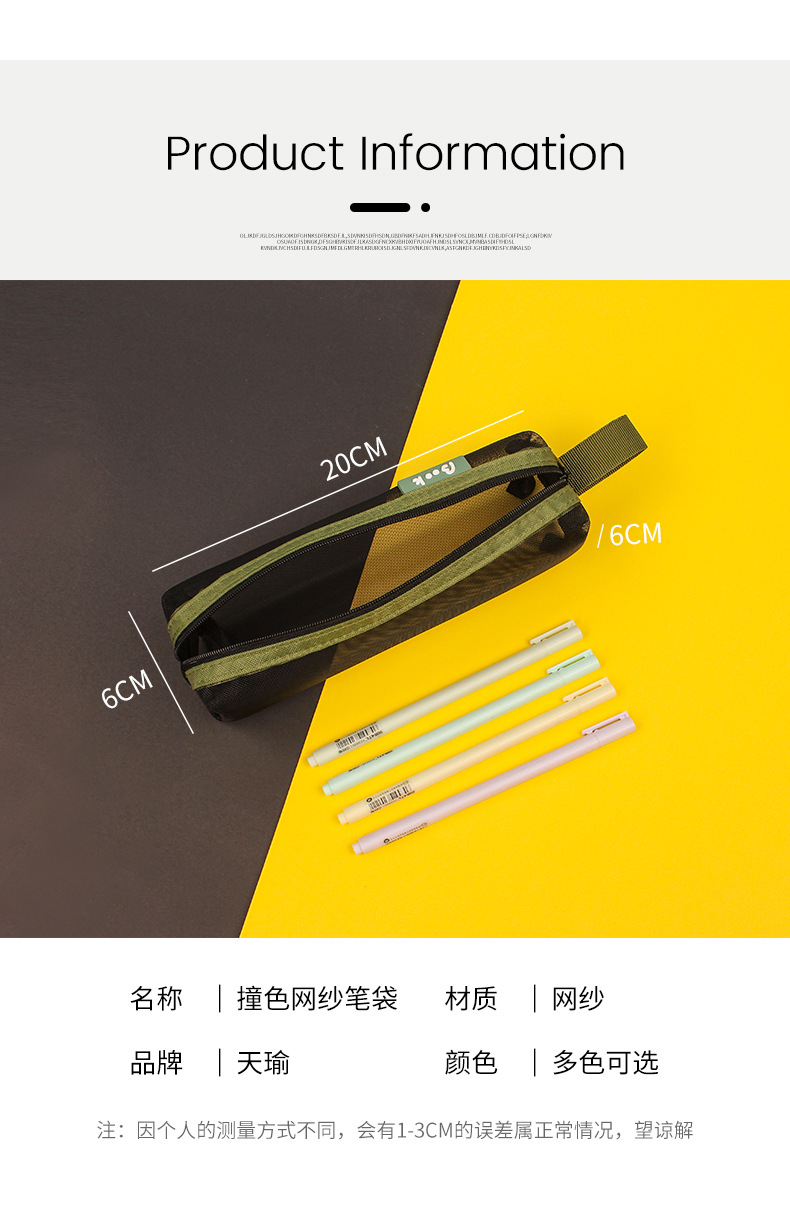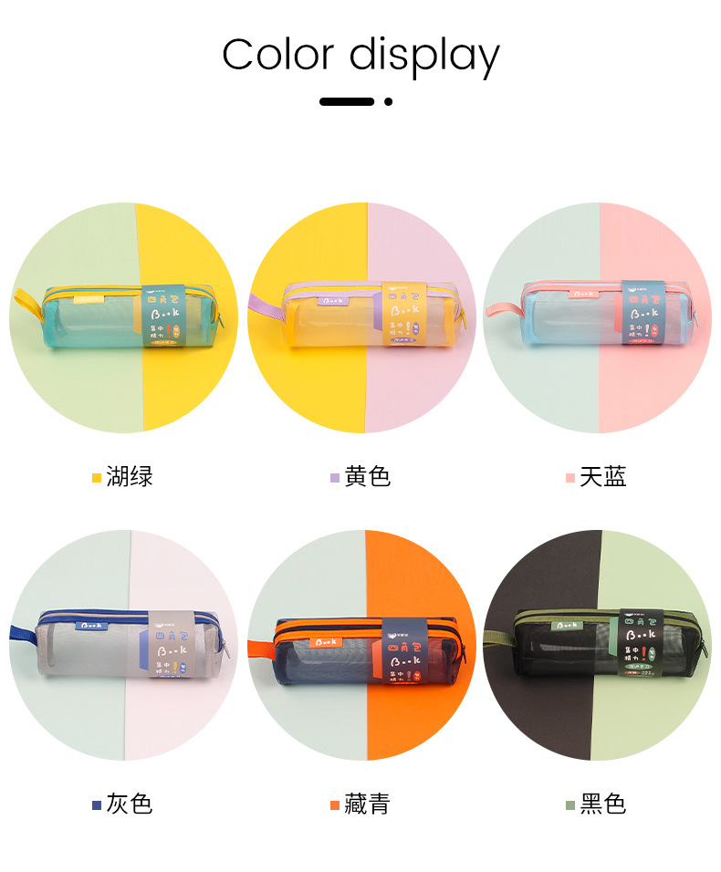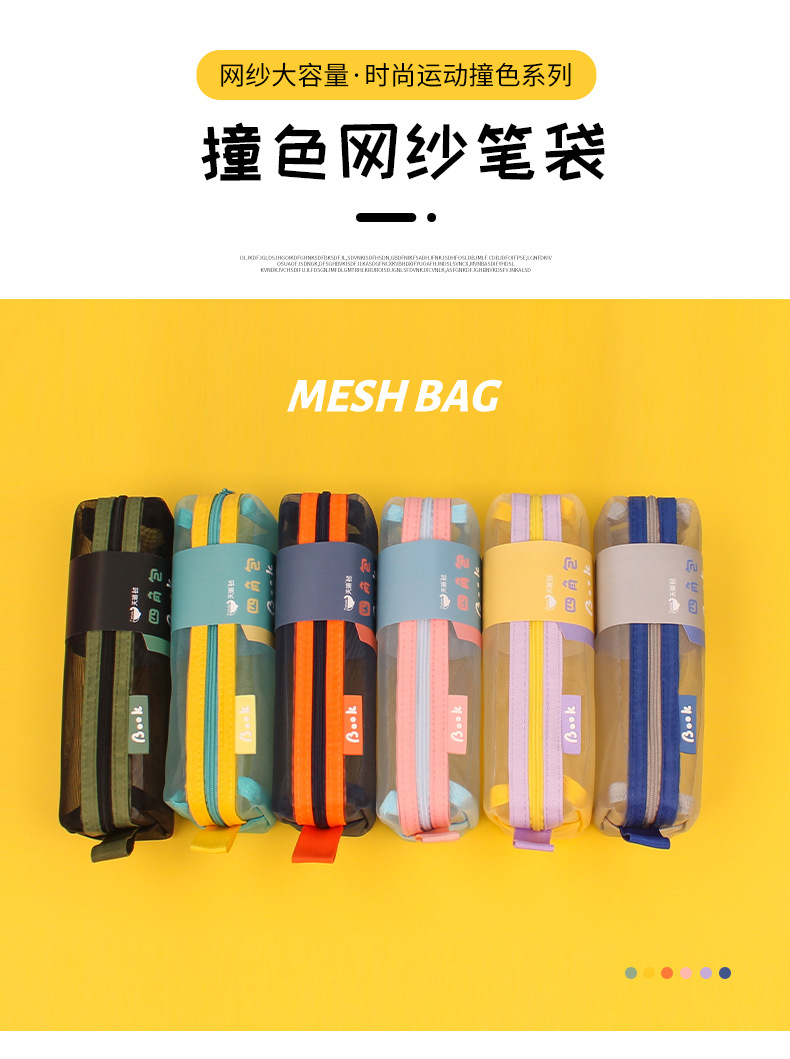메쉬 연필 가방 초등 및 중등 학교 학생 시험 지퍼 투명한 솔리드 컬러 문구 가방 간단한 연필 가방 대비 컬러 연필 가방 도매