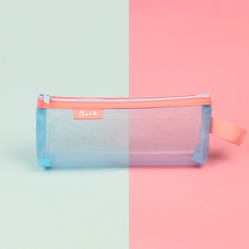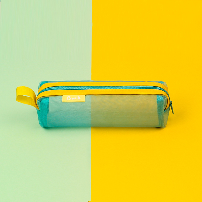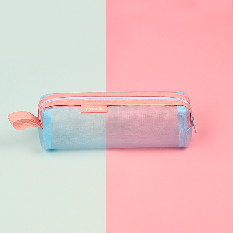 메쉬 연필 가방 초등 및 중등 학교 학생 시험 지퍼 투명한 솔리드 컬러 문구 가방 간단한 연필 가방 대비 컬러 연필 가방 도매스토어 가기
