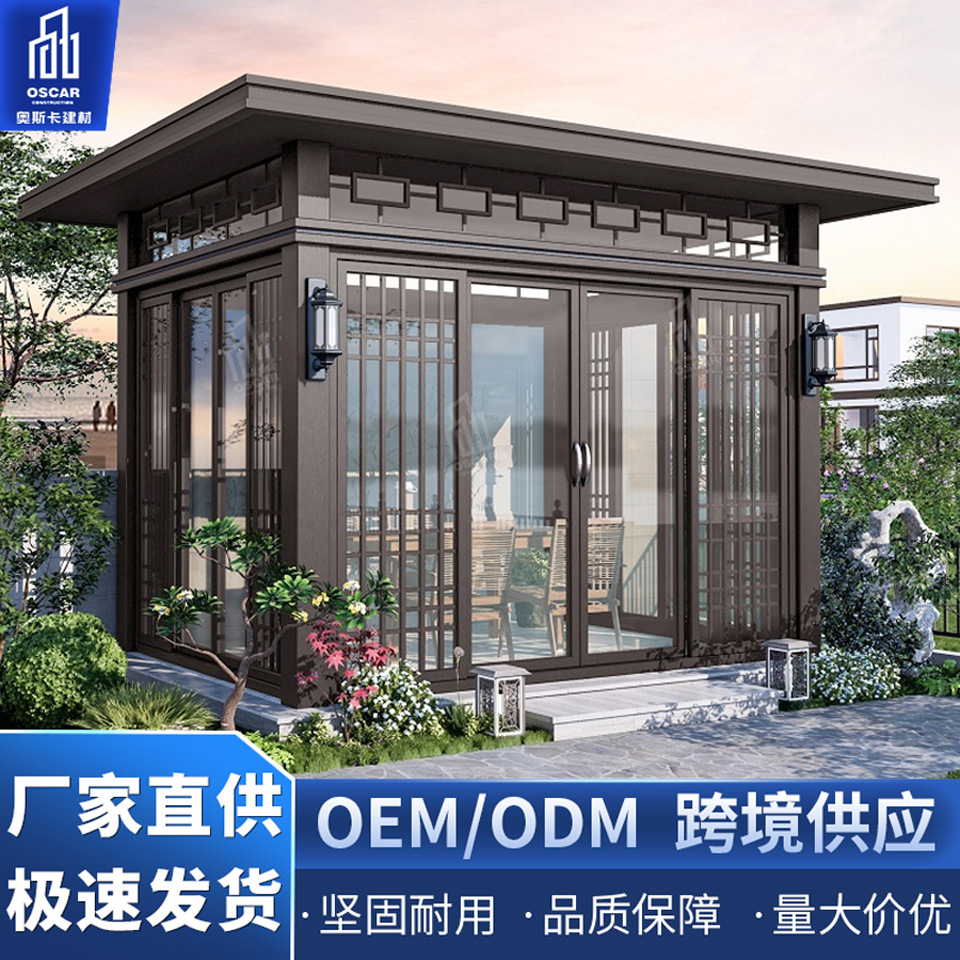 파빌리온 육각형 캐스트 알루미늄 하이 엔드 현관 프레임 슬라이딩 도어 복도 알루미늄 합금 루버 차양 바람 방지 홈스테이 폐쇄