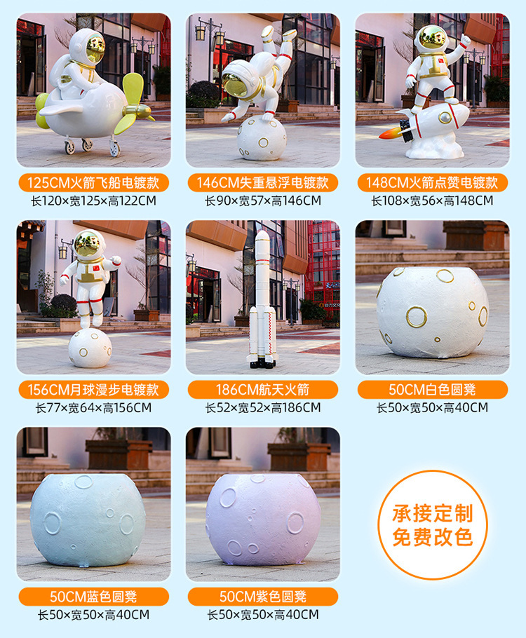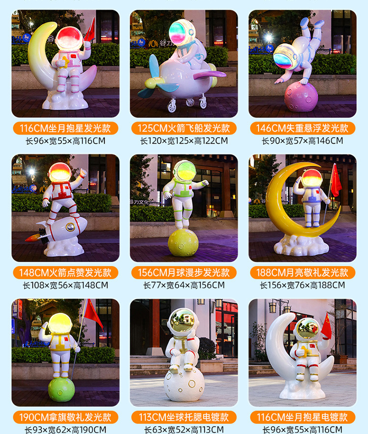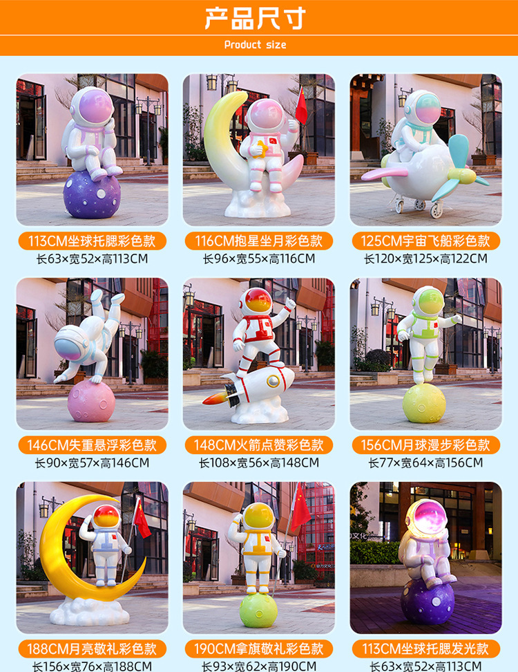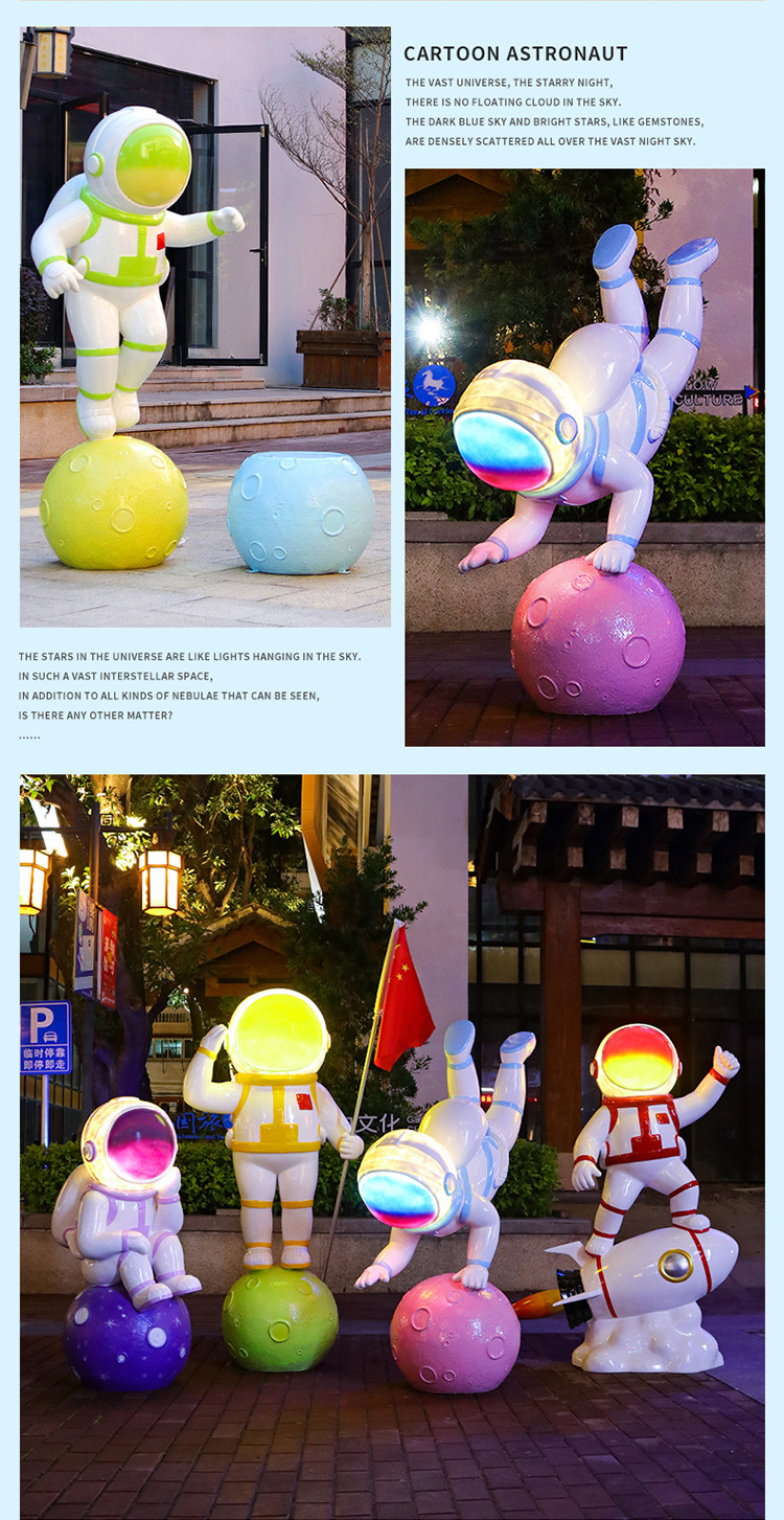 빛나는 우주 비행사 조각 야외 만화 장식 과학 기술 박물관 광장 공원 쇼핑몰 유치원 장식품스토어 가기