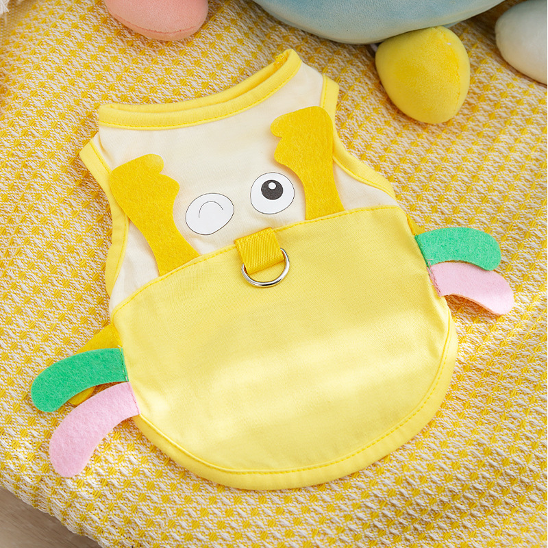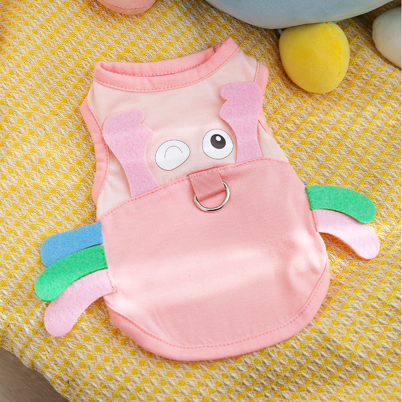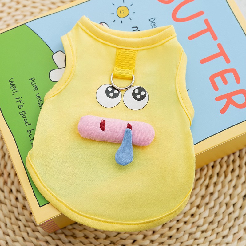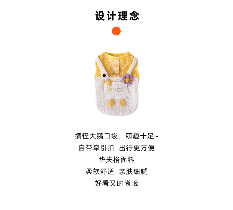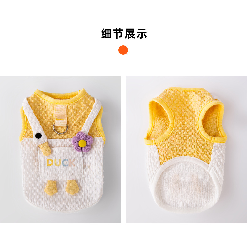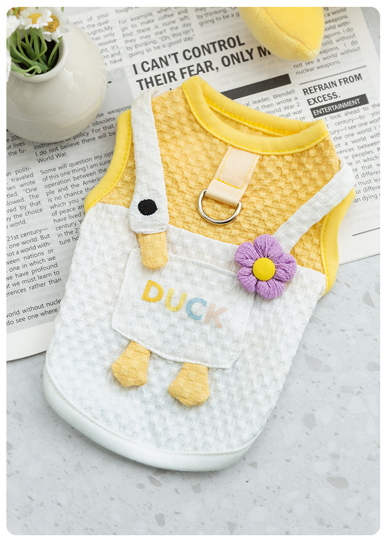 봄과 여름 개 귀여운 만화 재미 큰 흰색 거위 주머니 견인 조끼 작은 개 고양이 애완 동물 개 옷