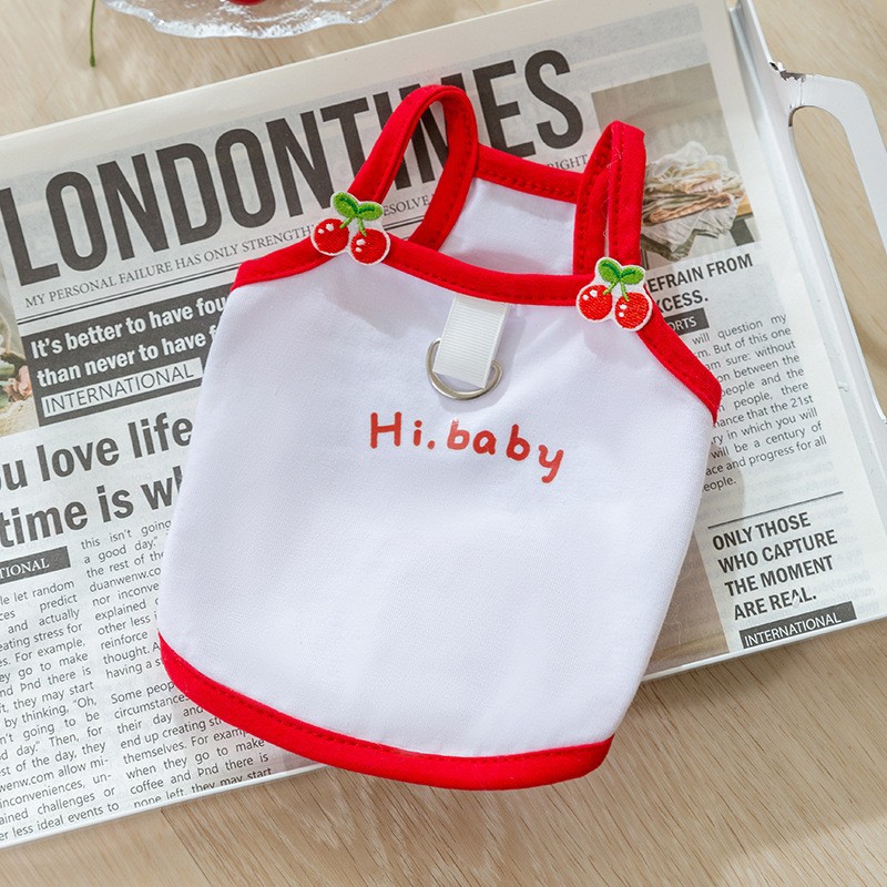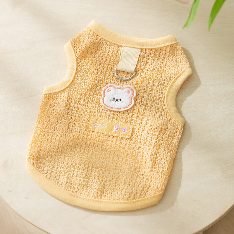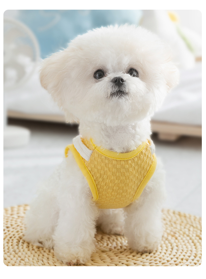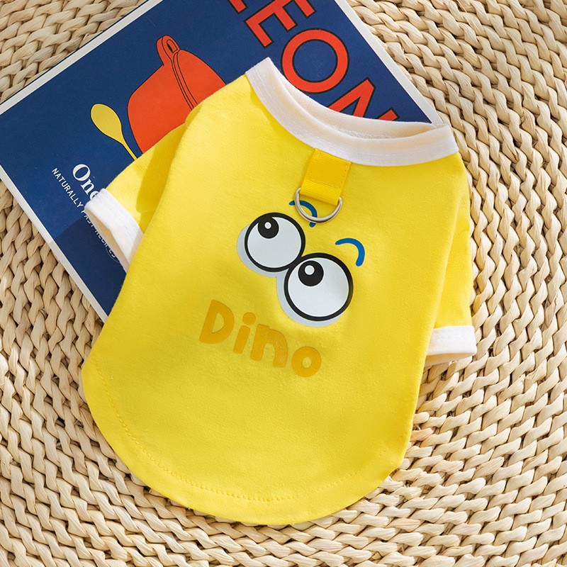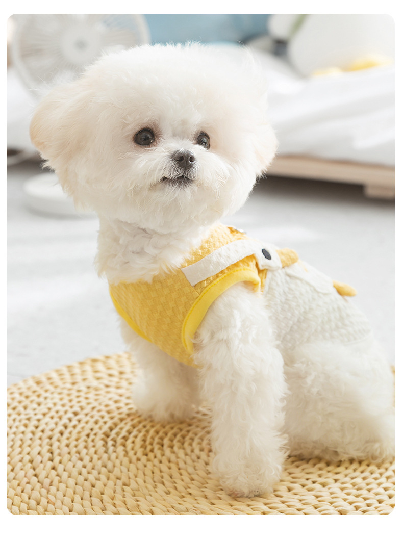 봄과 여름 개 귀여운 만화 재미 큰 흰색 거위 주머니 견인 조끼 작은 개 고양이 애완 동물 개 옷