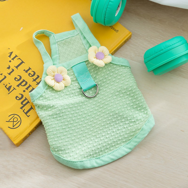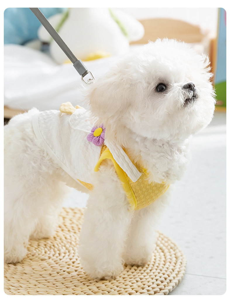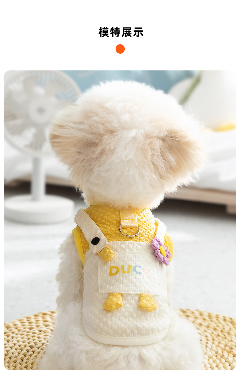 봄과 여름 개 귀여운 만화 재미 큰 흰색 거위 주머니 견인 조끼 작은 개 고양이 애완 동물 개 옷스토어 가기