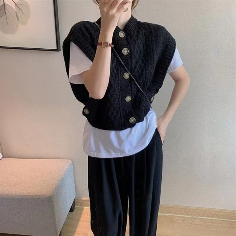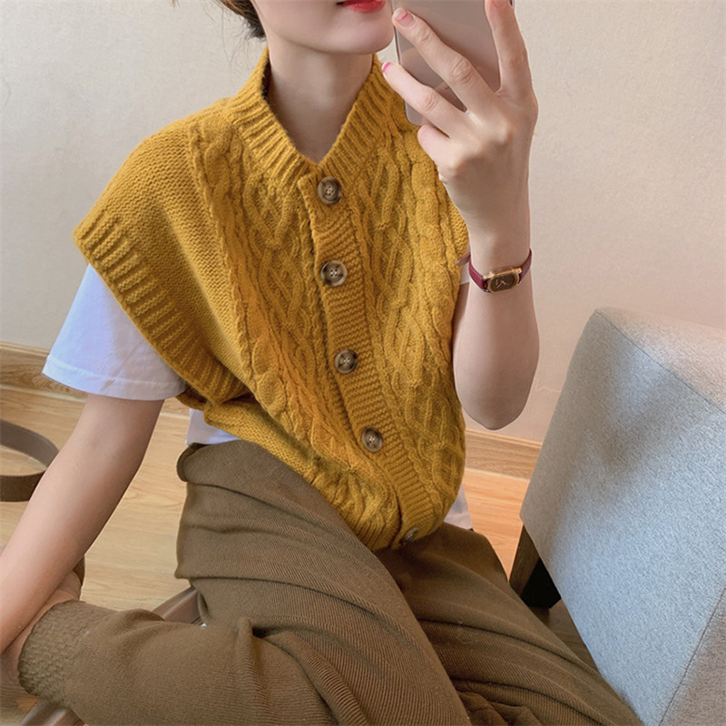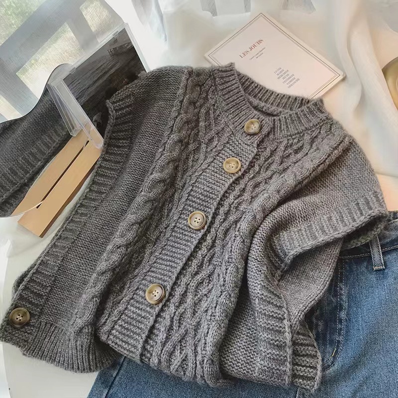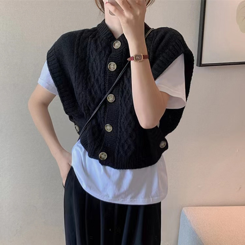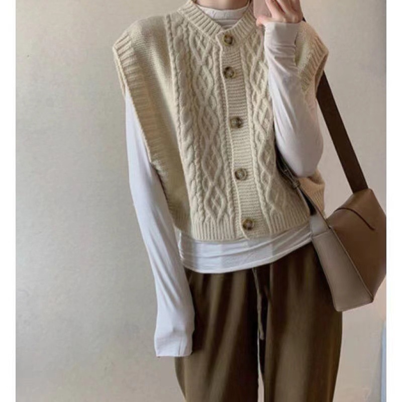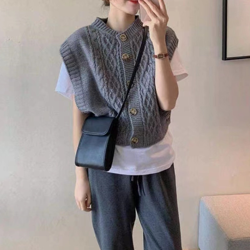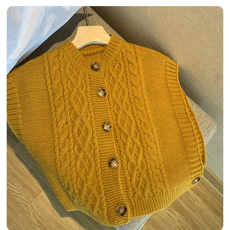 2024 한국 동대문 가을 새 패션 느슨한 대마 패턴 카디건 니트 조끼 여성 스웨터 조끼스토어 가기