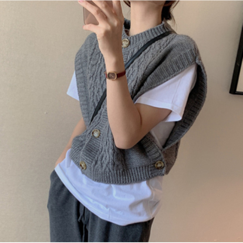 2024 한국 동대문 가을 새 패션 느슨한 대마 패턴 카디건 니트 조끼 여성 스웨터 조끼