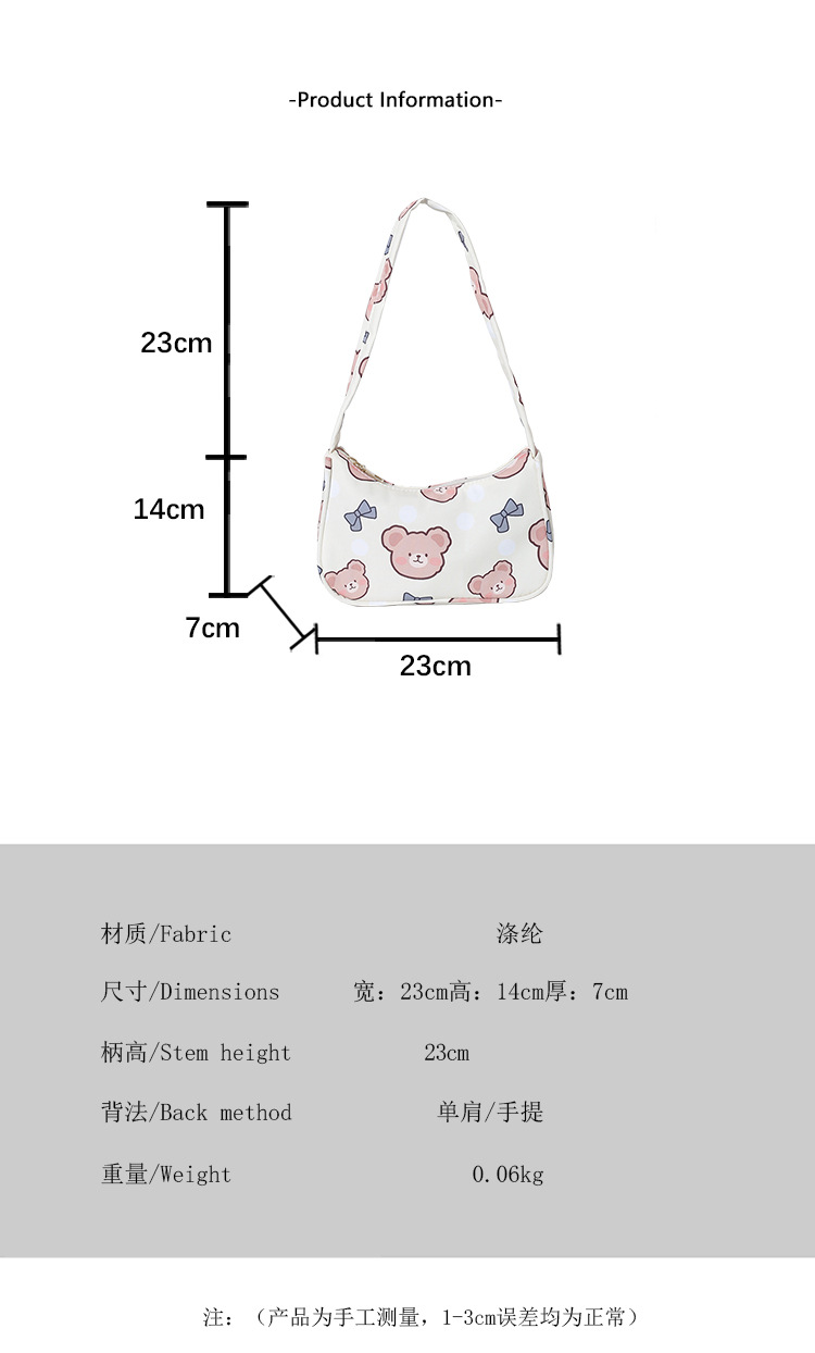 귀여운 곰 어깨 패션 여성 가방 2024 새로운 한국 패션 속옷 가방 하라주쿠 스타일 소녀 핸드백스토어 가기