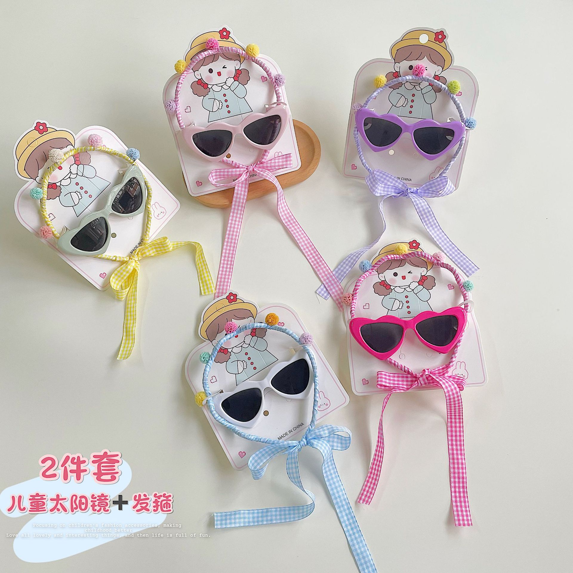 창의적인 어린이 선글라스 헤어 밴드 조합 세트 아기 안티-UV 햇빛 안경 서양 사랑 선글라스스토어 가기