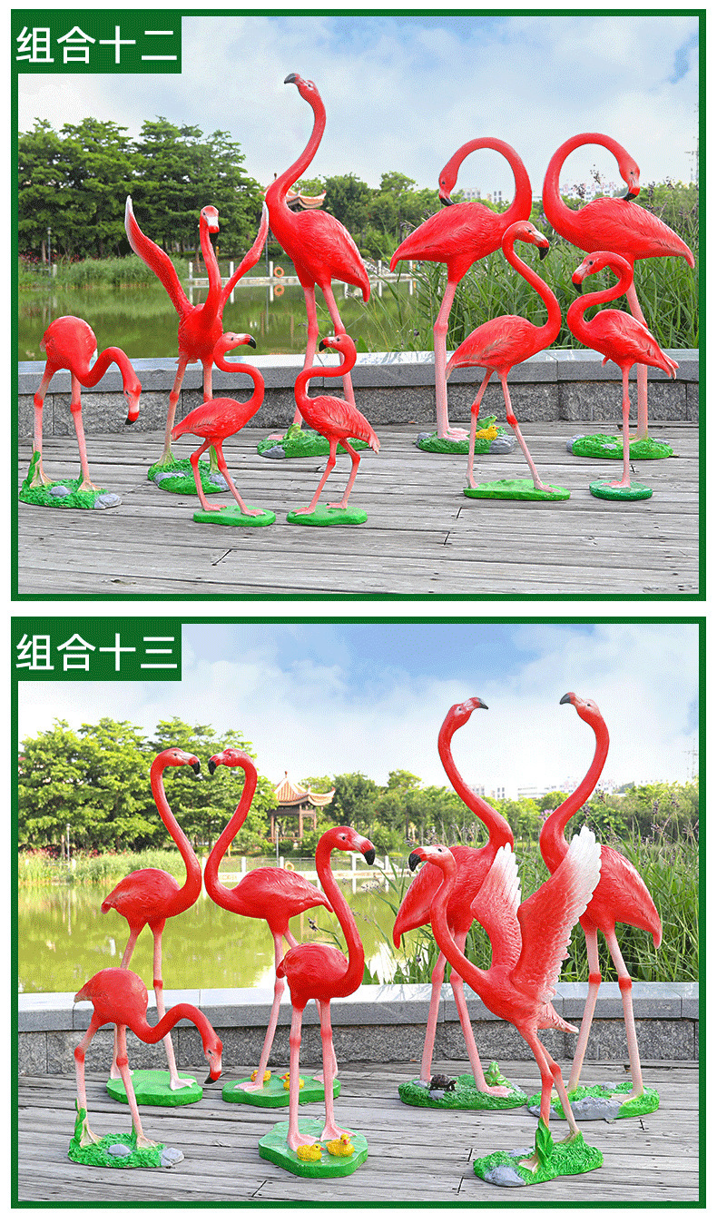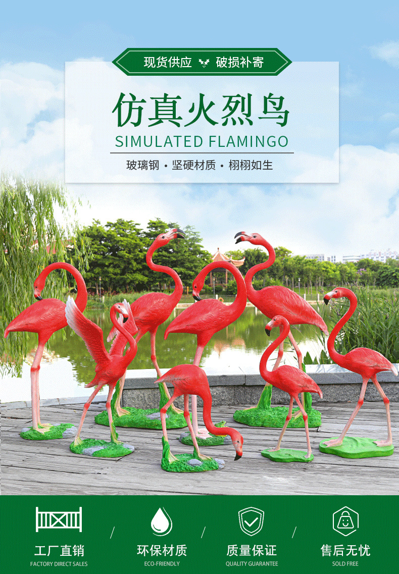 야외 유리 섬유 강화 플라스틱 시뮬레이션 플라밍고 조각 동물 장식품 정원 쇼핑몰 가게 웨딩 소품 창 장식