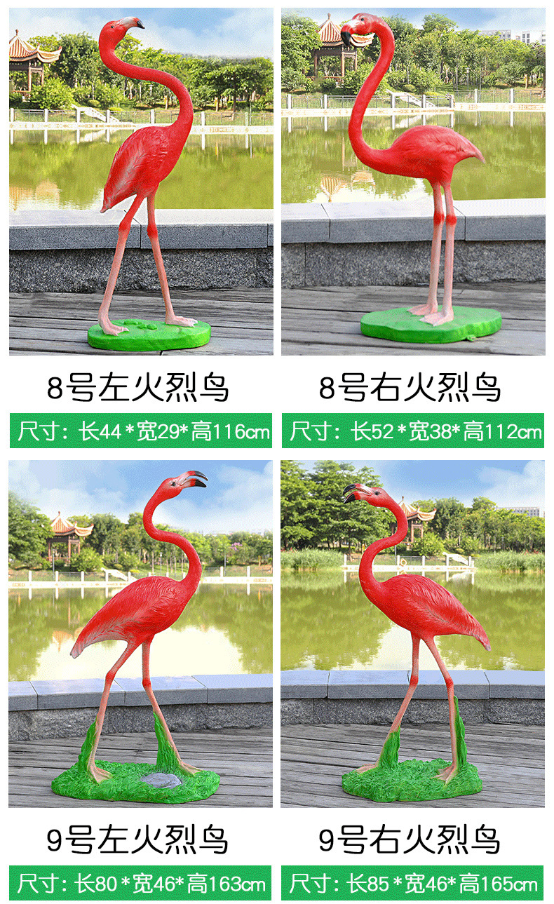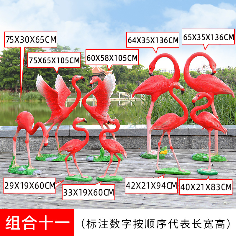 야외 유리 섬유 강화 플라스틱 시뮬레이션 플라밍고 조각 동물 장식품 정원 쇼핑몰 가게 웨딩 소품 창 장식스토어 가기