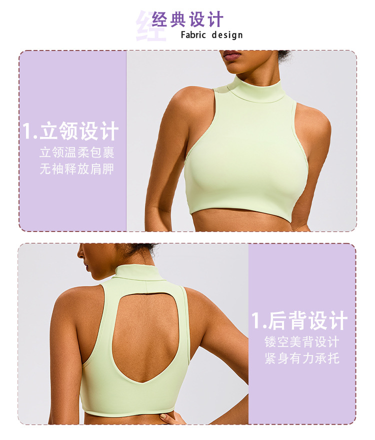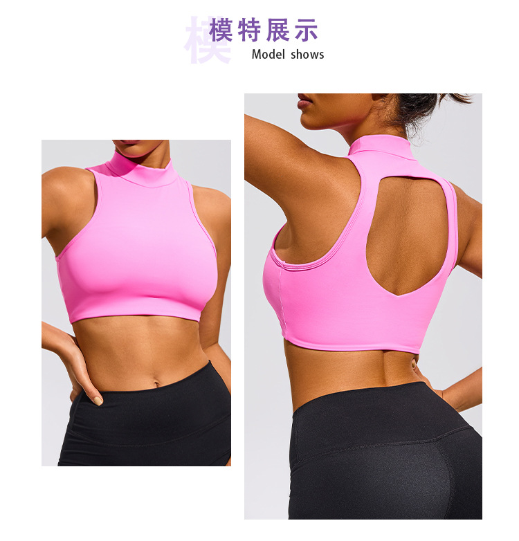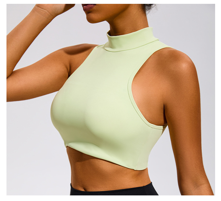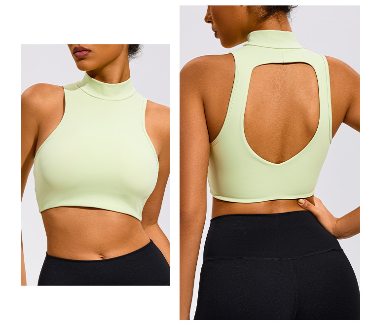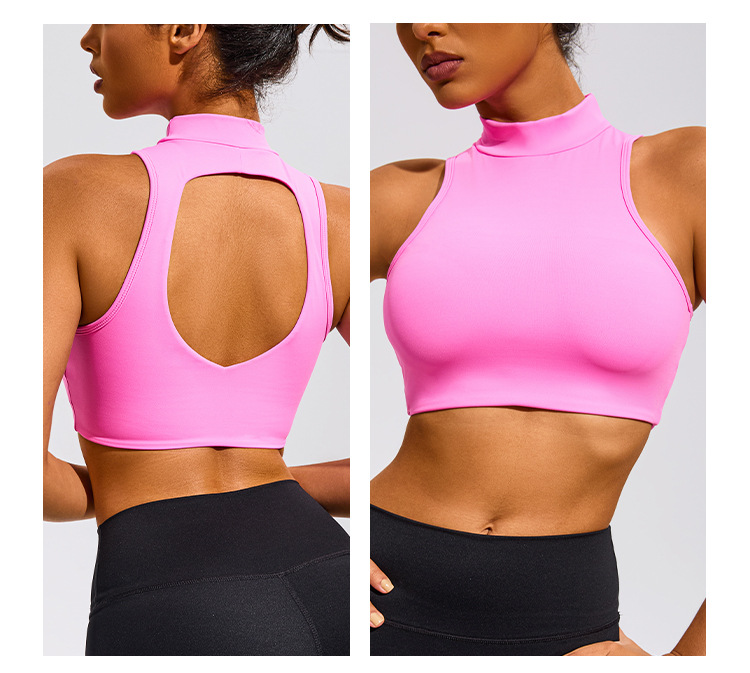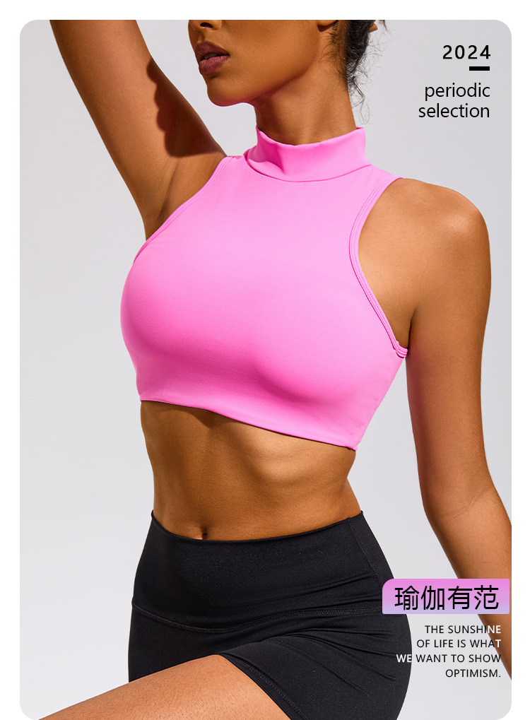 크로스보더 유럽 및 미국 스타일 요가복, 고급스러운 디자인의 하이넥, 아름다운 등라인, 필라테스, 피트니스, 러닝, 스포츠용 여성 요가탑
