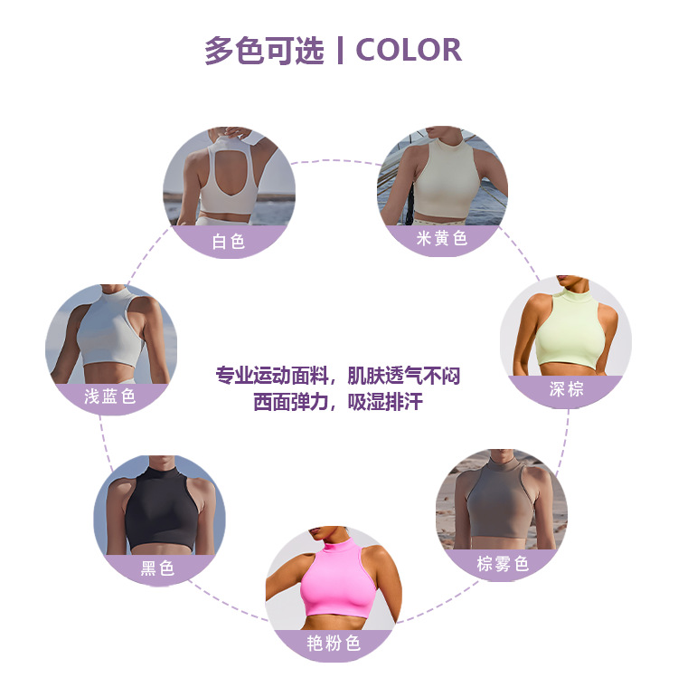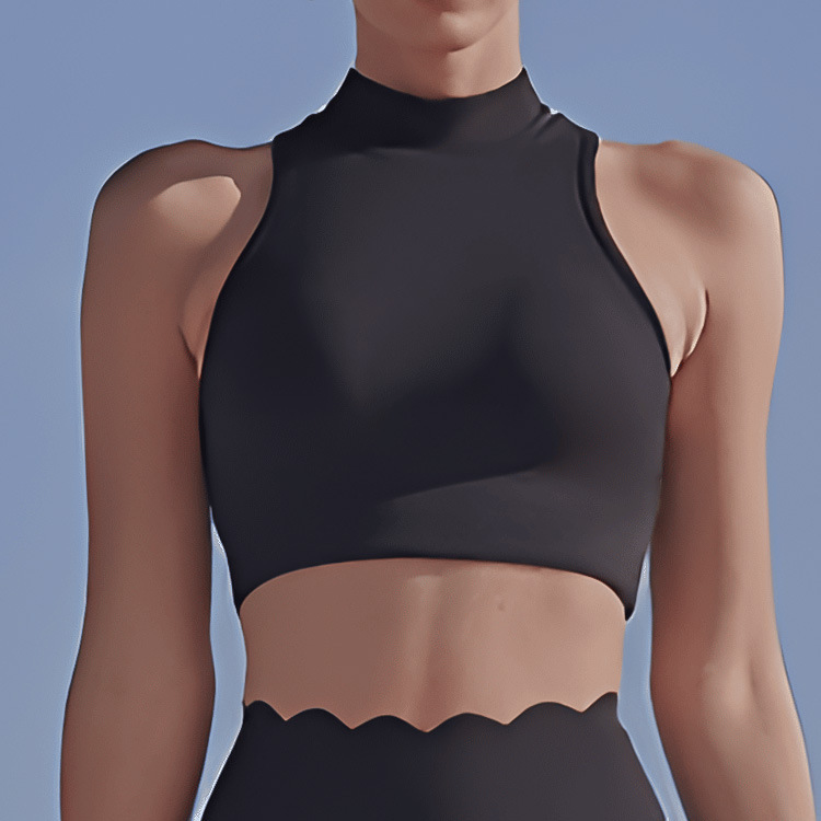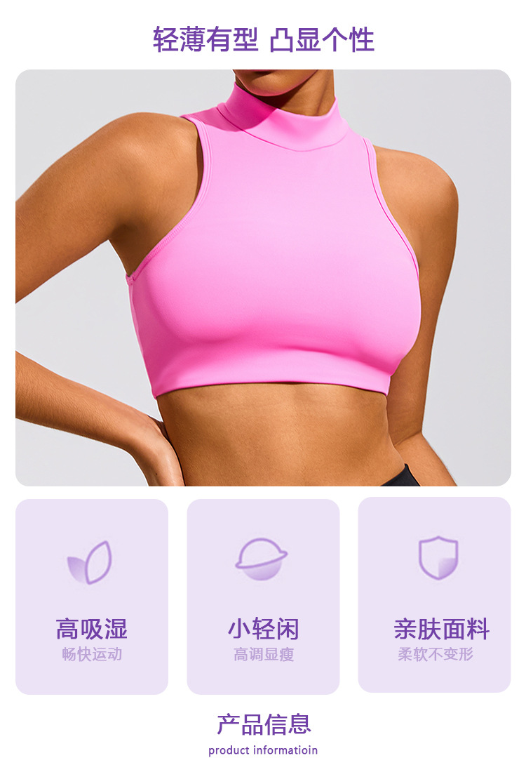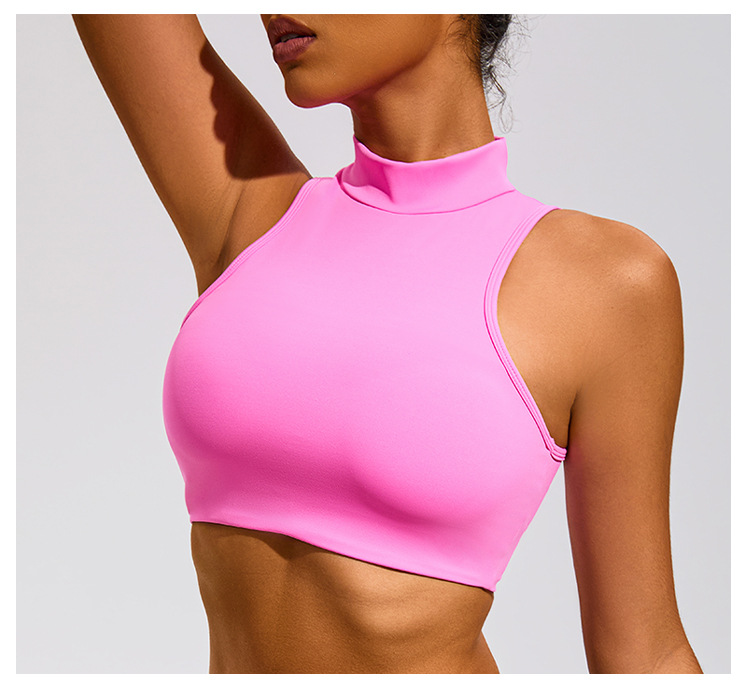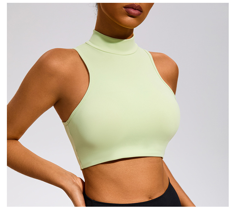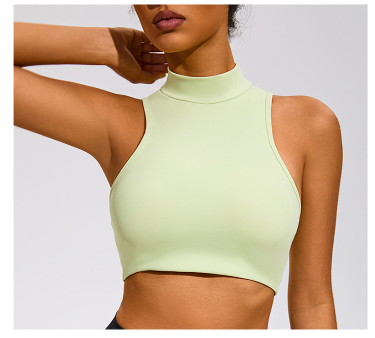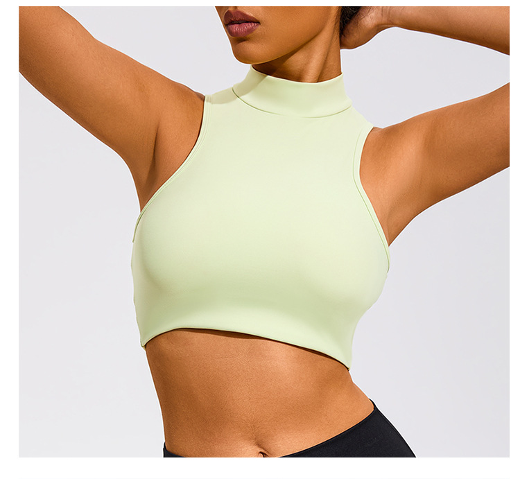 크로스보더 유럽 및 미국 스타일 요가복, 고급스러운 디자인의 하이넥, 아름다운 등라인, 필라테스, 피트니스, 러닝, 스포츠용 여성 요가탑