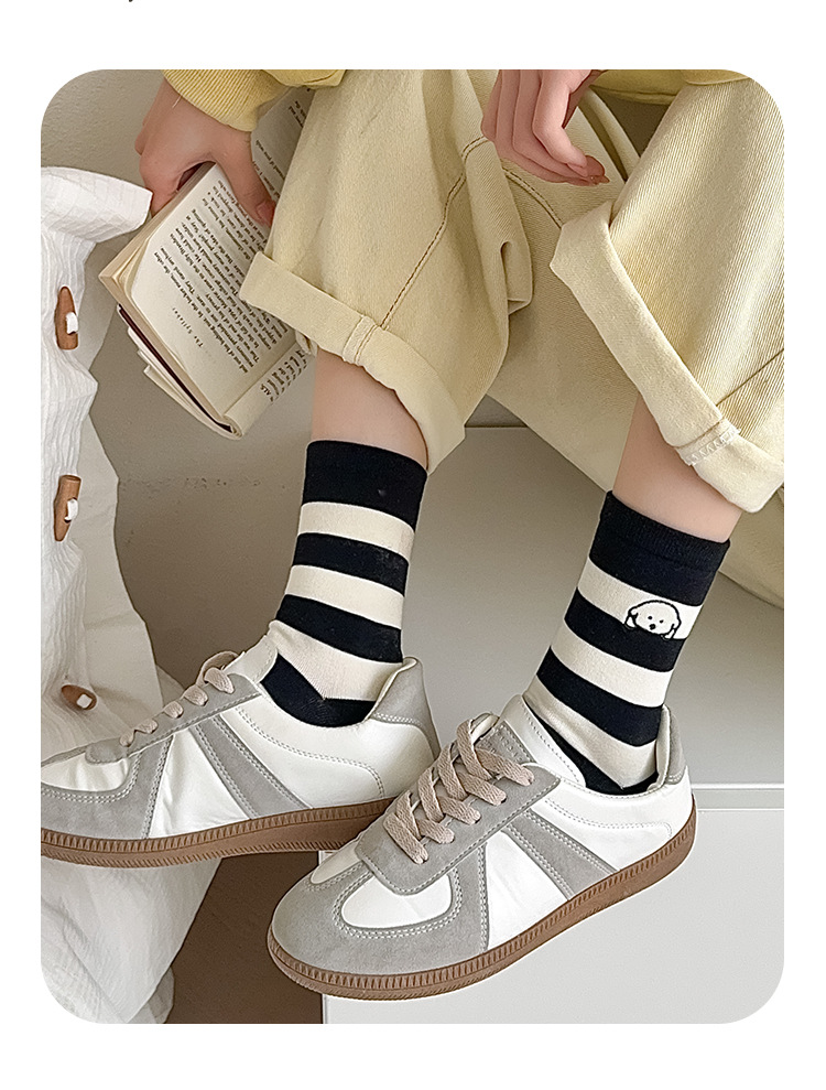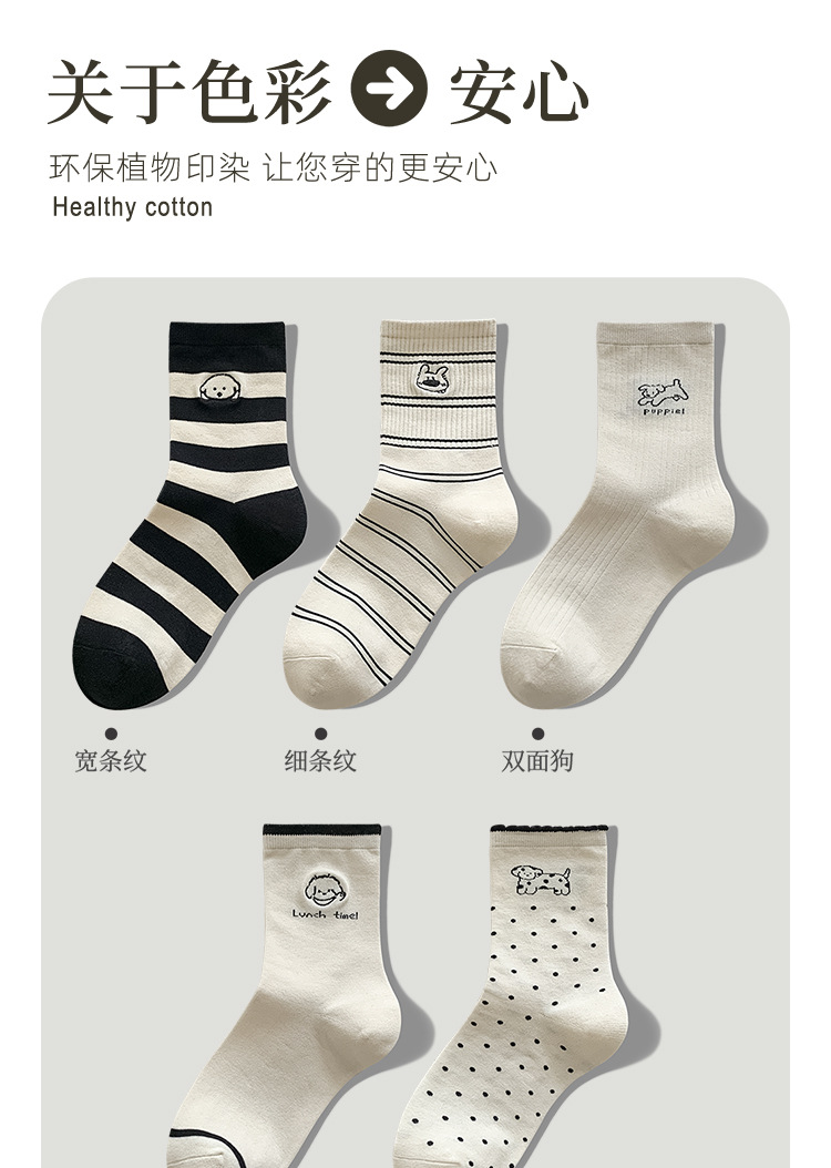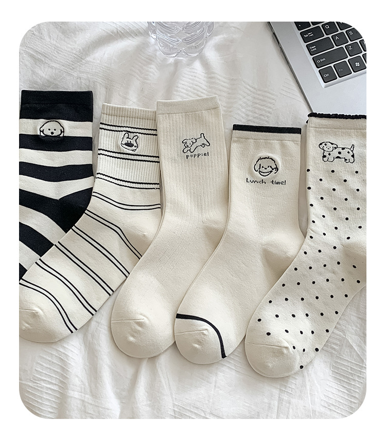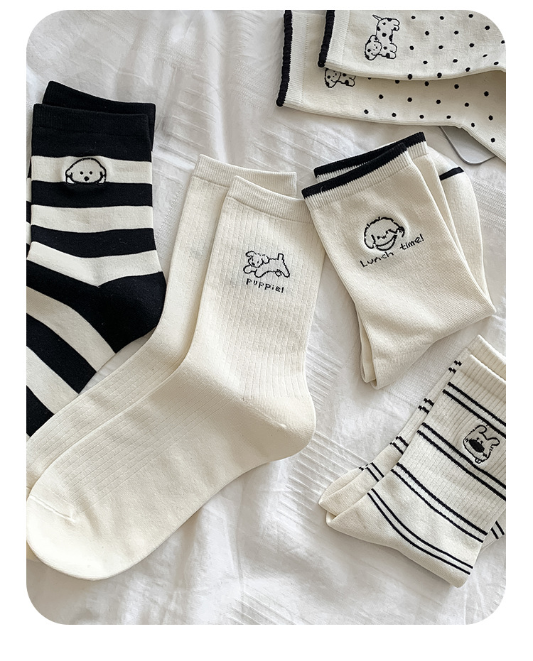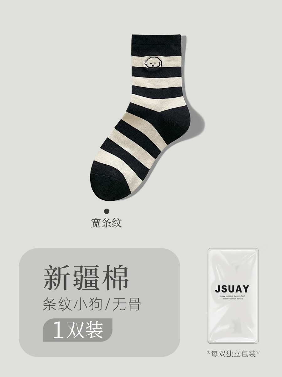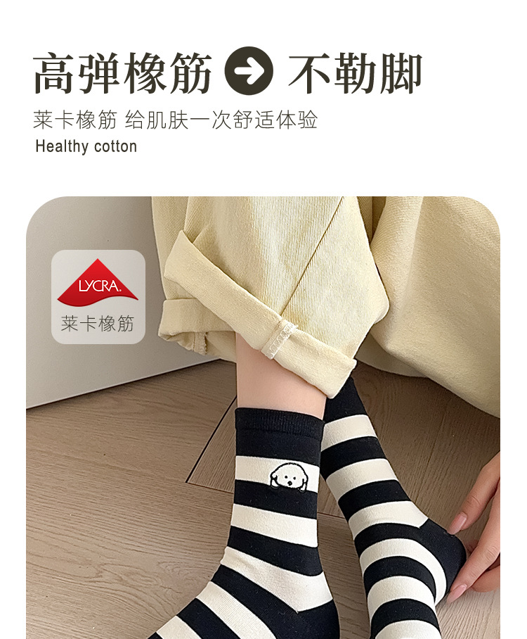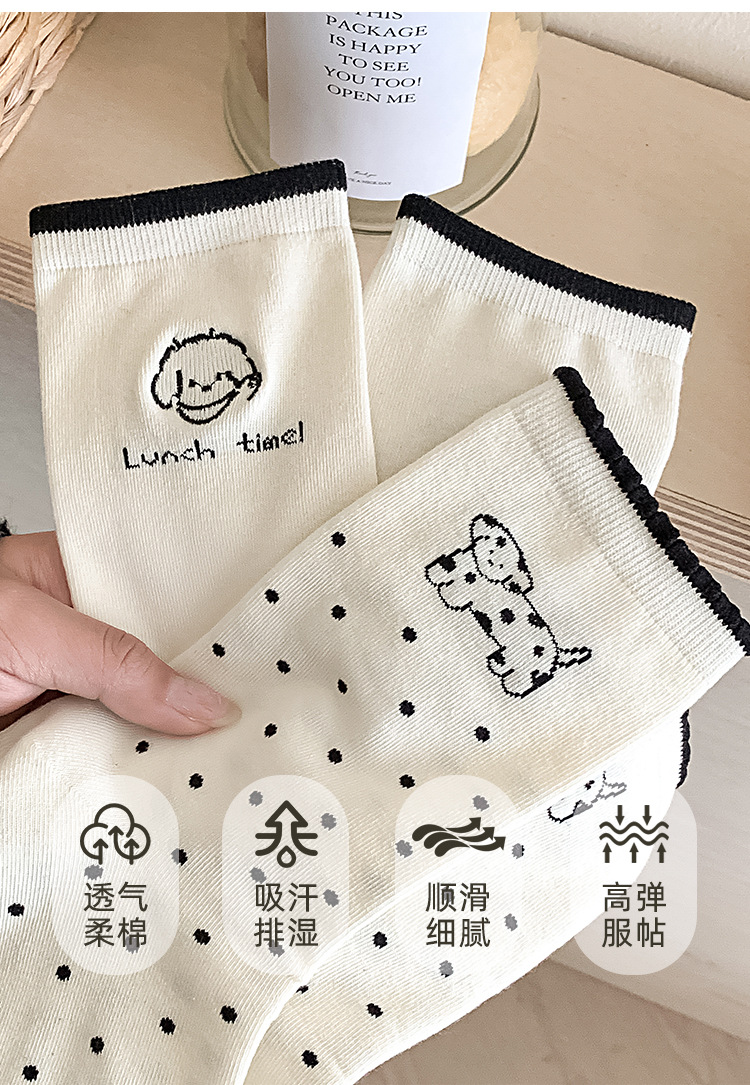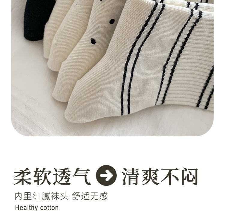 양말 숙녀 여름날 방취제 땀 흡수성 뼈없는 양말 통기성 흑백 줄무늬 귀여운 자수 중간 튜브 주지 면 양말