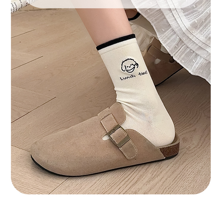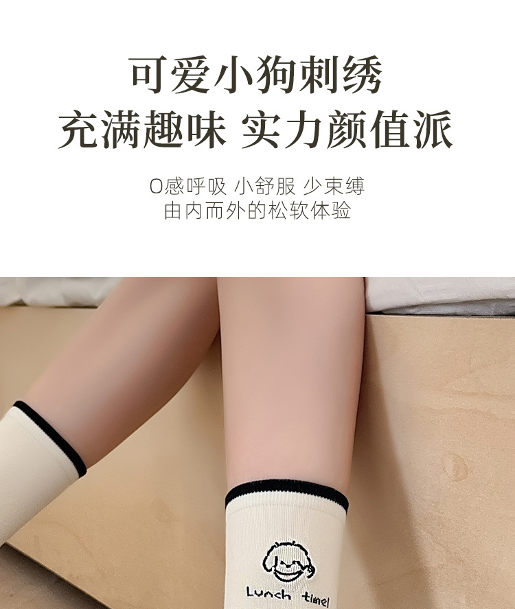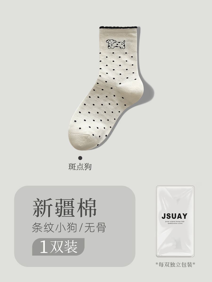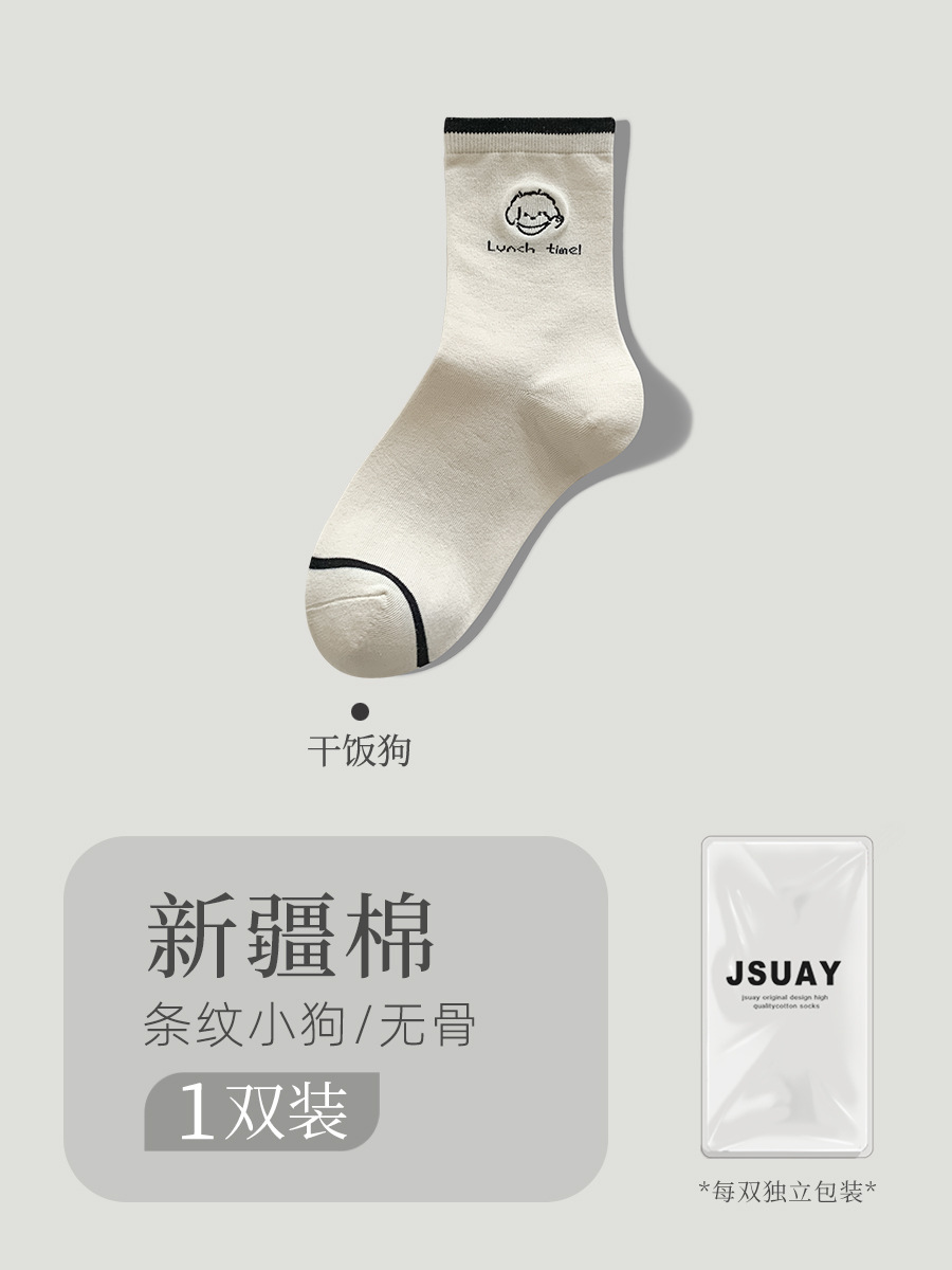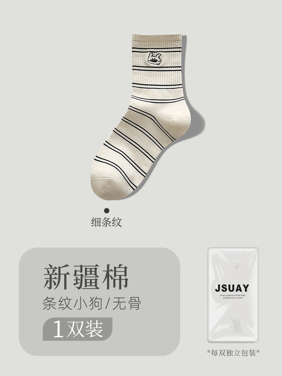 양말 숙녀 여름날 방취제 땀 흡수성 뼈없는 양말 통기성 흑백 줄무늬 귀여운 자수 중간 튜브 주지 면 양말스토어 가기