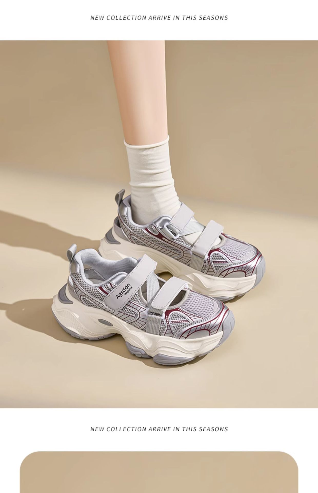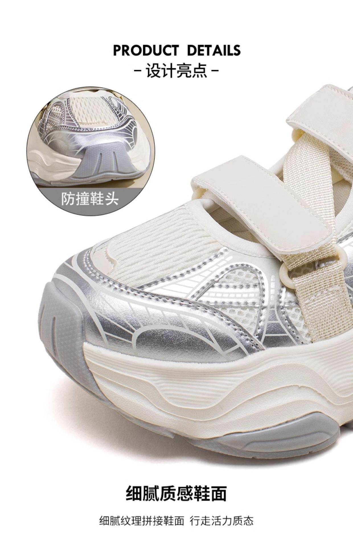 여성을위한 Augushiden Baotou 샌들 2025 새로운 여름 캐주얼 스포츠 두꺼운 밑창 중공 벨크로 아빠 샌들