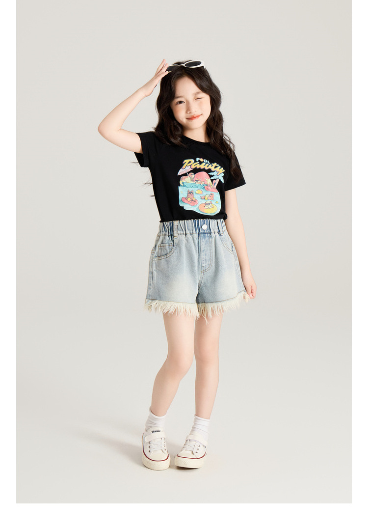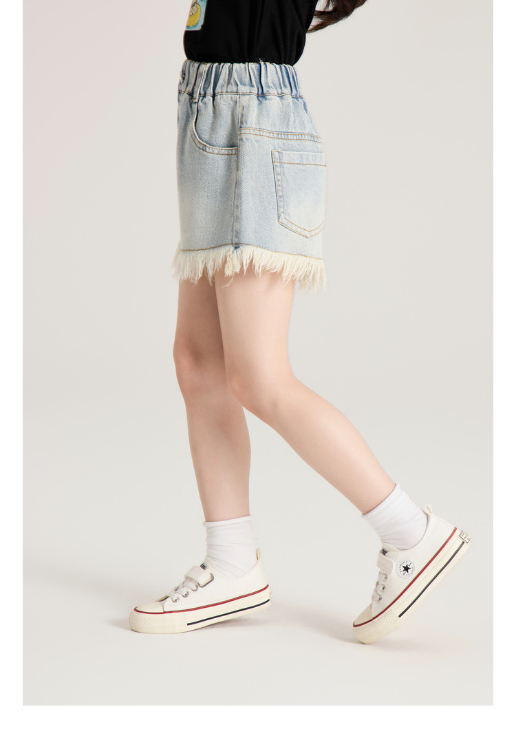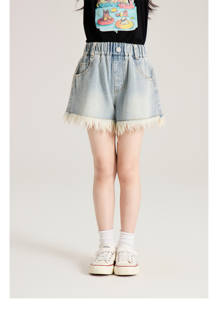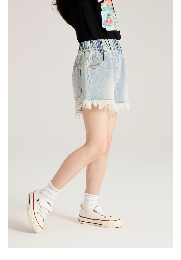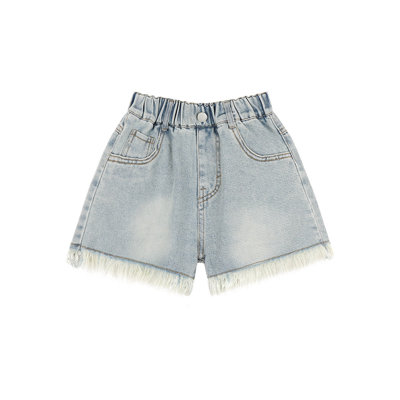Amybaby Girl's Pants 2024 새로운 여름 한국 스타일 느슨한 올 매치 패션 술 데님 반바지