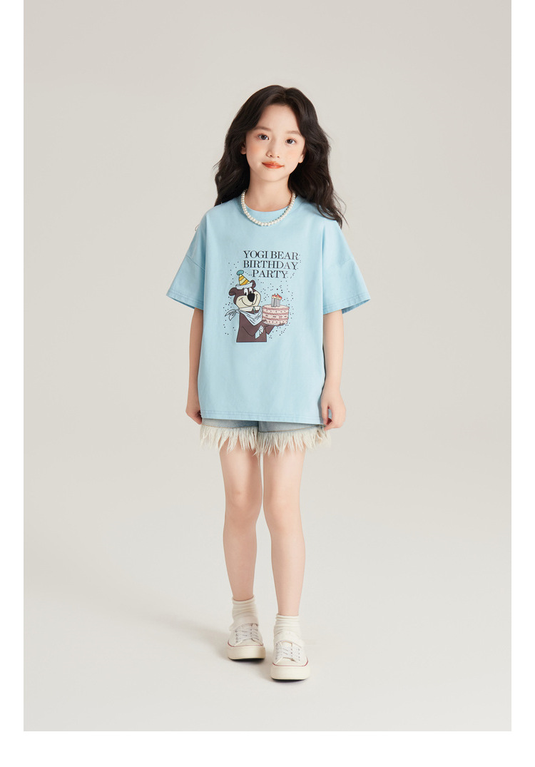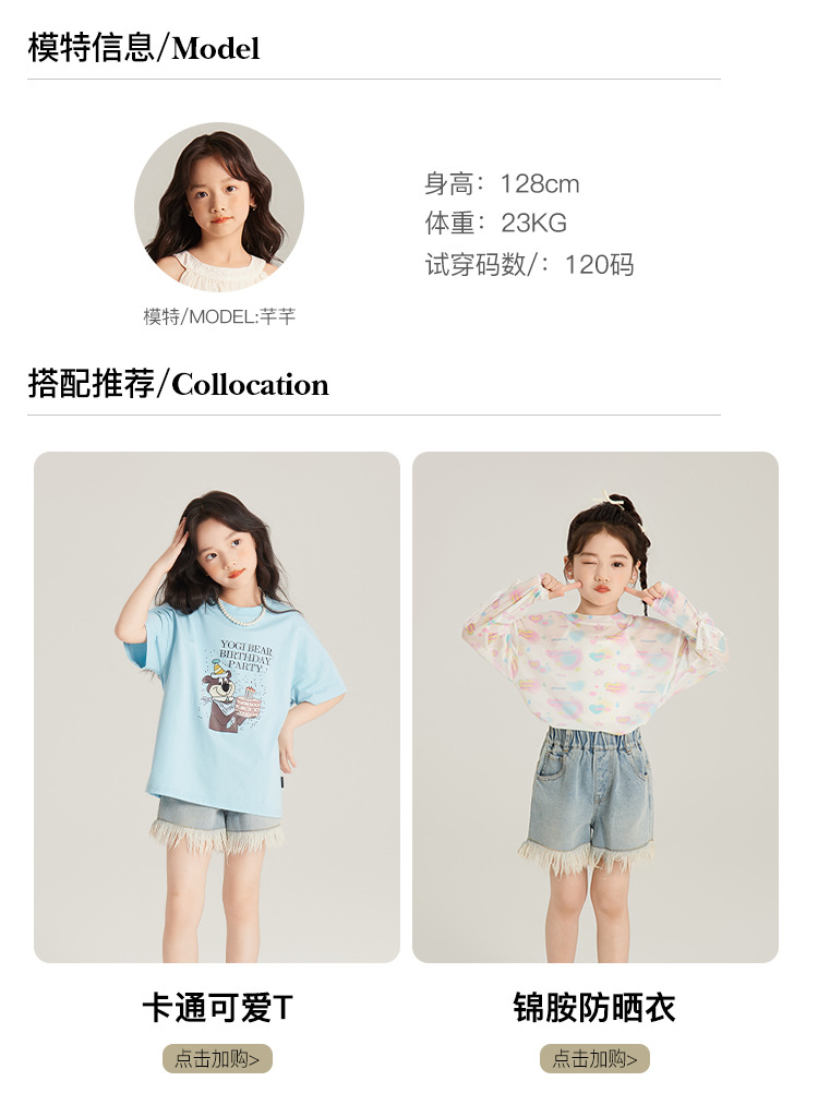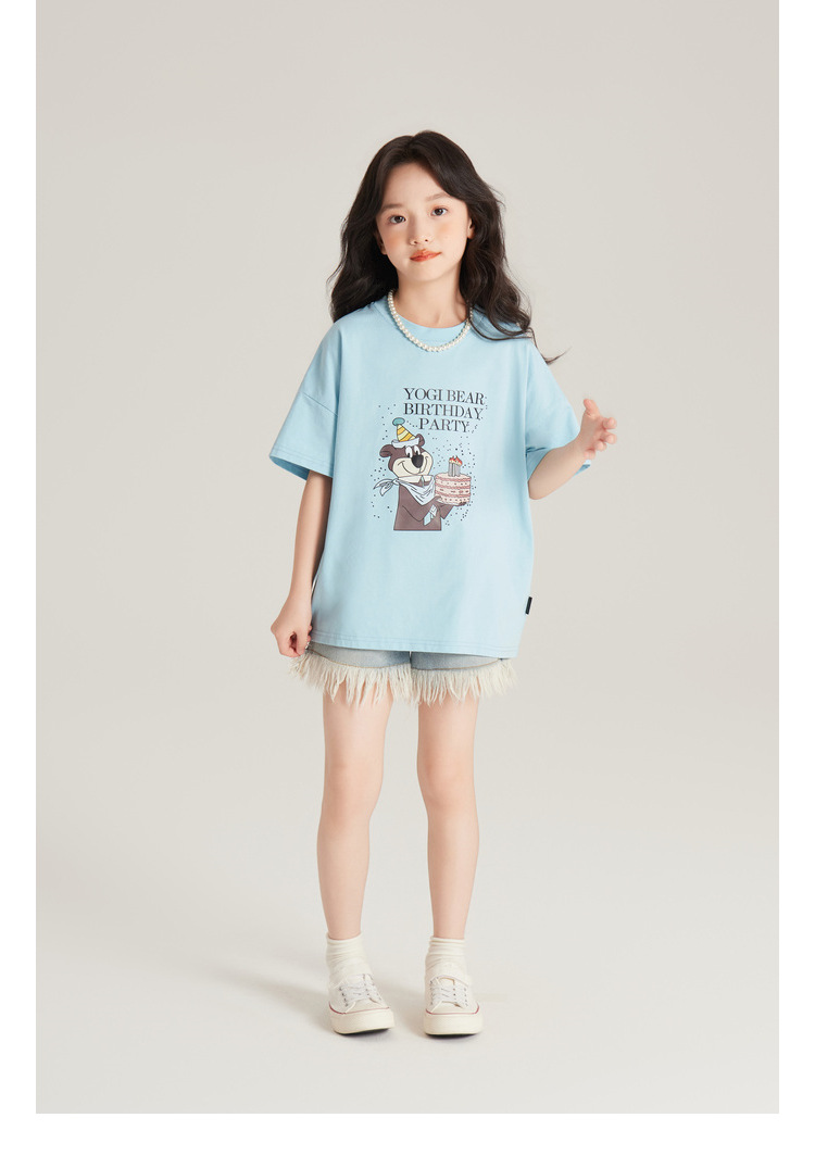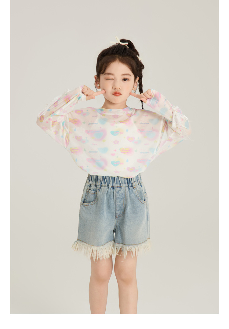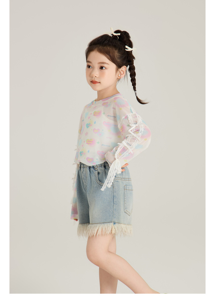 Amybaby Girl's Pants 2024 새로운 여름 한국 스타일 느슨한 올 매치 패션 술 데님 반바지