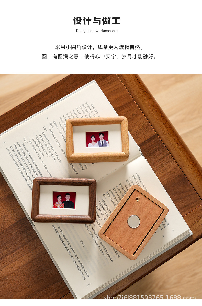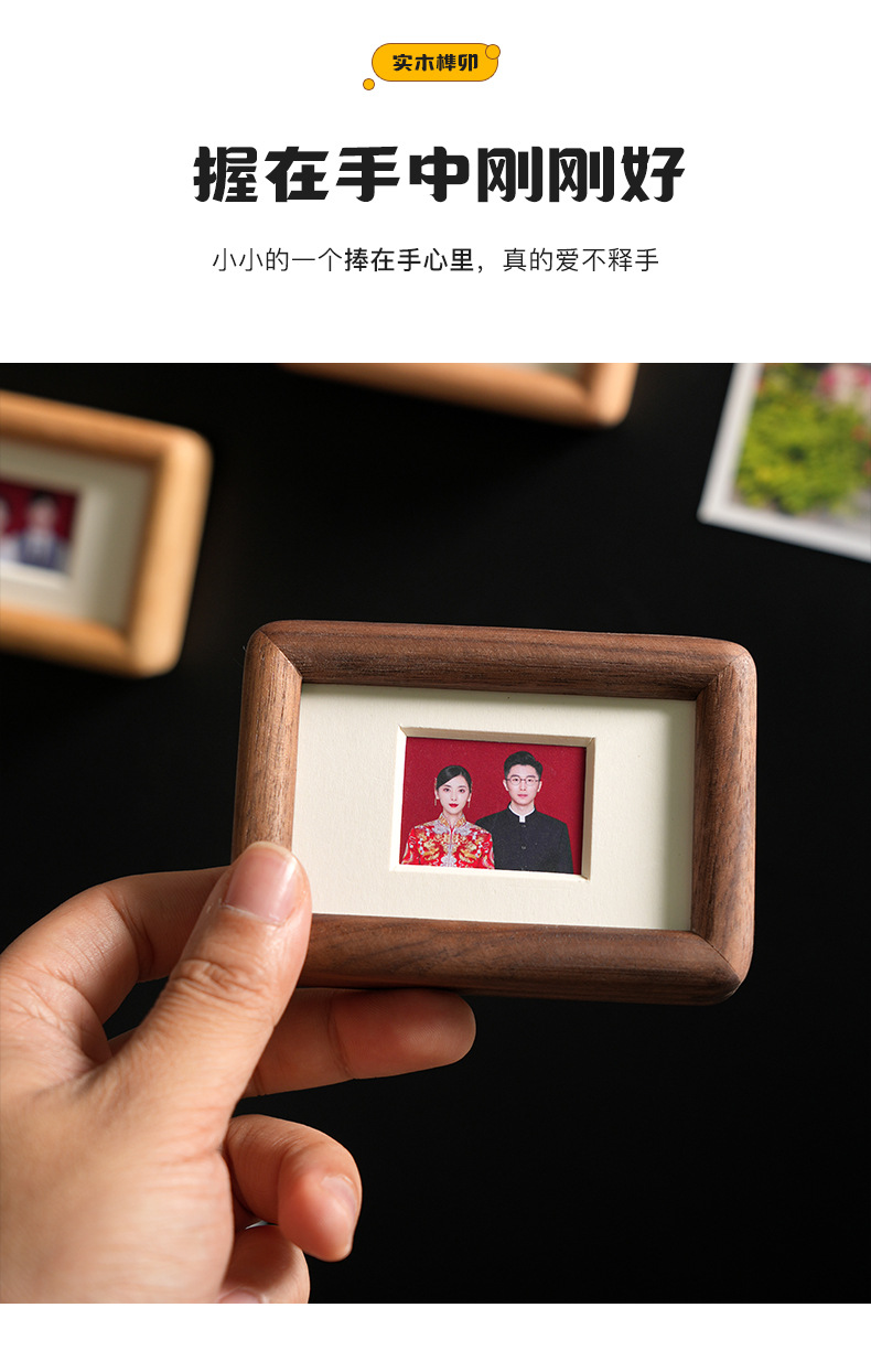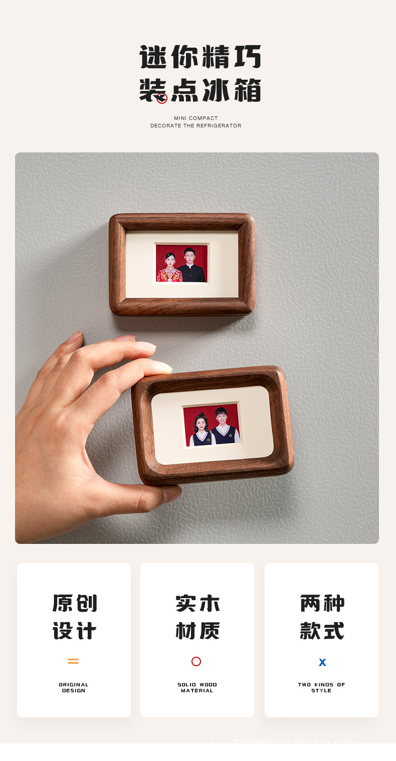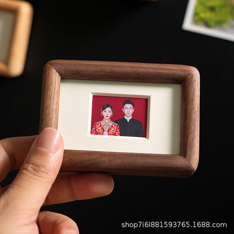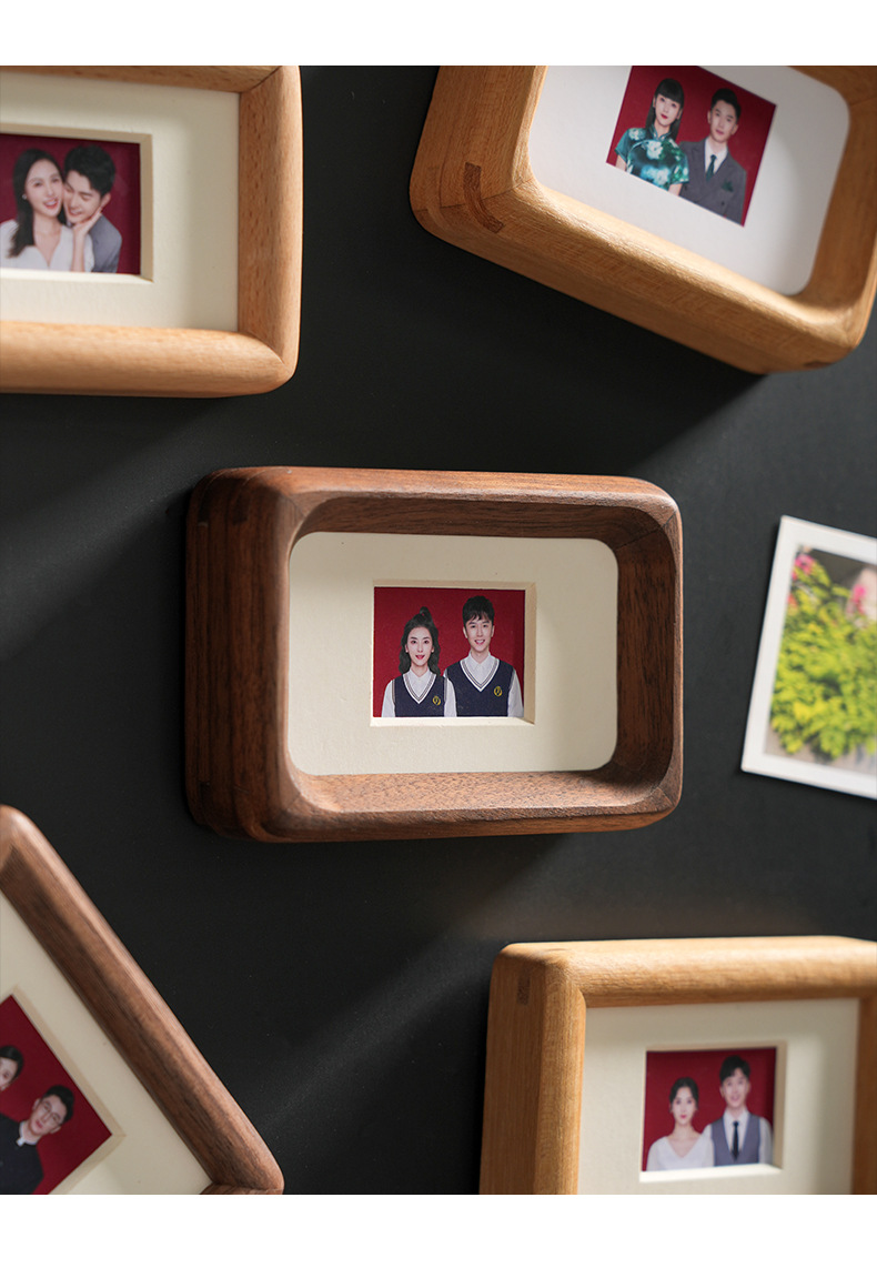 블랙 호두 마그네틱 포토 프레임 장식품 결혼 등록 증명서 사진 냉장고 자석 디스플레이 미니 카드