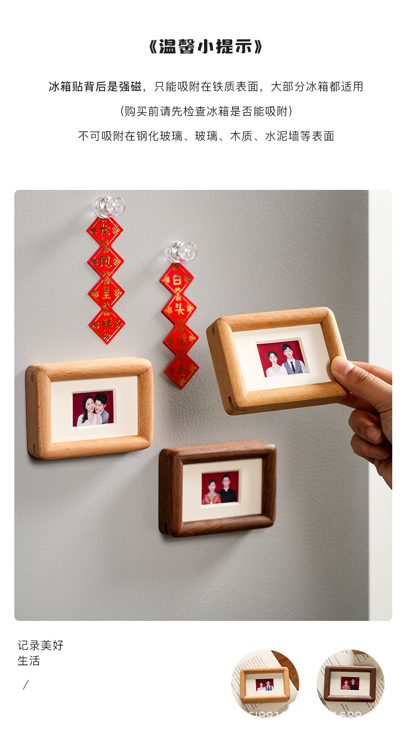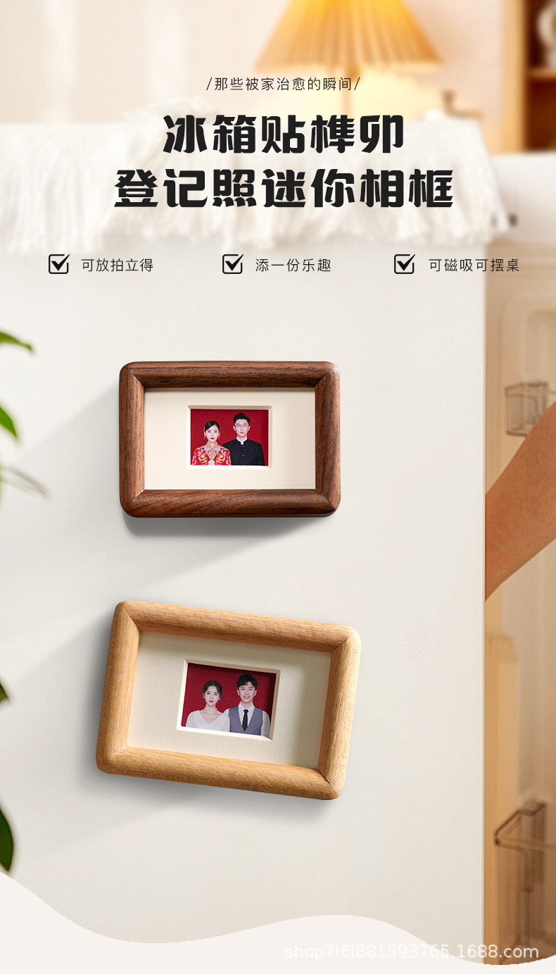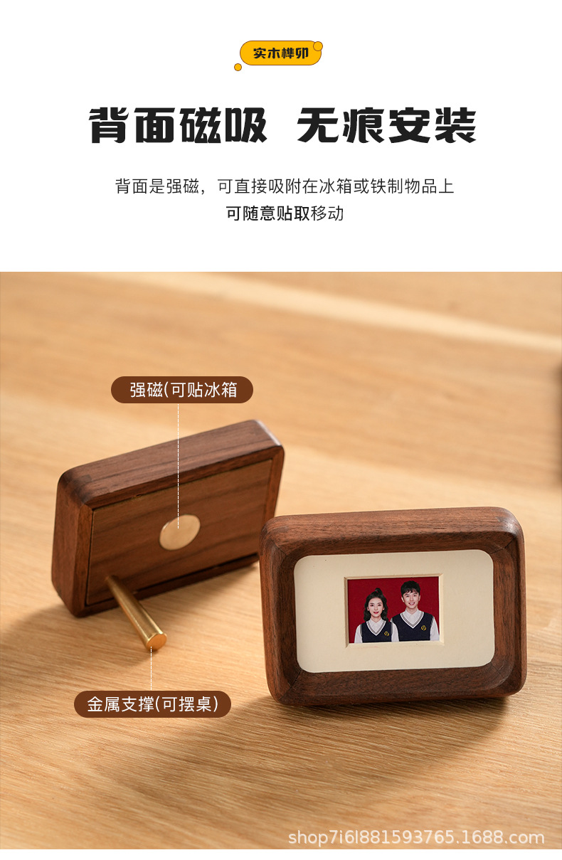 블랙 호두 마그네틱 포토 프레임 장식품 결혼 등록 증명서 사진 냉장고 자석 디스플레이 미니 카드스토어 가기