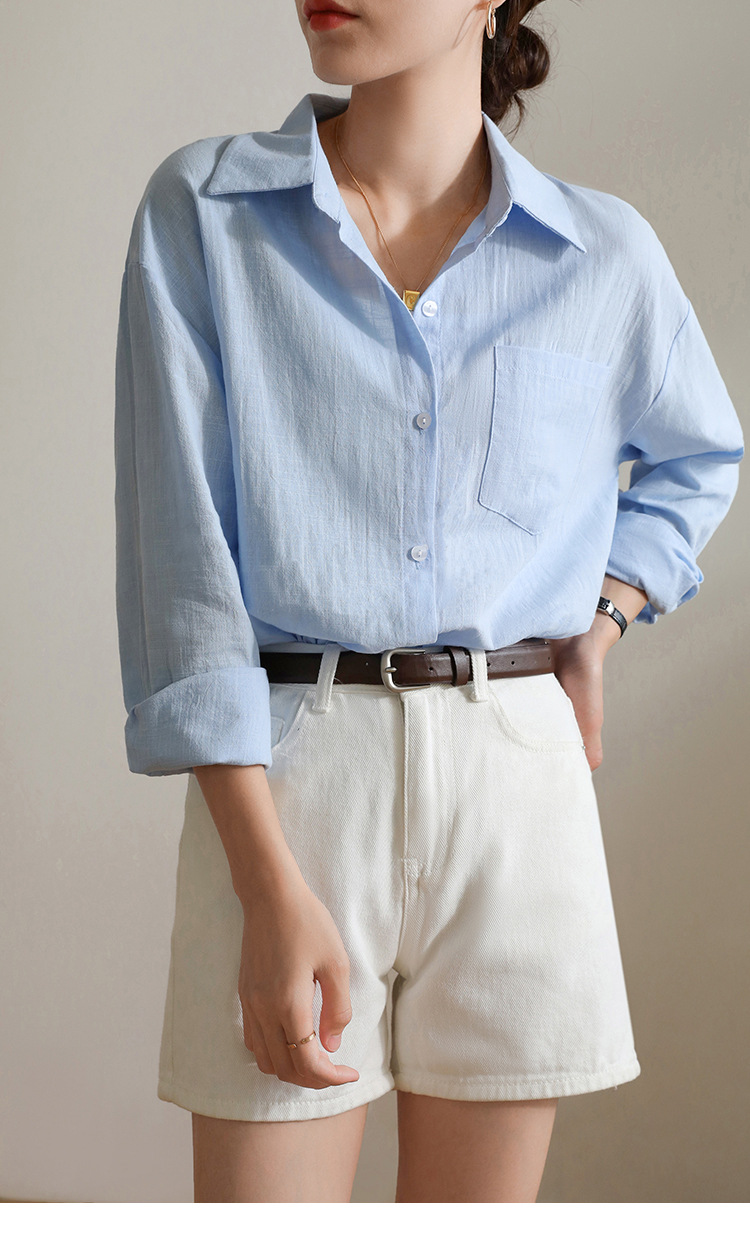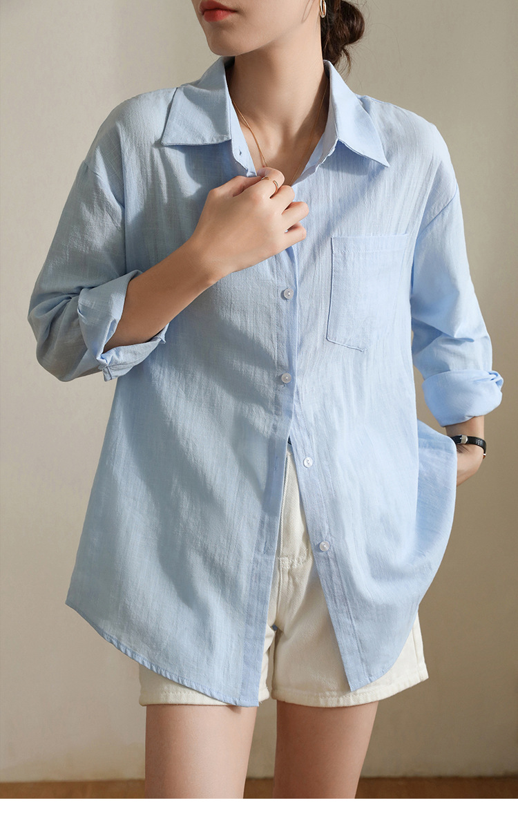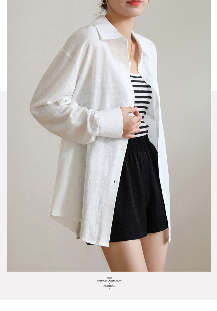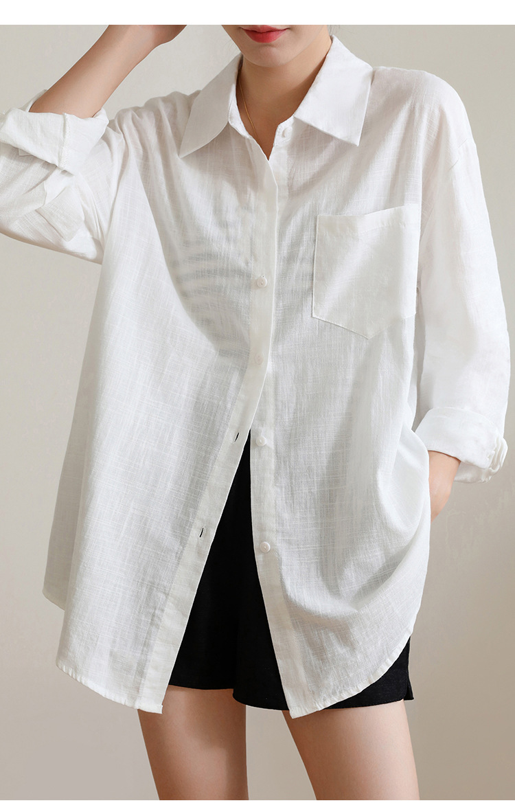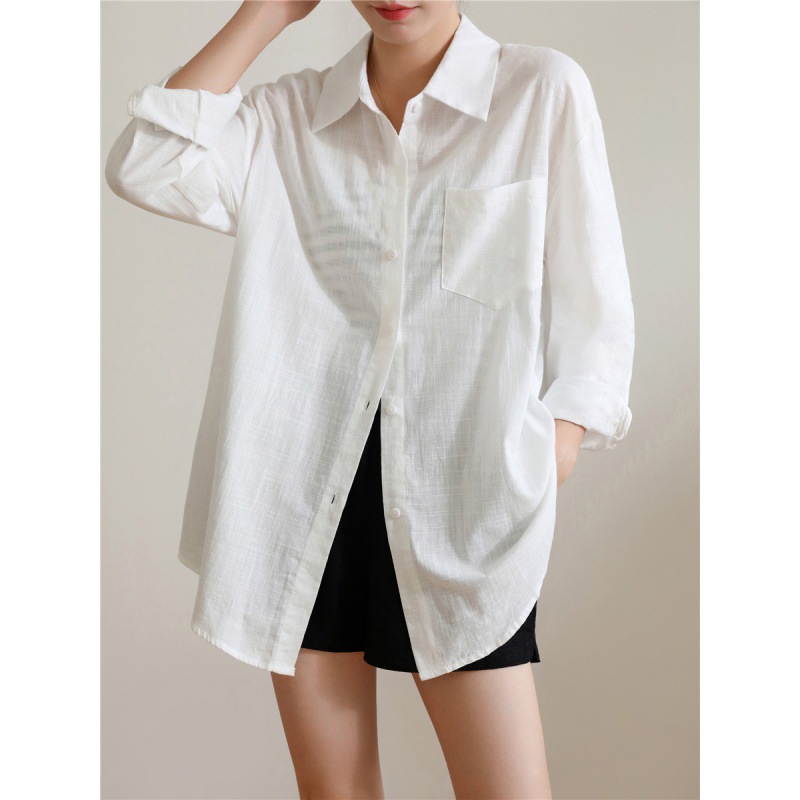 진짜 샷 2024 고급 린넨 셔츠 여성용 선 스크린 카디건 여름 얇은 느슨한 프랑스면과 린넨 화이트 셔츠