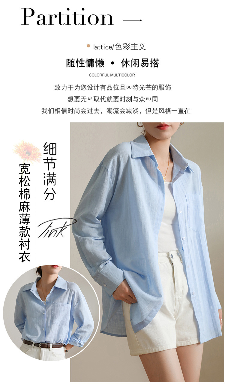 진짜 샷 2024 고급 린넨 셔츠 여성용 선 스크린 카디건 여름 얇은 느슨한 프랑스면과 린넨 화이트 셔츠스토어 가기