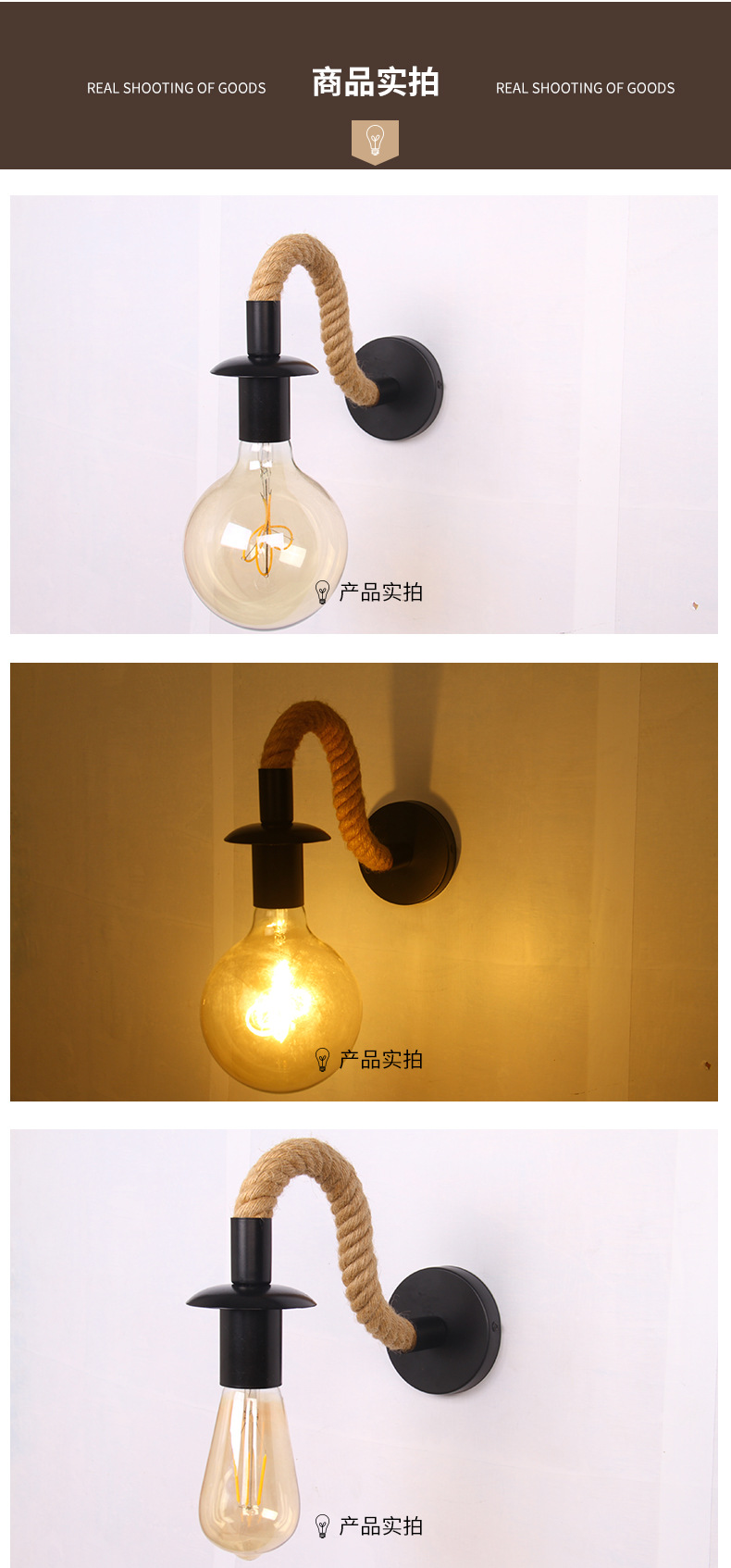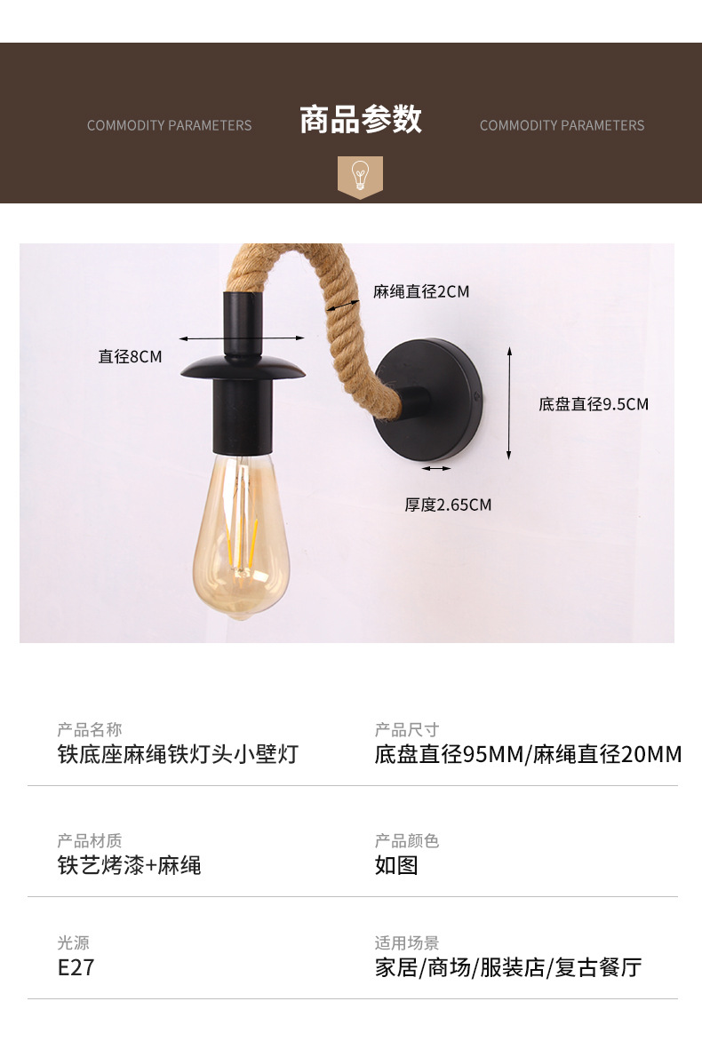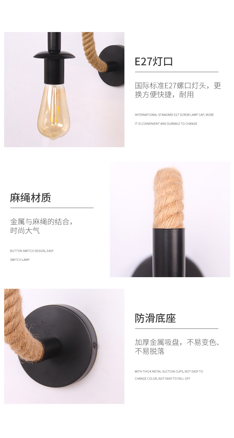 레트로 대마 로프 LED 실내 및 실외 벽 램프 실내 빌라 정원 램프 주거용 테라스 램프 외부 벽 램프 제조 업체 배치스토어 가기