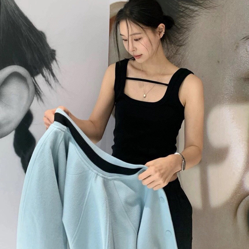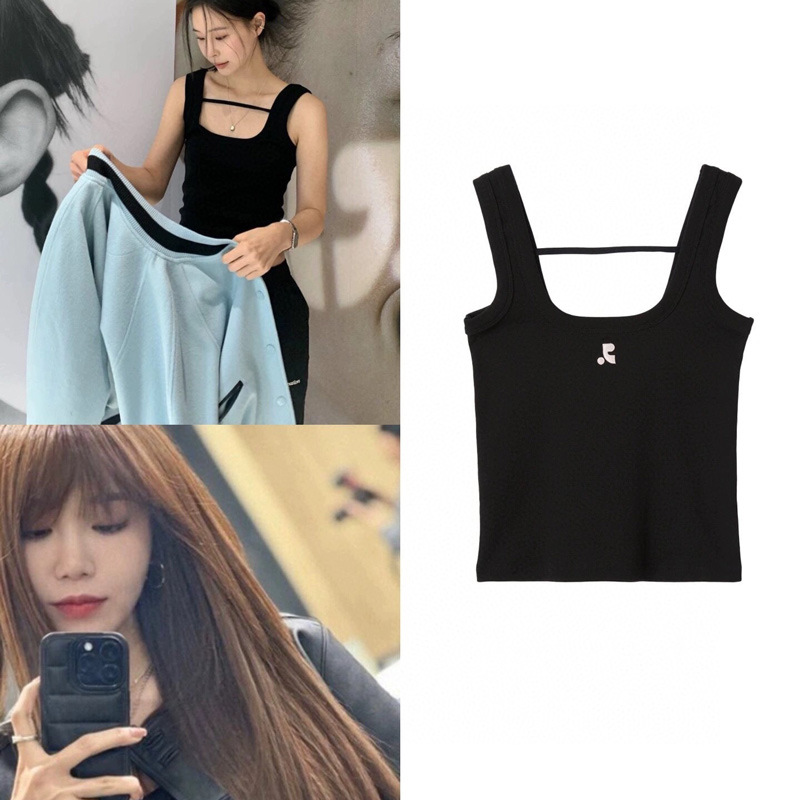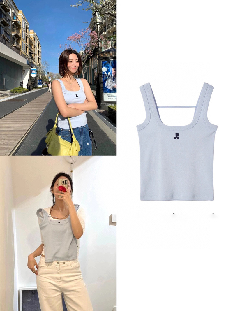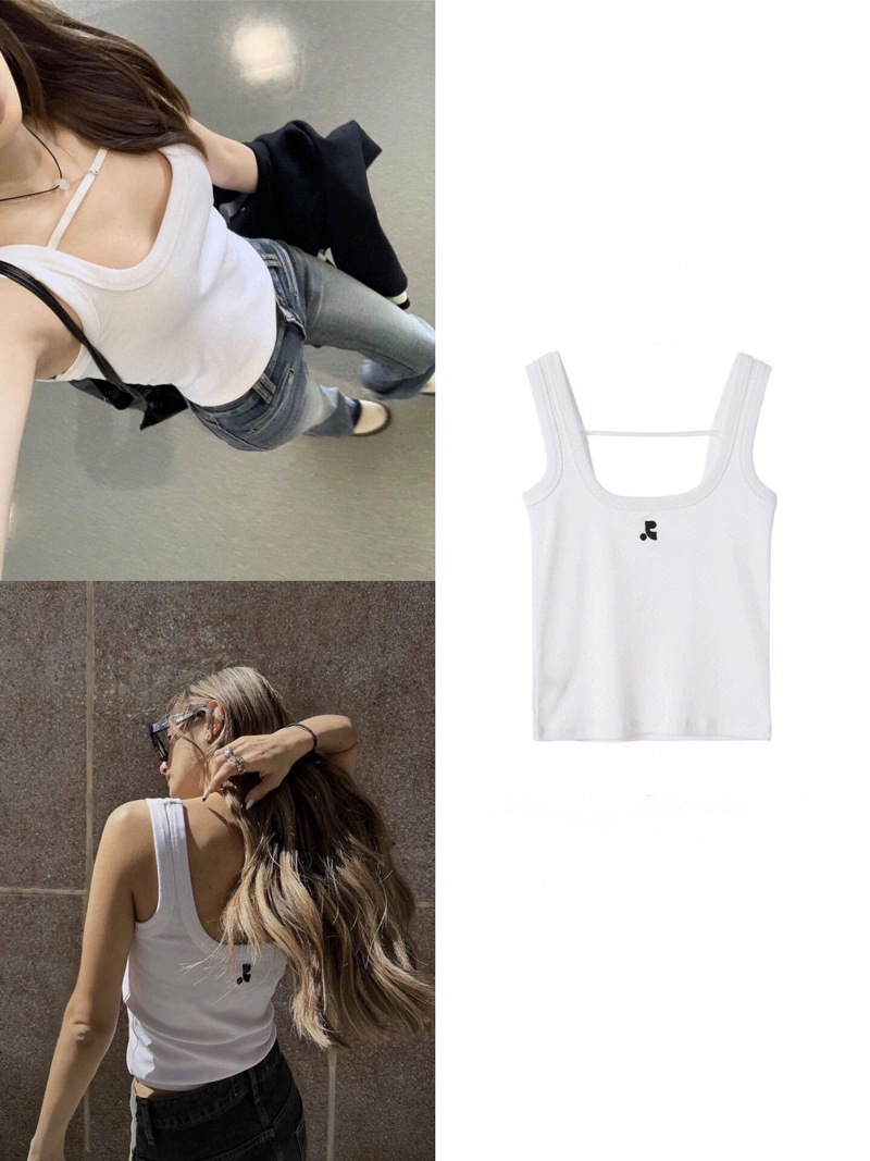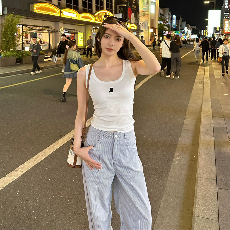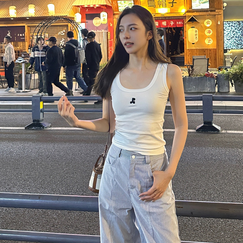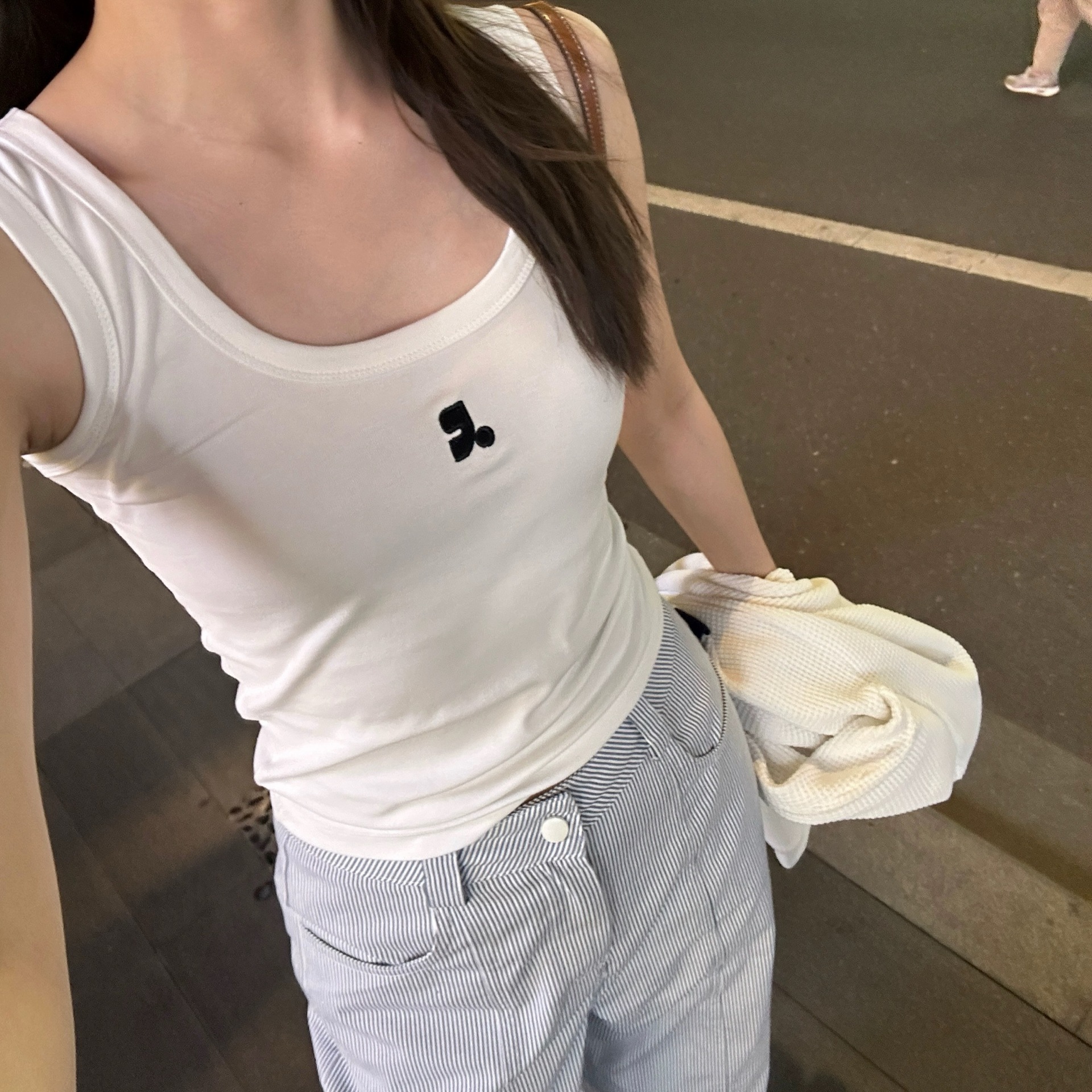 25 새로운 여름 스타일 투웨어 디자인 슬림 핫 소녀 싱글웨어 조끼 수 놓은 멜빵 여성을위한 다목적 탄성 바닥 조끼