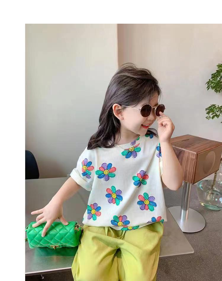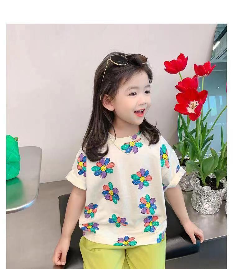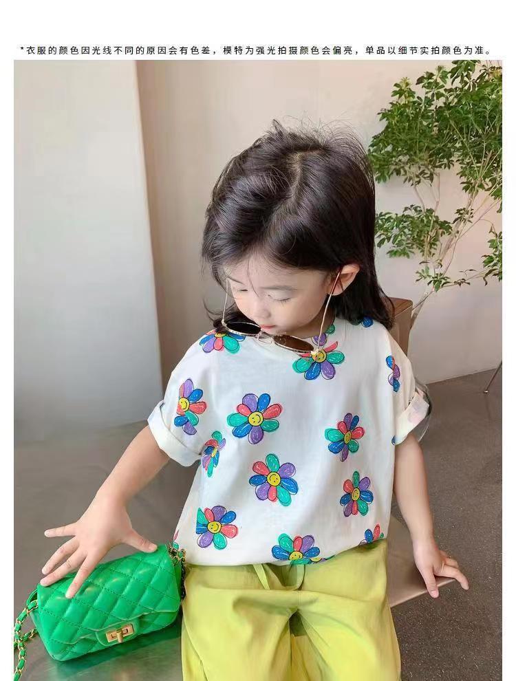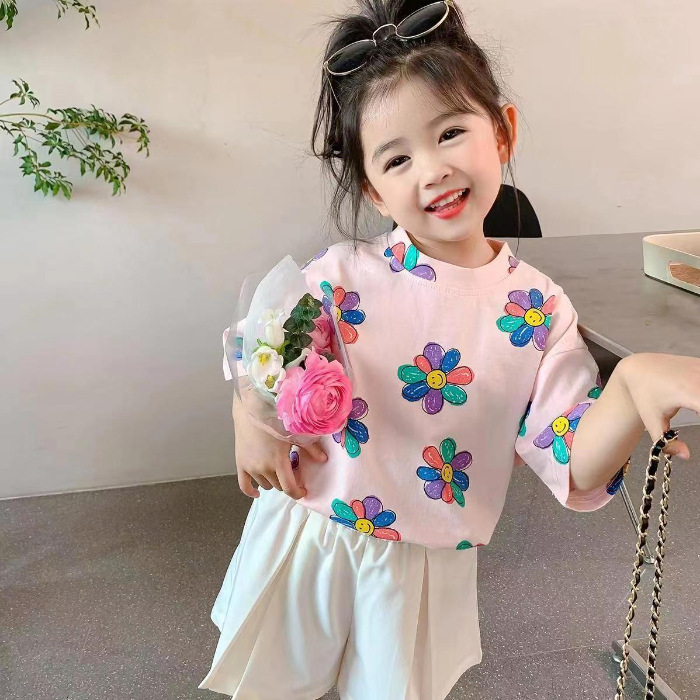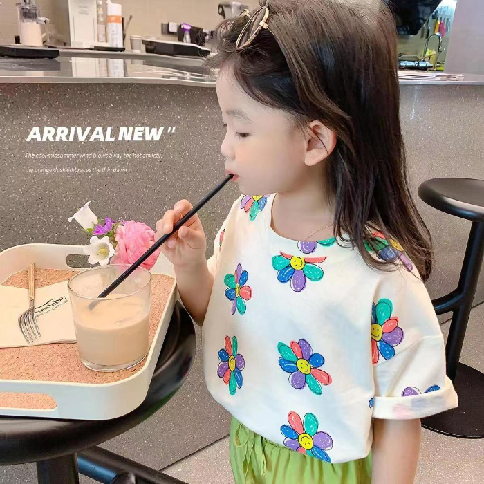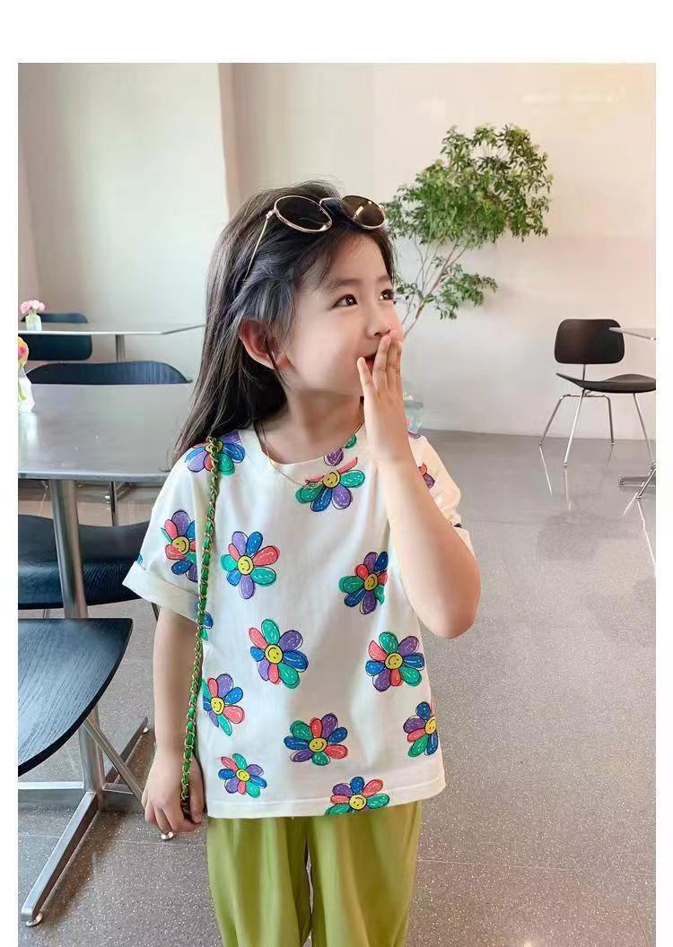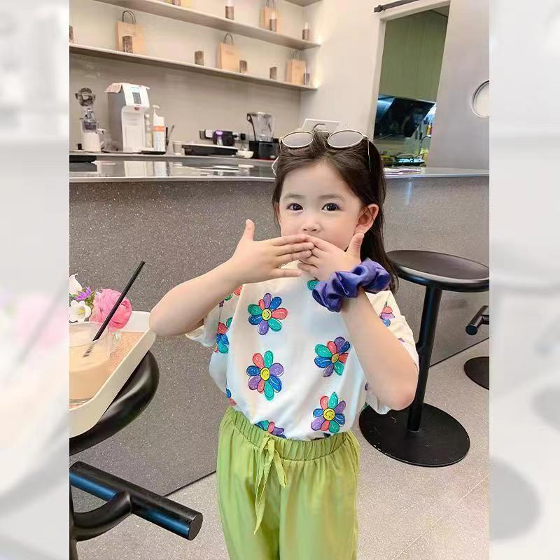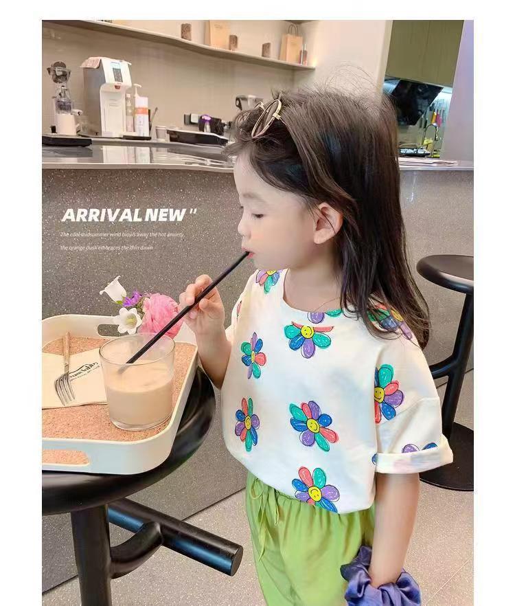 여자 여름 옷 새로운 아동복 한국 스타일 반팔 티셔츠 중소 어린이 캐주얼 탑 아기 바닥 셔츠스토어 가기