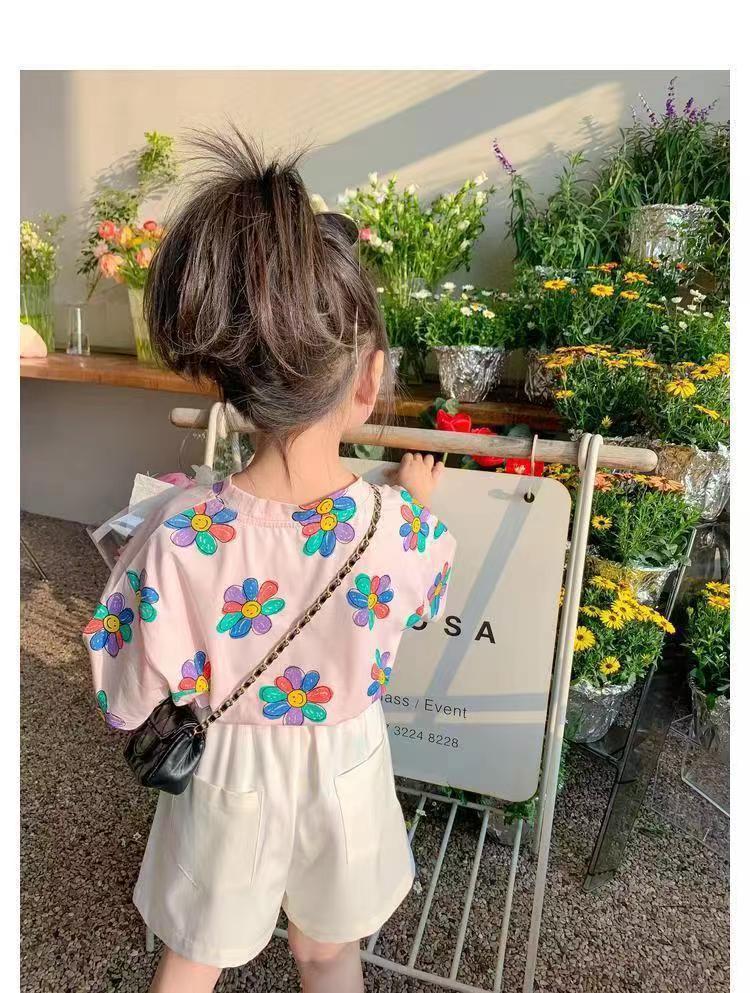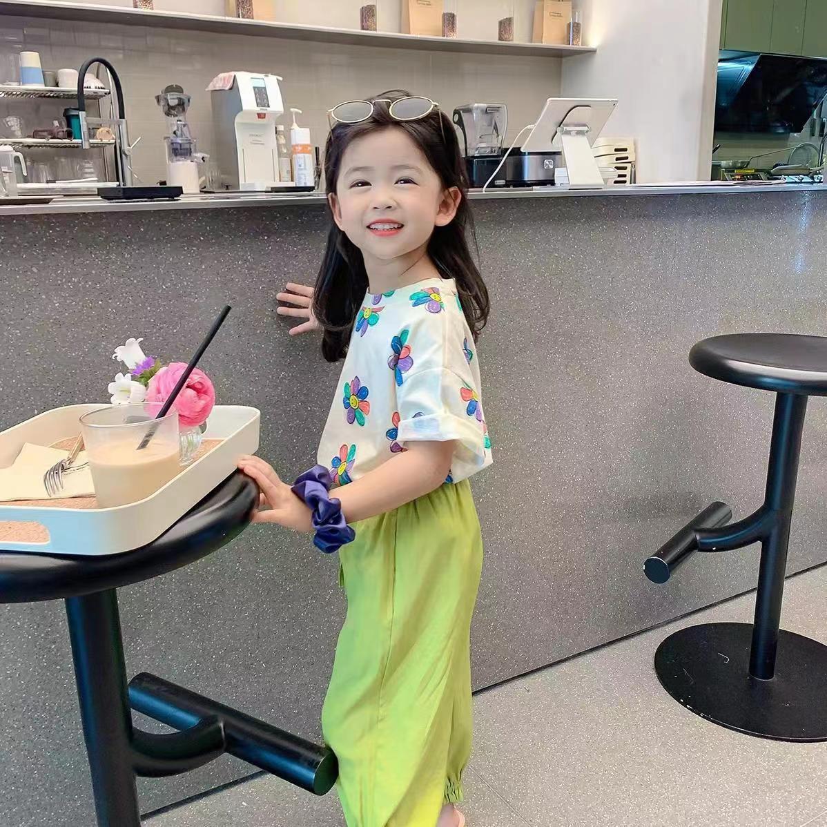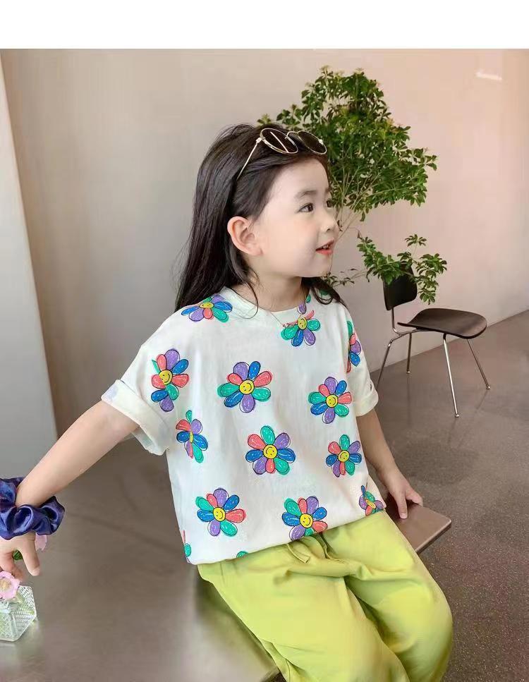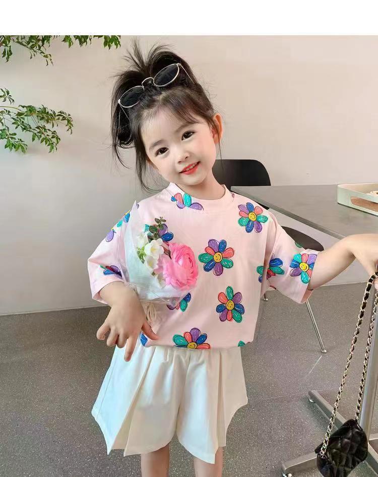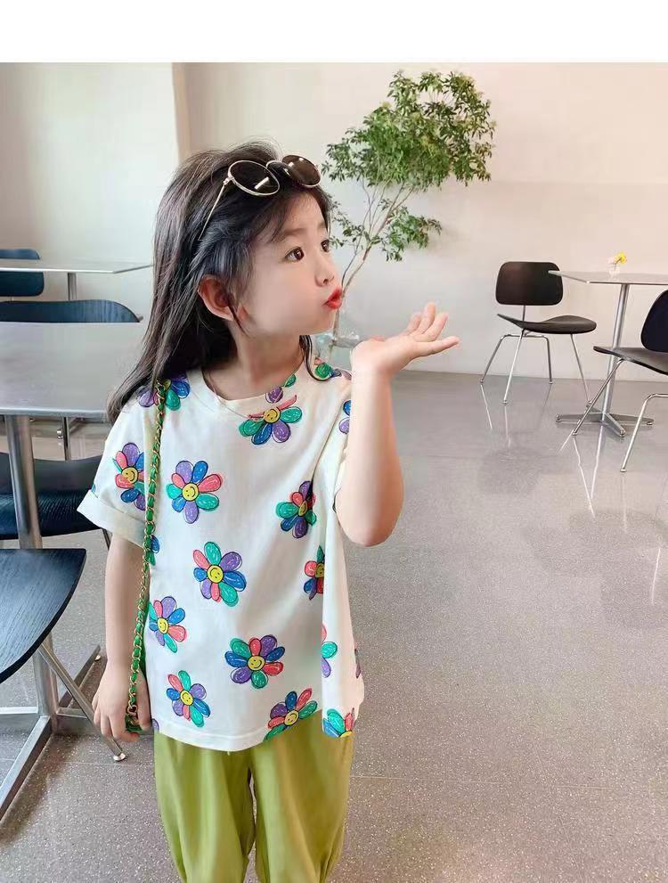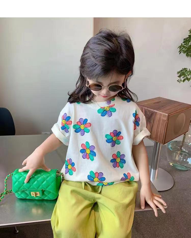 여자 여름 옷 새로운 아동복 한국 스타일 반팔 티셔츠 중소 어린이 캐주얼 탑 아기 바닥 셔츠스토어 가기