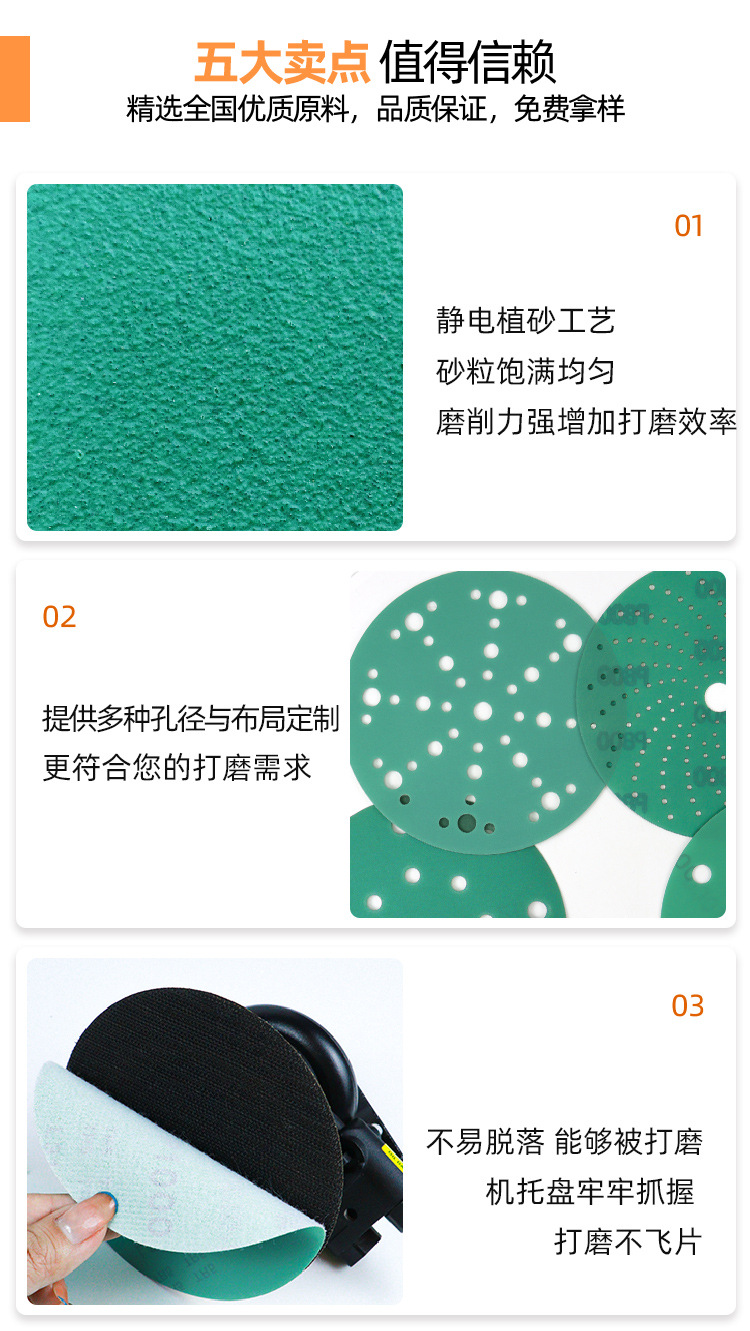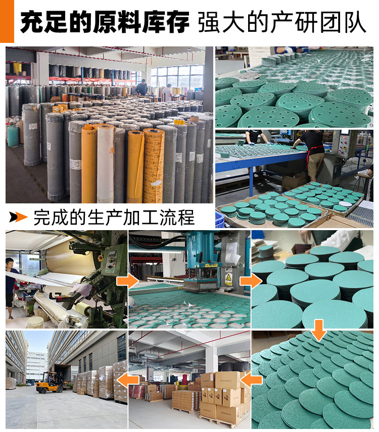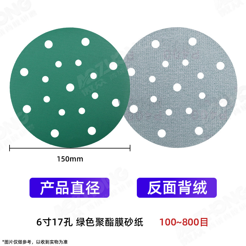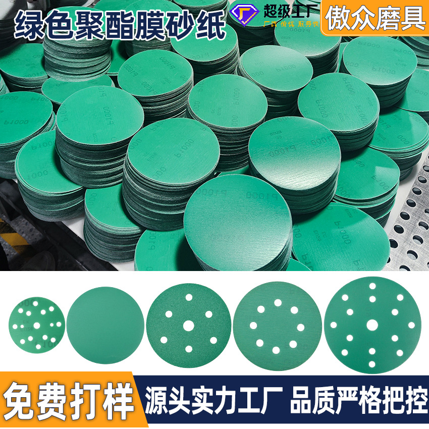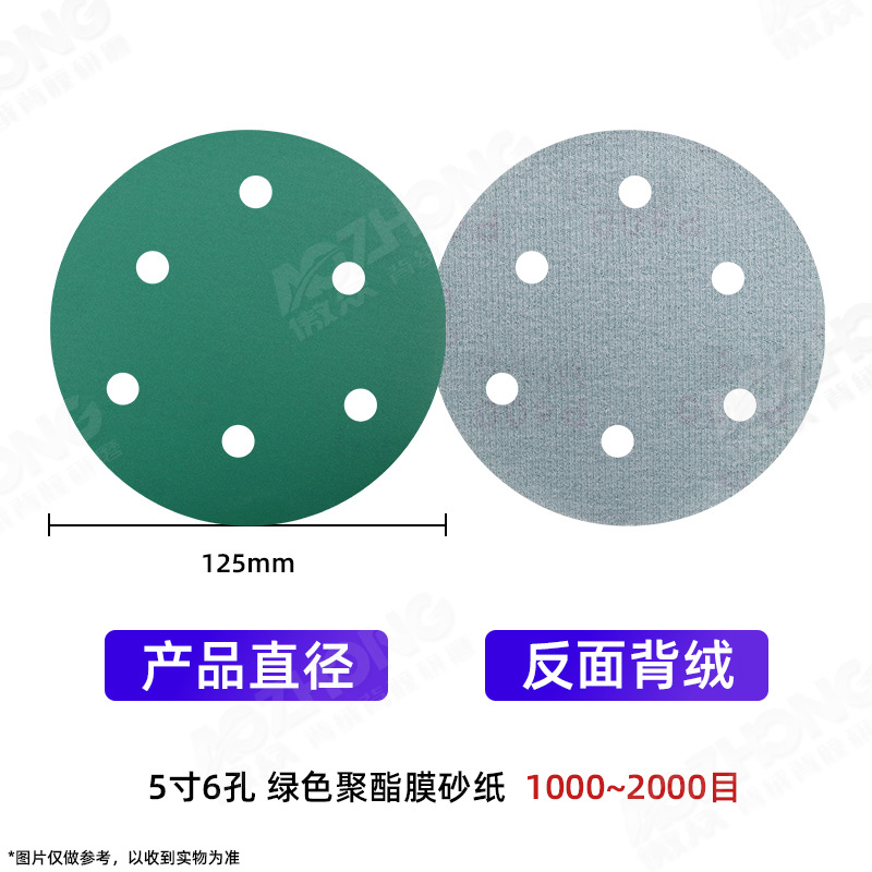 맞춤형 5인치 8홀 건식 연마지 폴리에스터 필름 자동차 및 선박 도장용 공압 연마 전용 플로킹 사포스토어 가기