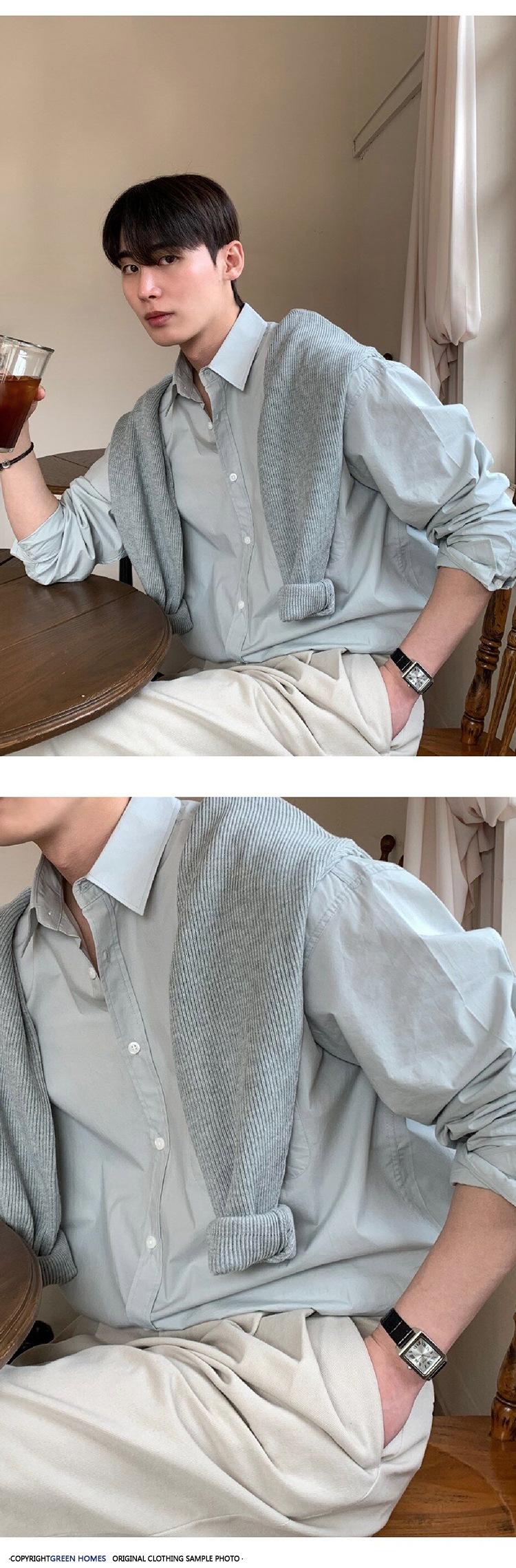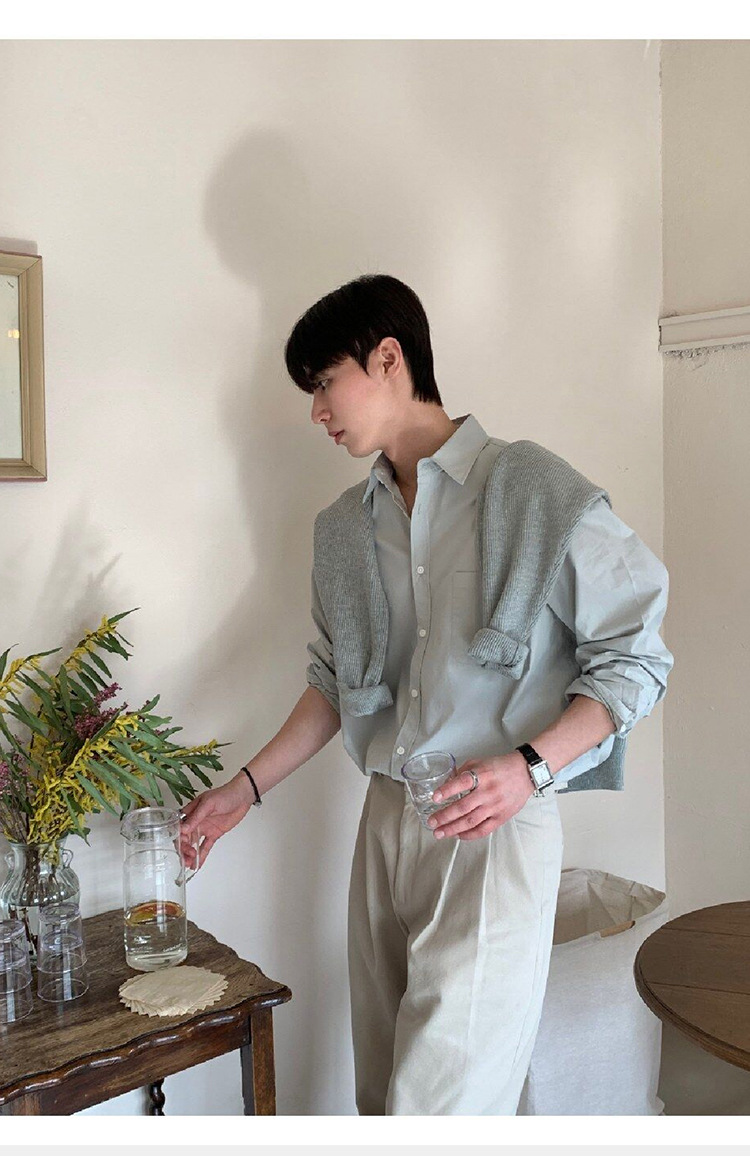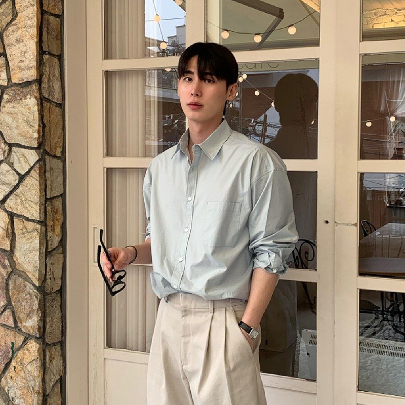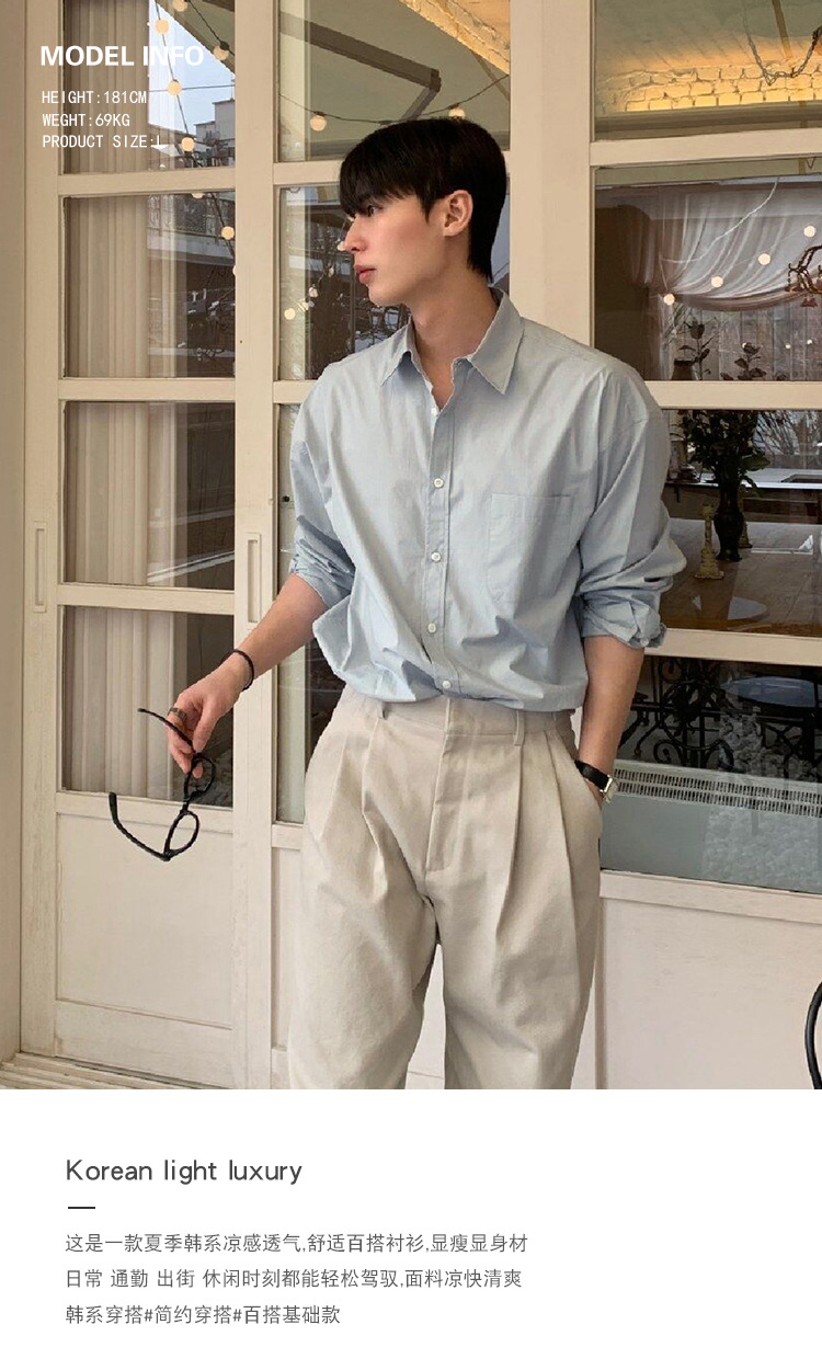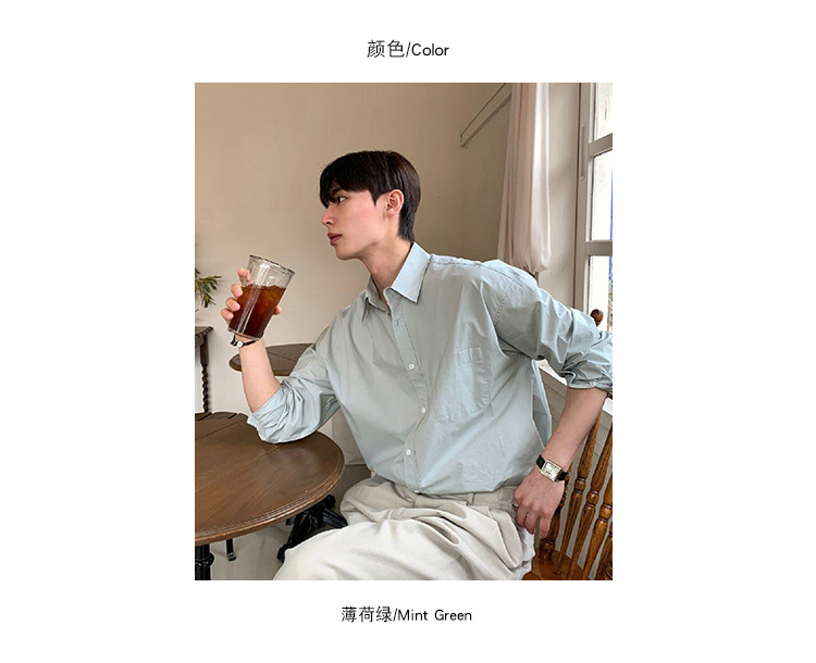 ASCLO 뉴 남성용 한국 스타일 셔츠 하이 엔드 센스 심플 솔리드 컬러 루즈 셔츠 리퍼 잘 생긴 긴팔 얇은 탑스토어 가기