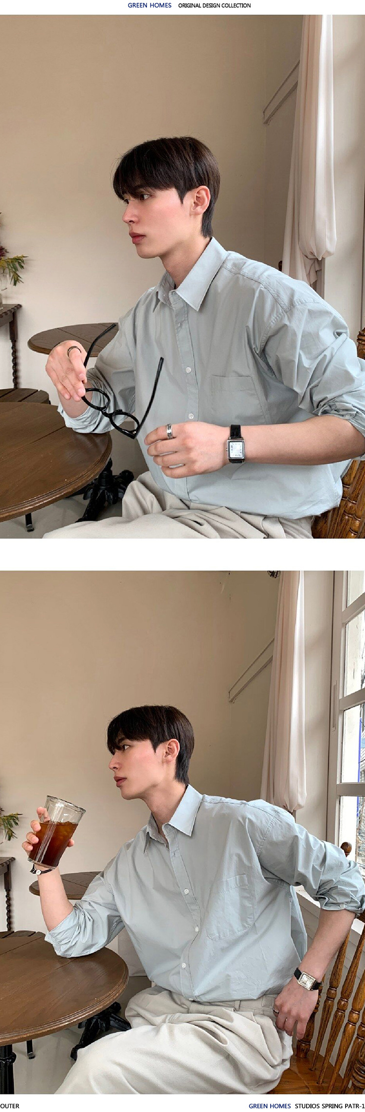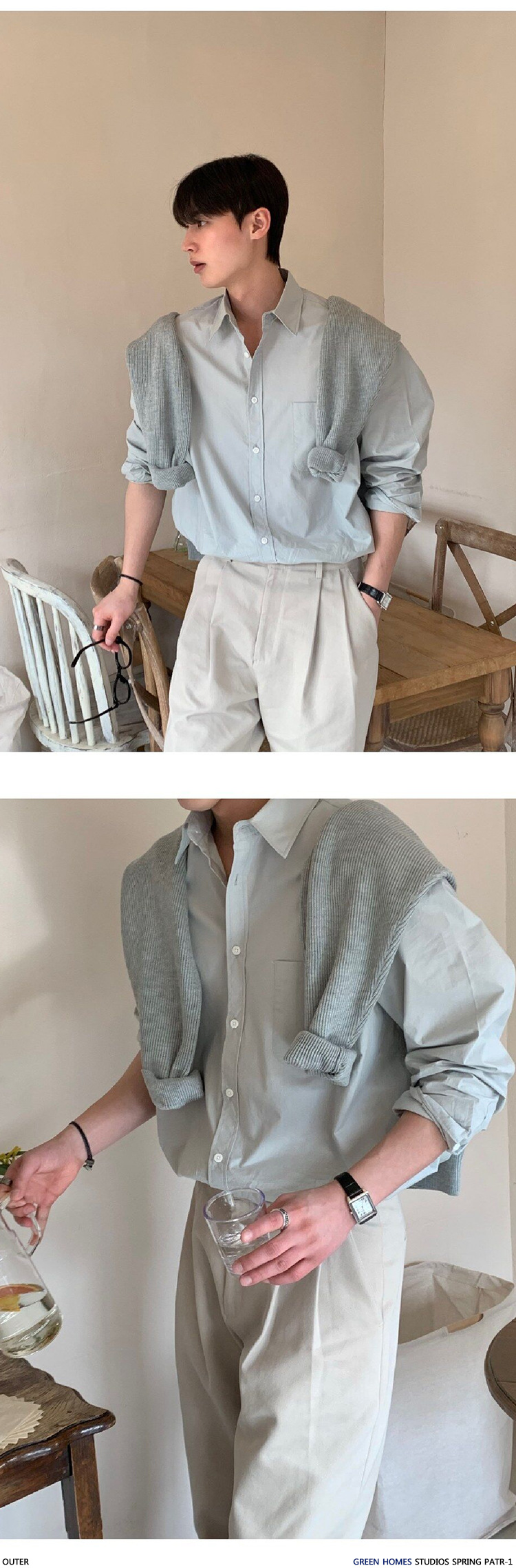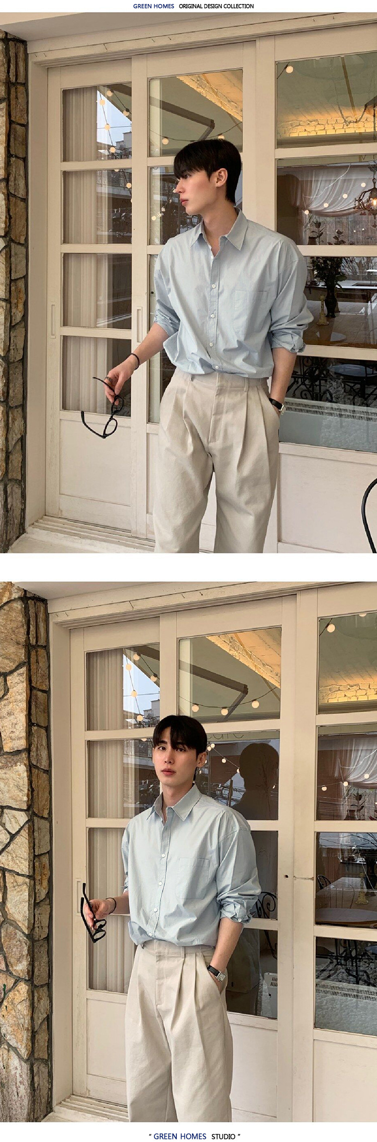 ASCLO 뉴 남성용 한국 스타일 셔츠 하이 엔드 센스 심플 솔리드 컬러 루즈 셔츠 리퍼 잘 생긴 긴팔 얇은 탑스토어 가기