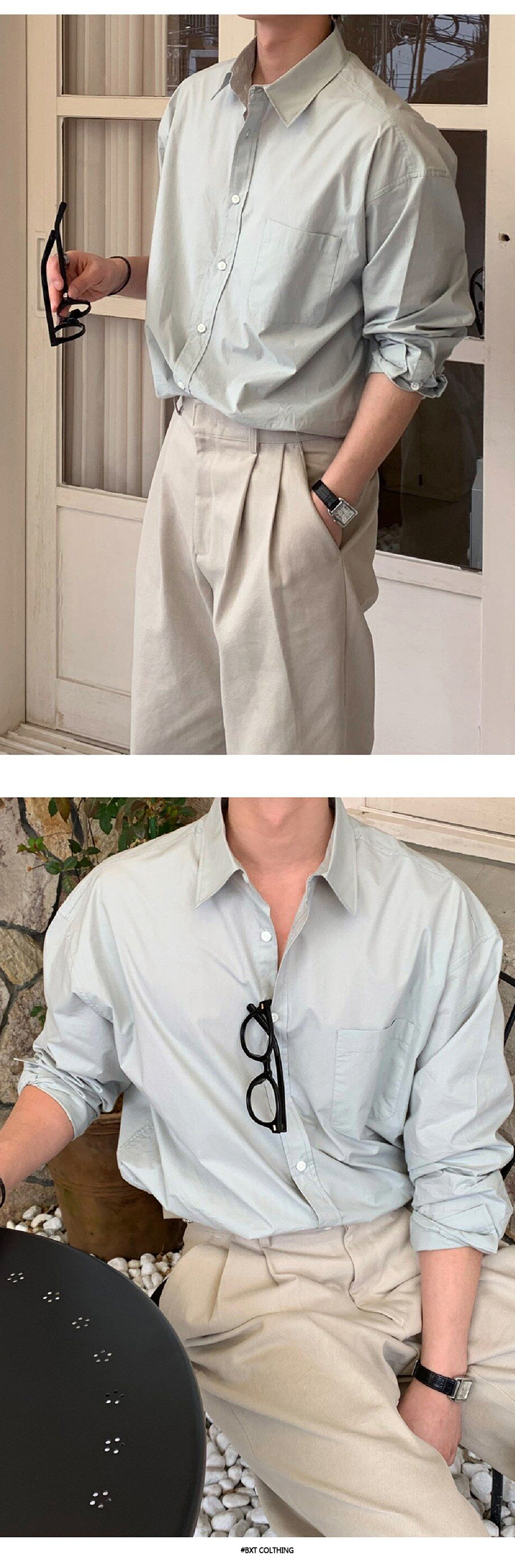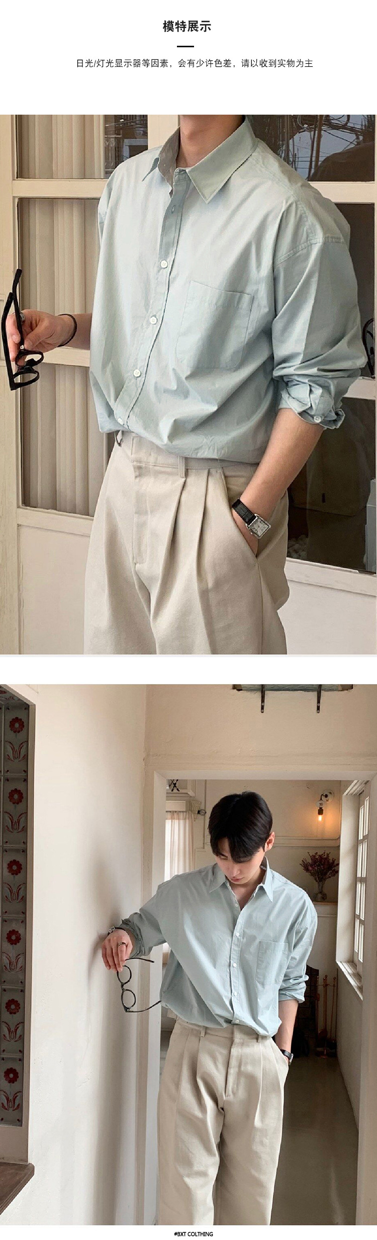 ASCLO 뉴 남성용 한국 스타일 셔츠 하이 엔드 센스 심플 솔리드 컬러 루즈 셔츠 리퍼 잘 생긴 긴팔 얇은 탑