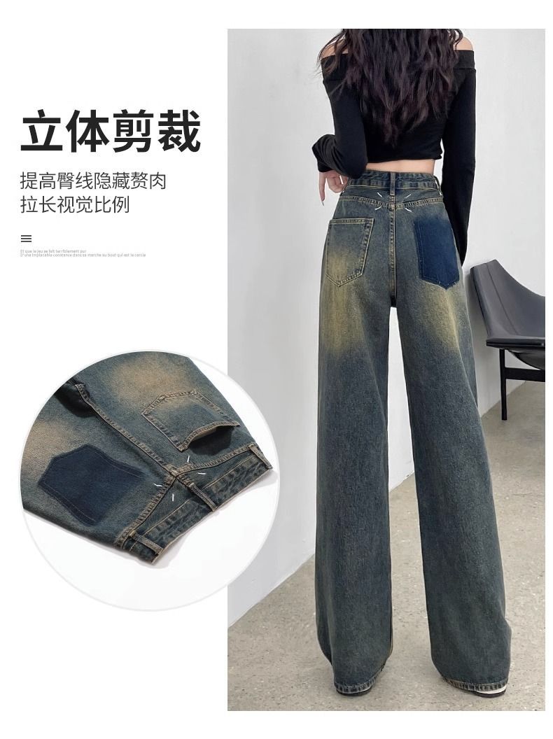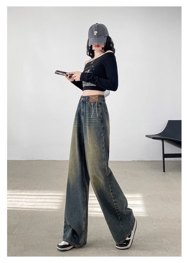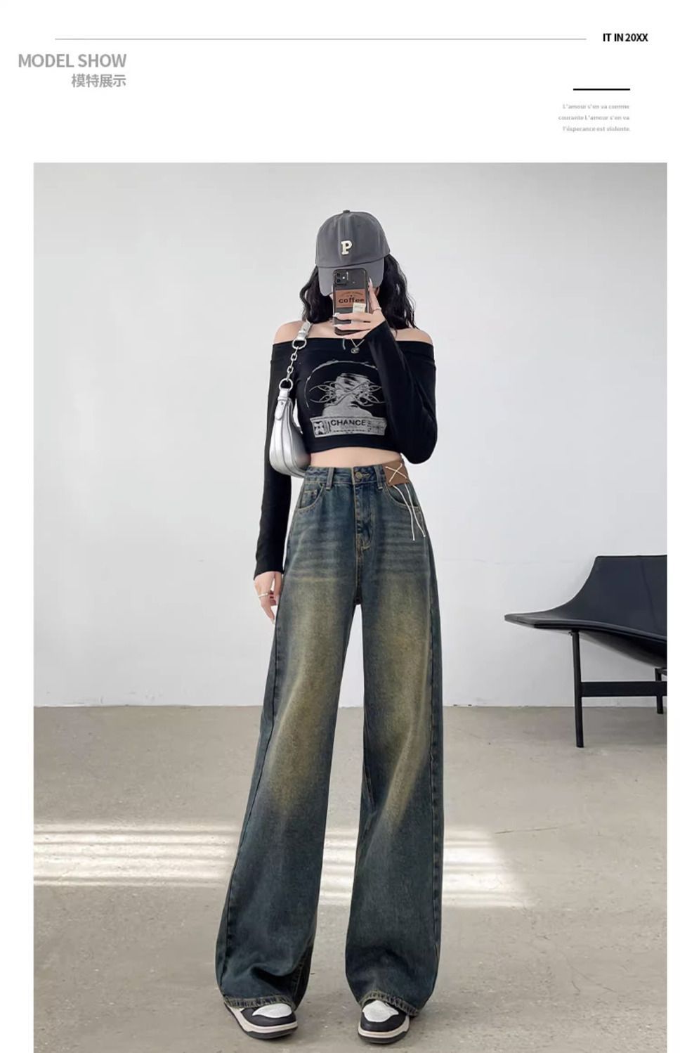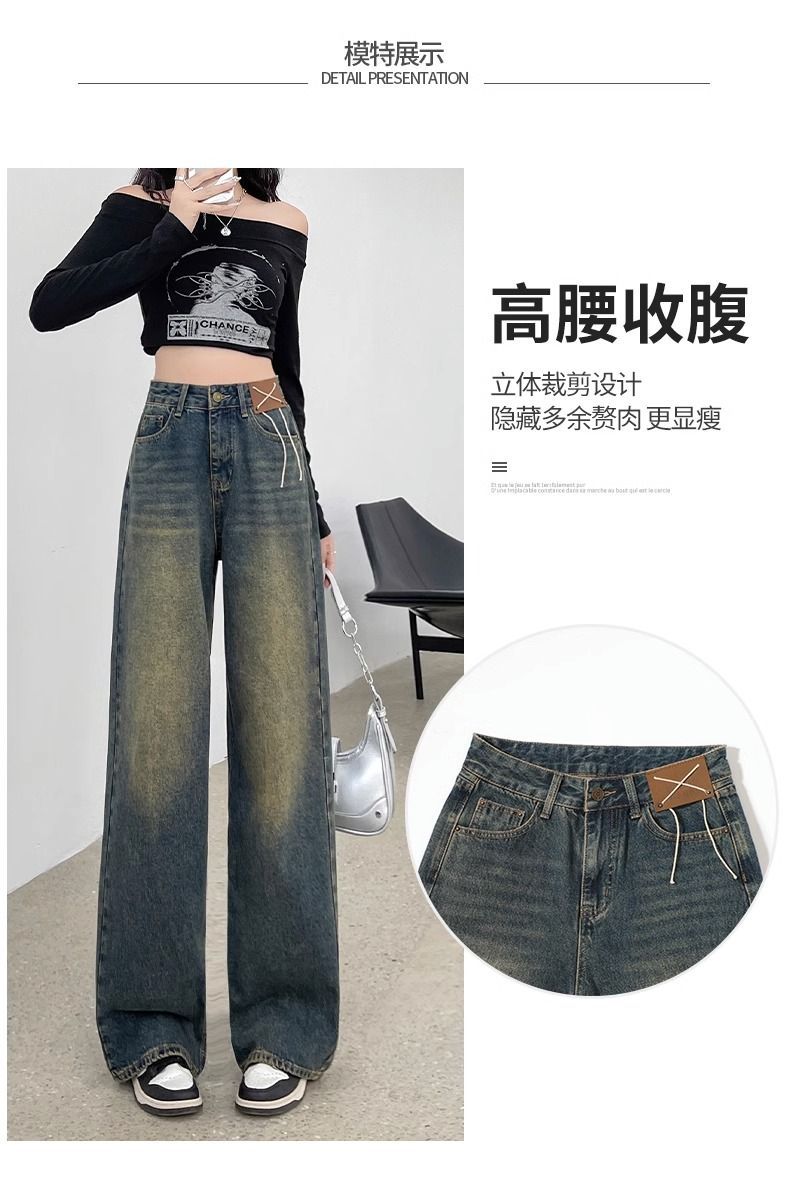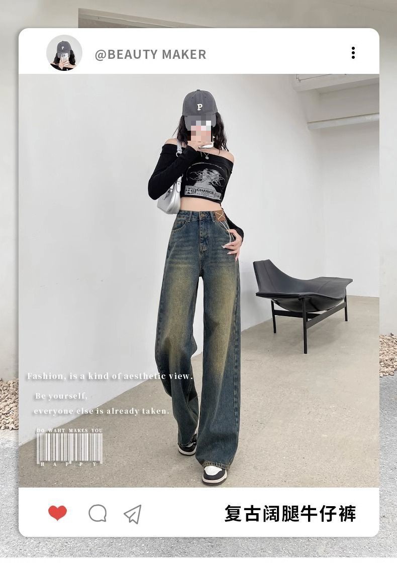 2024 봄과 여름 새로운 플러스 사이즈 레트로 와이드 레그 청바지 여성 올 매치 슬림 핏 스트레이트 루즈 하이 허리 바지스토어 가기