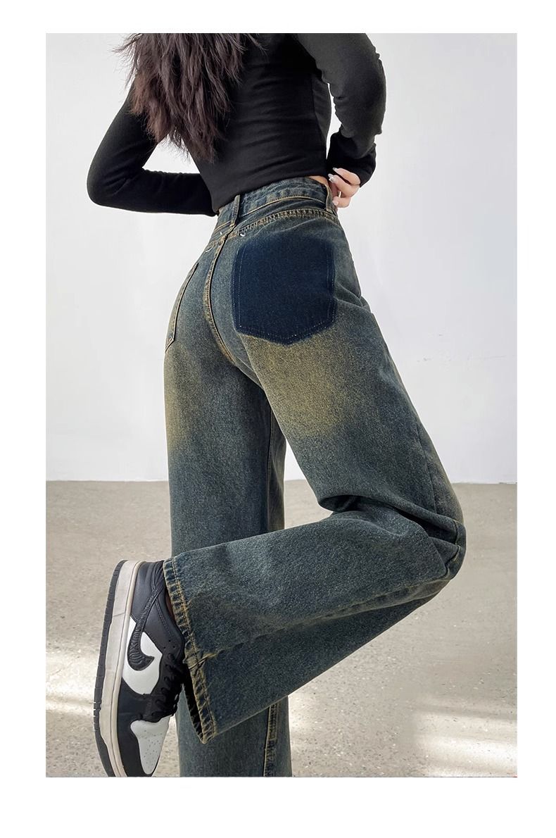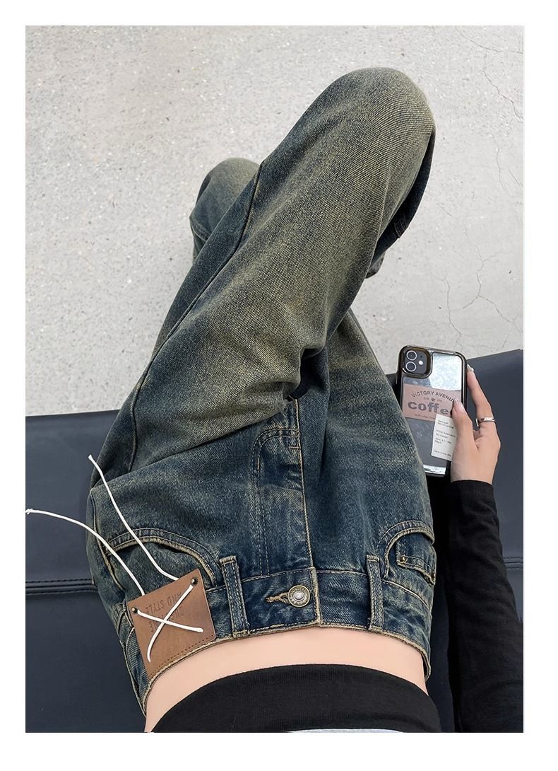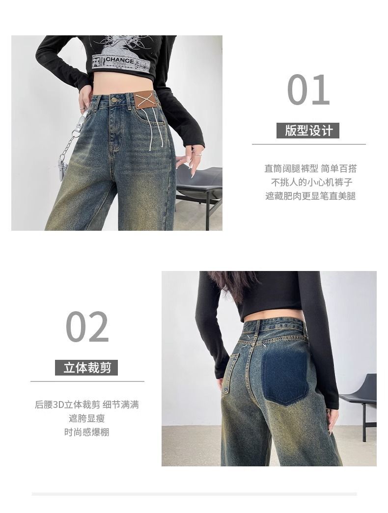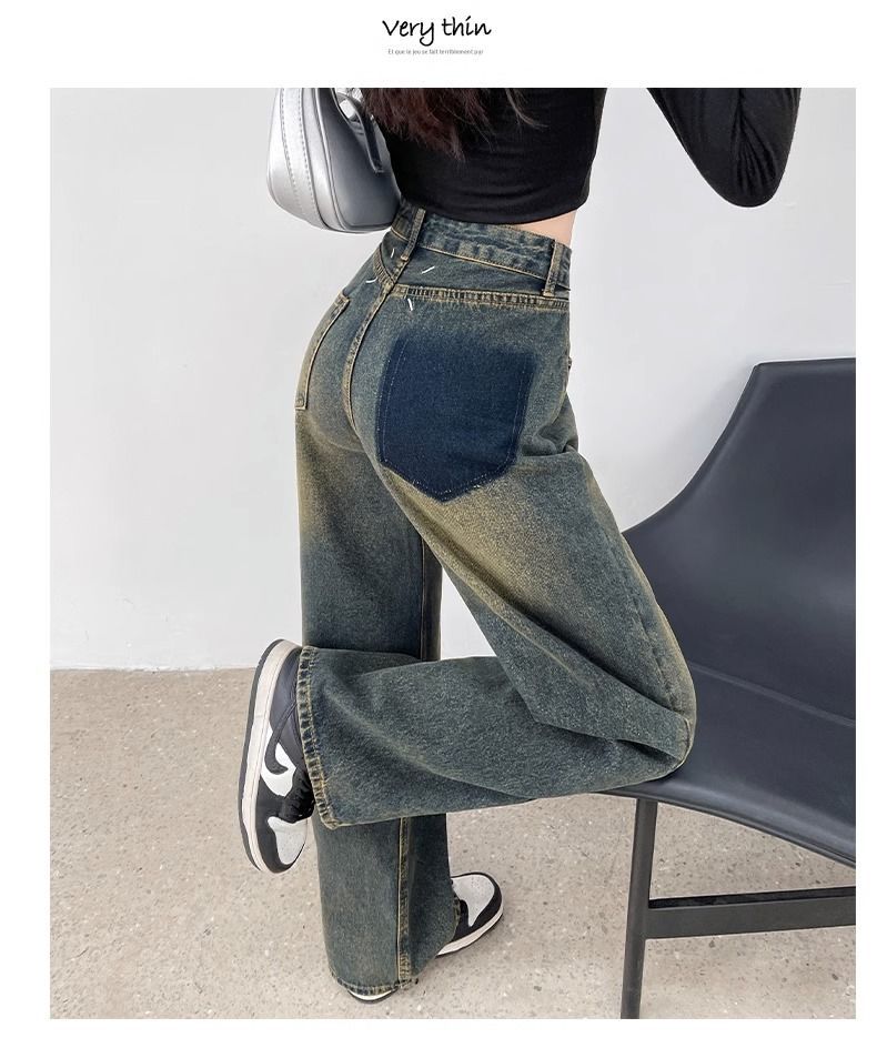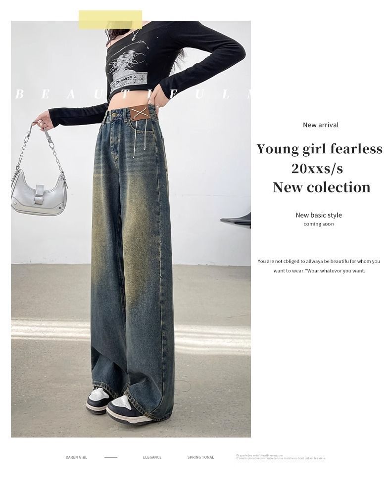 2024 봄과 여름 새로운 플러스 사이즈 레트로 와이드 레그 청바지 여성 올 매치 슬림 핏 스트레이트 루즈 하이 허리 바지스토어 가기